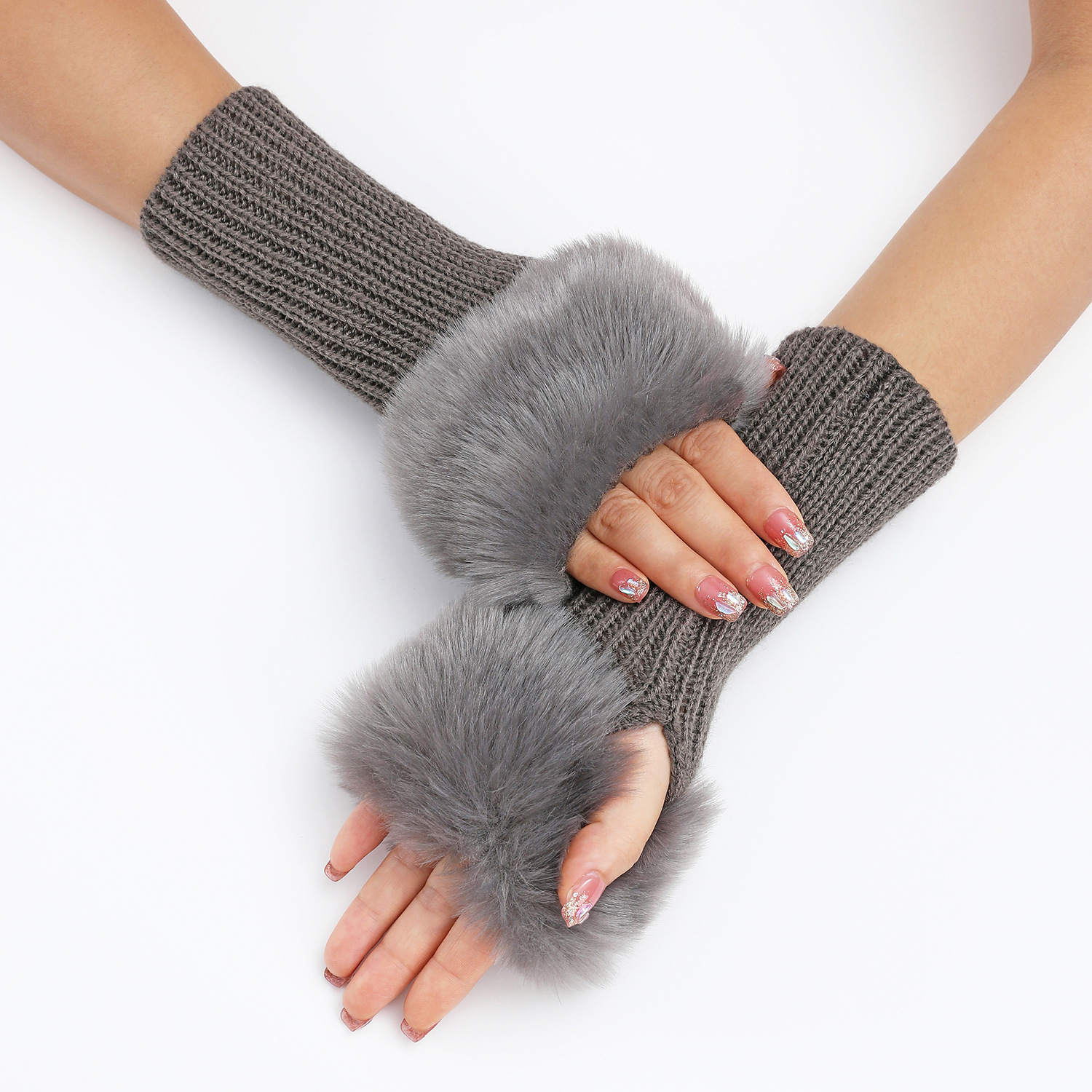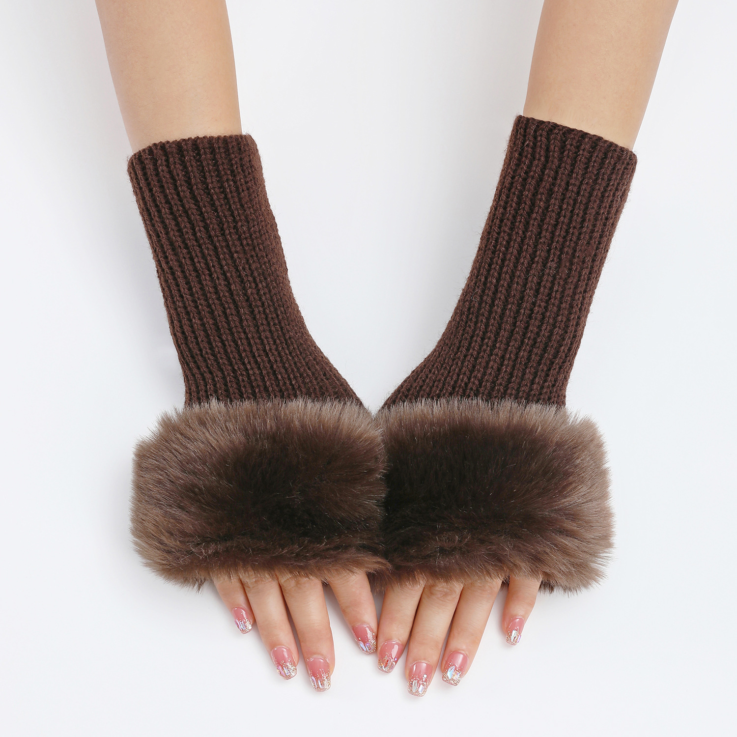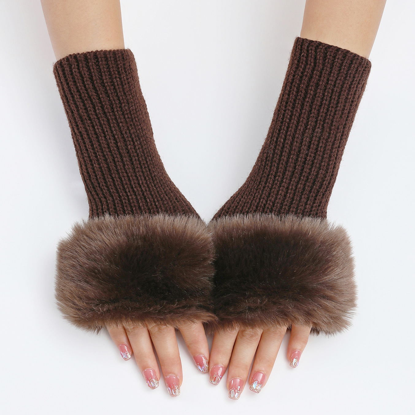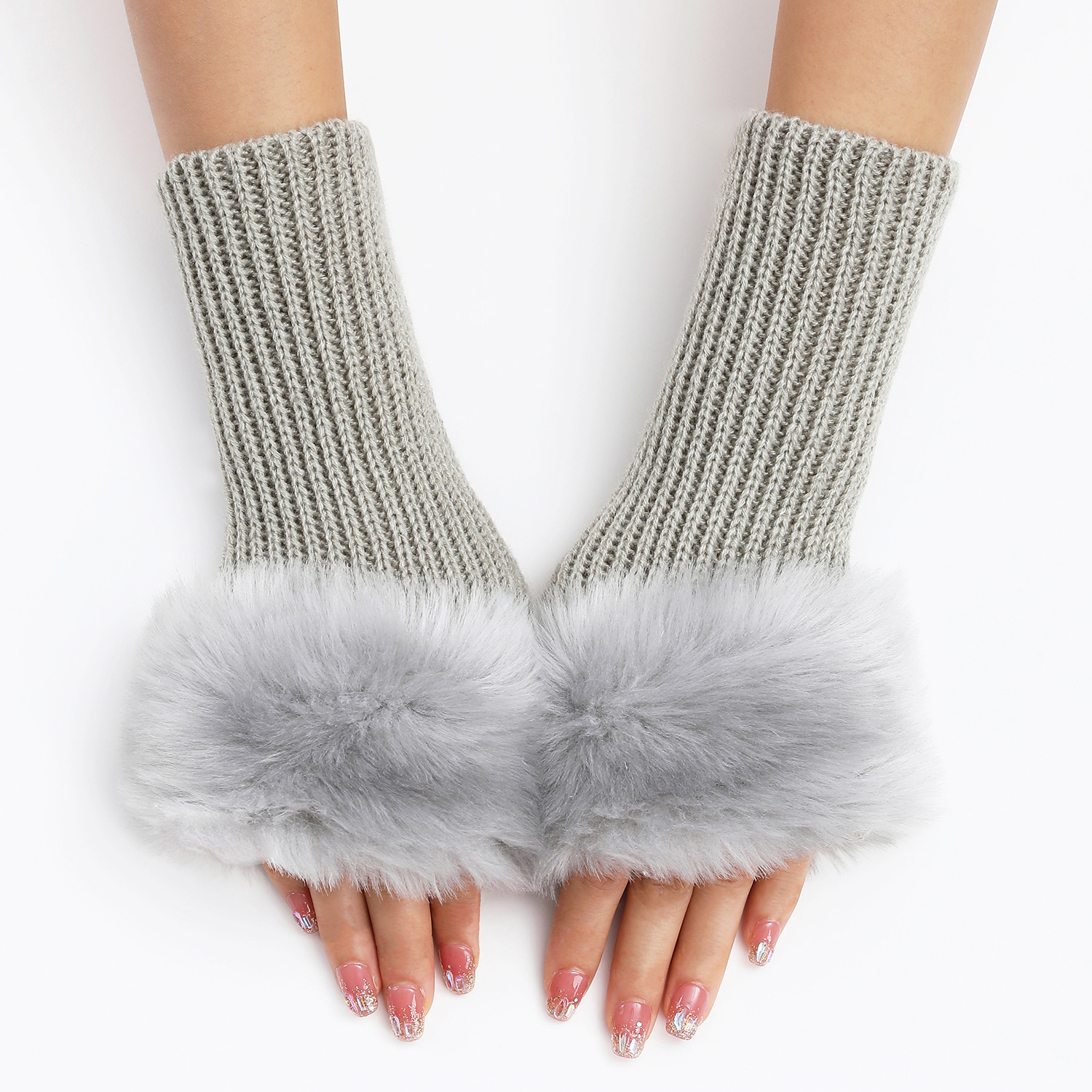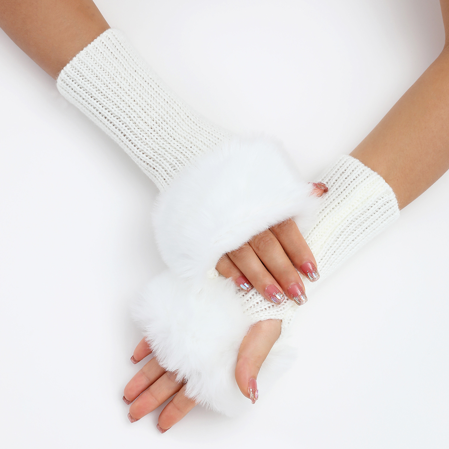 미세 라인 짧은 마오 마오 장갑 새로운 유럽과 미국 가을과 겨울 양모 장갑 여성용 가짜 소매 니트 따뜻한 노출 손가락 팔 커버