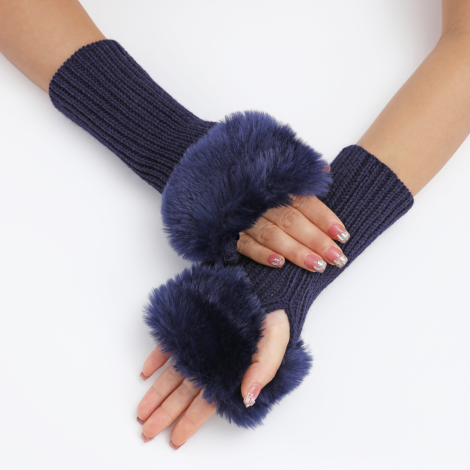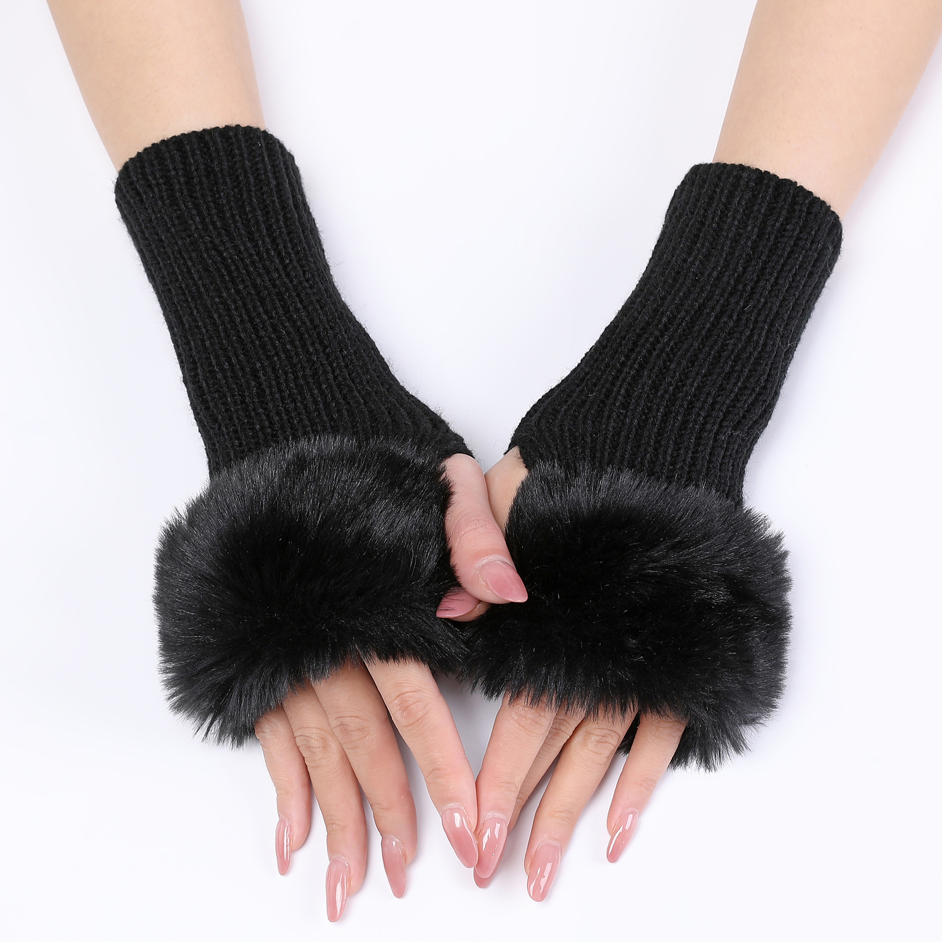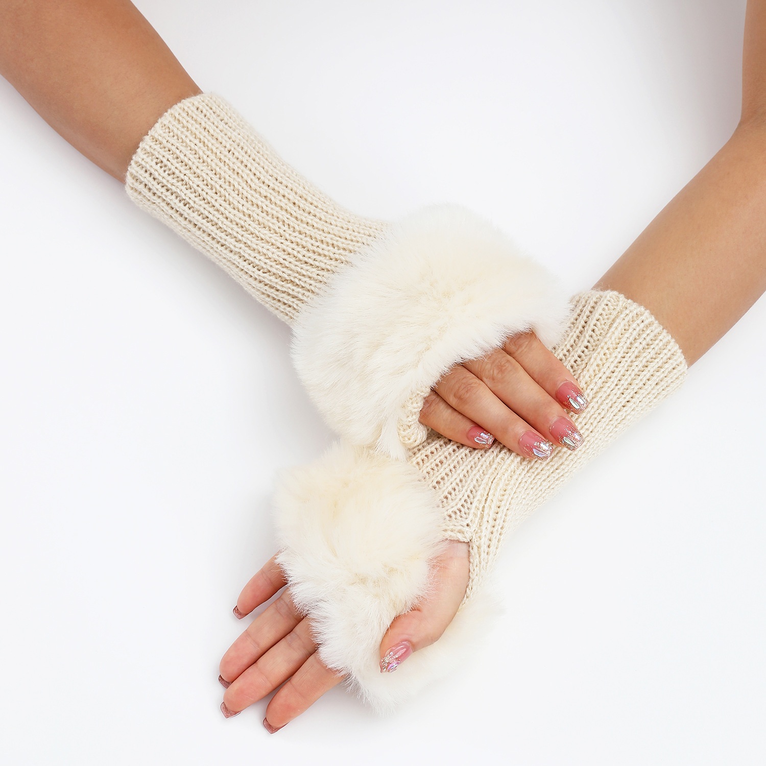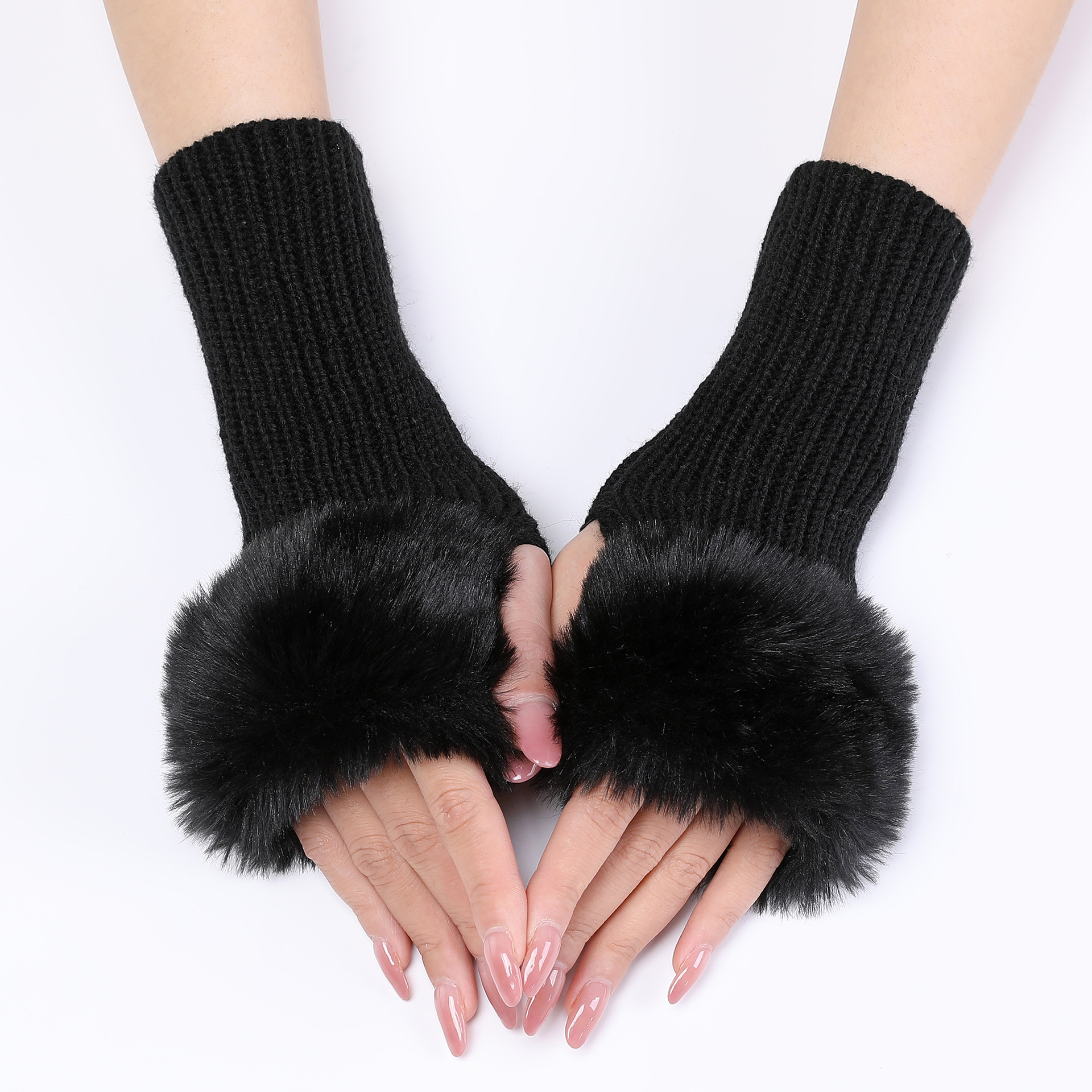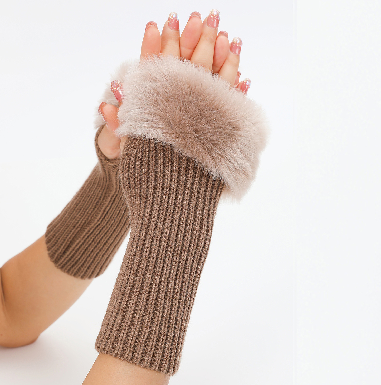 미세 라인 짧은 마오 마오 장갑 새로운 유럽과 미국 가을과 겨울 양모 장갑 여성용 가짜 소매 니트 따뜻한 노출 손가락 팔 커버