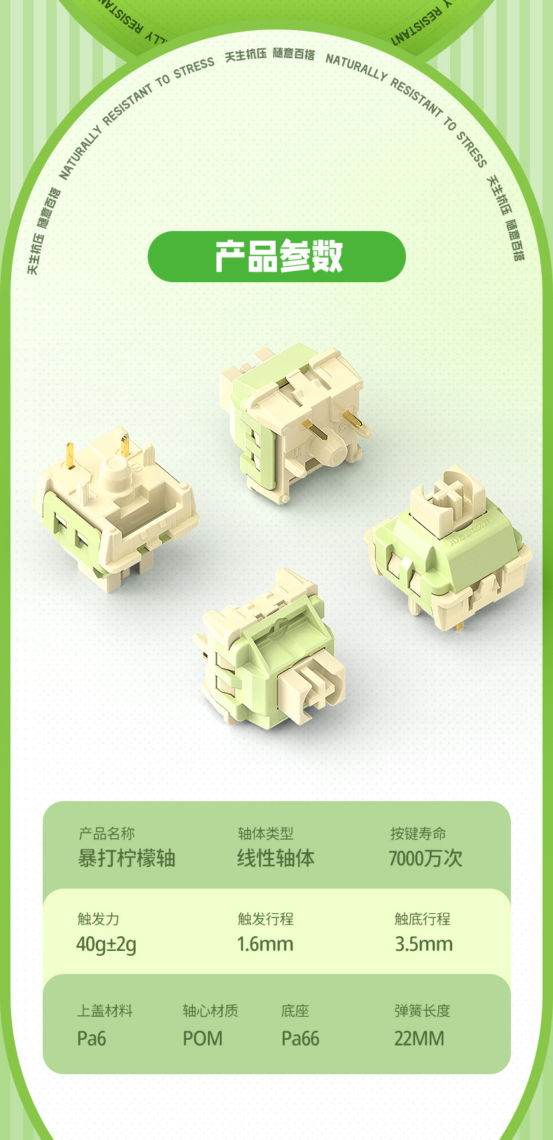재고 크로스 보더 아마존 비트 레몬 샤프트 HiFi 부드러운 가벼운 압력 선형 사용자 정의 기계식 키보드 샤프트 바디스토어 가기