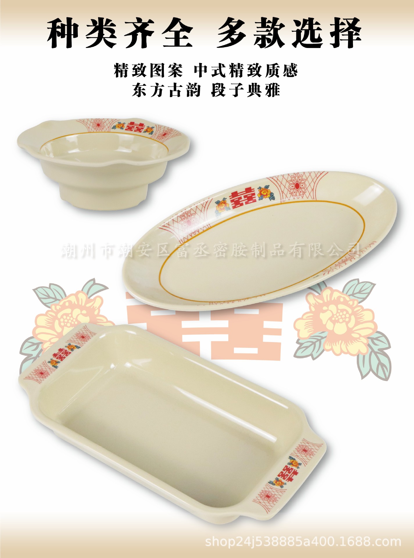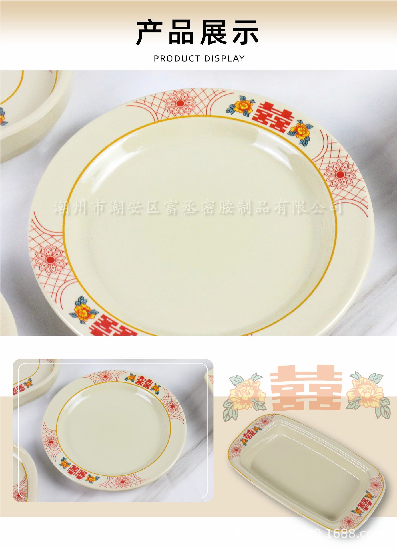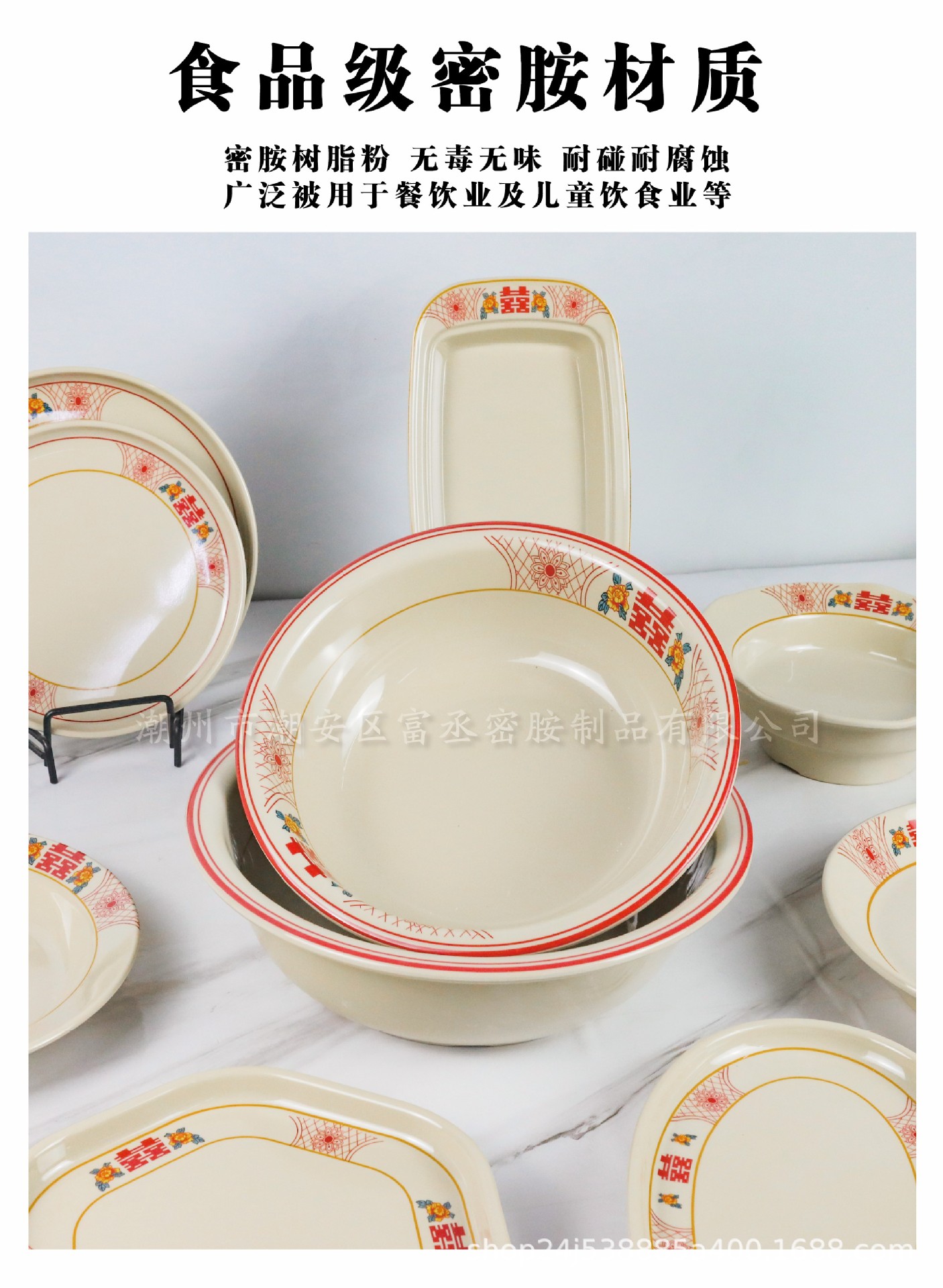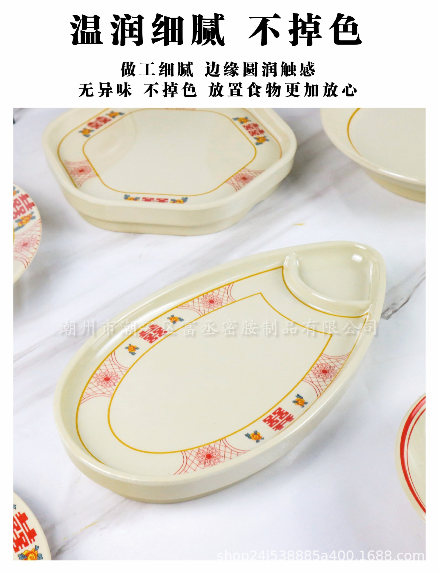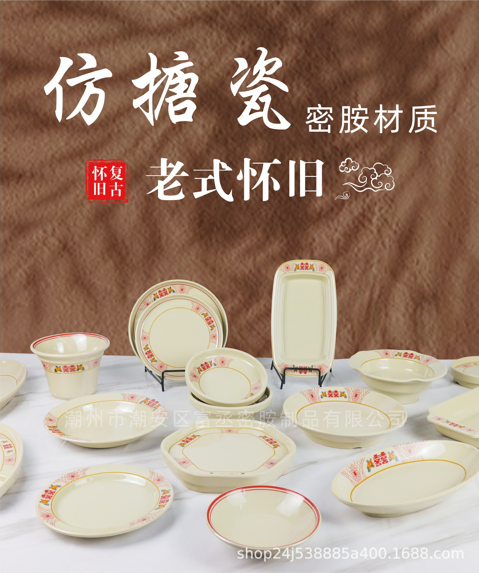 레드 더블 행복 멜라민 식기 접시 전골 식당 반찬 접시 차가운 접시 레트로 그리운 스타일 도자기 식기 공장 도매
