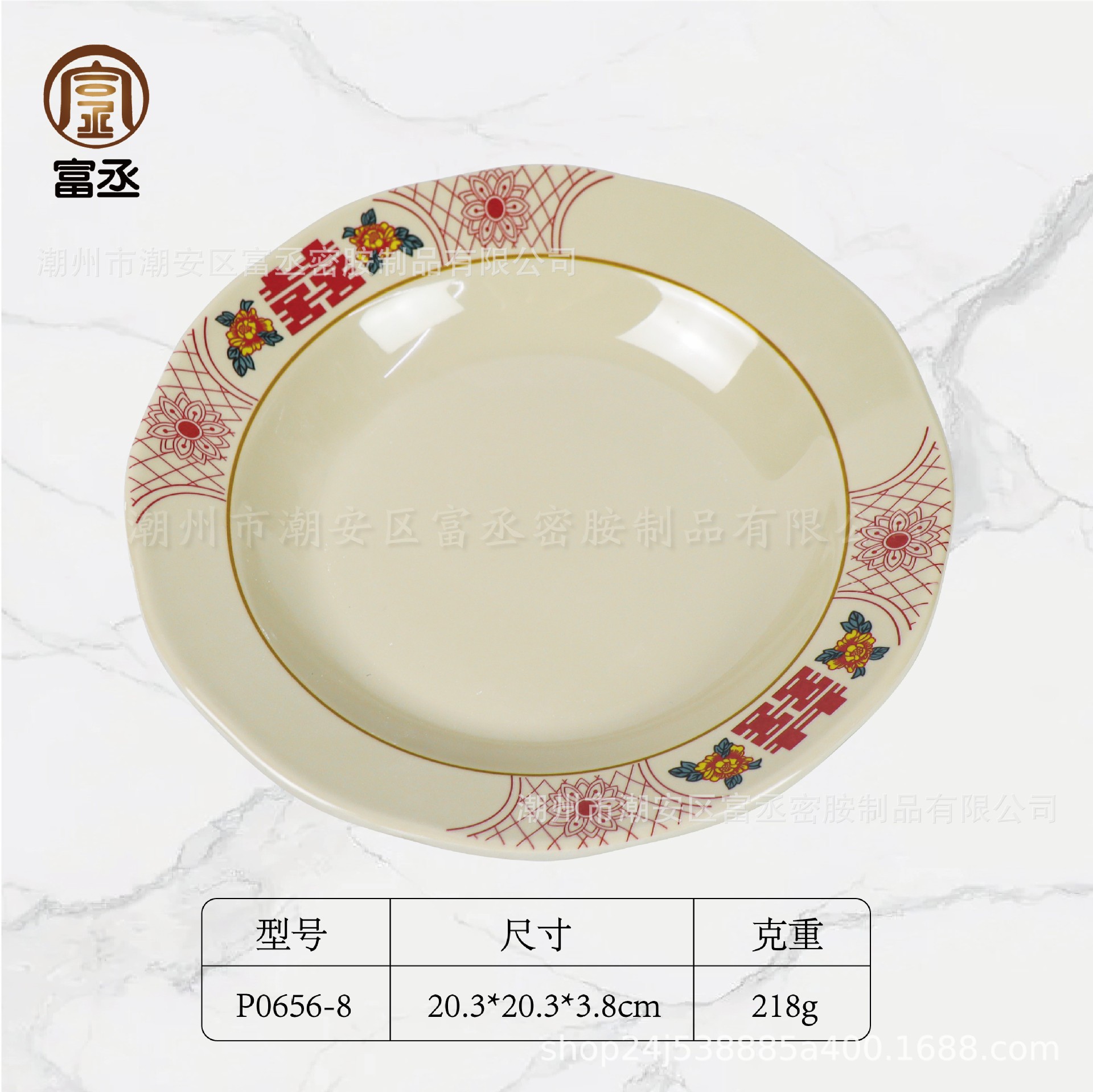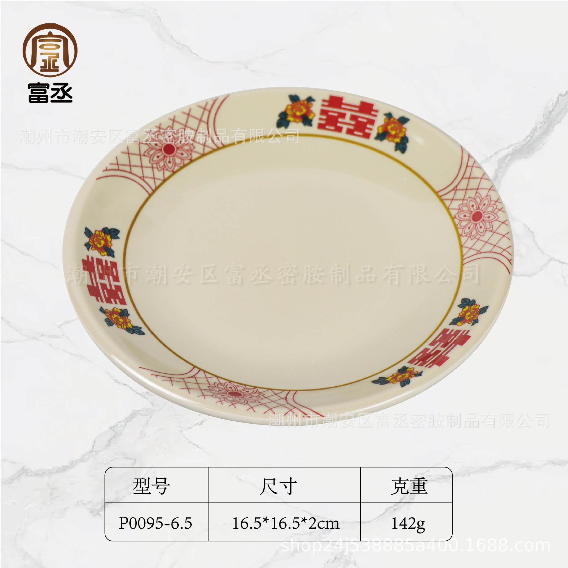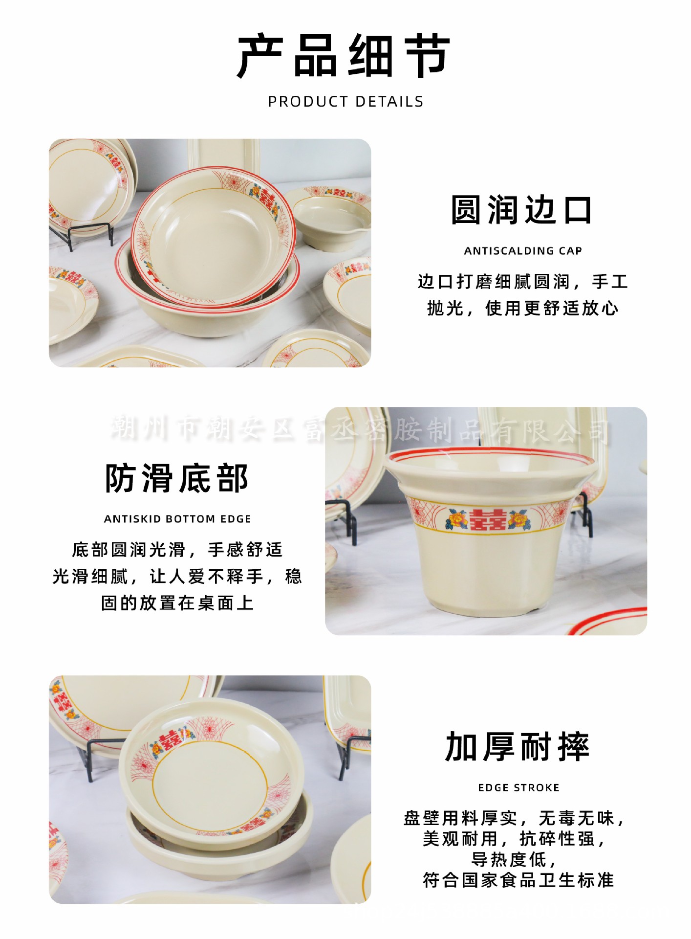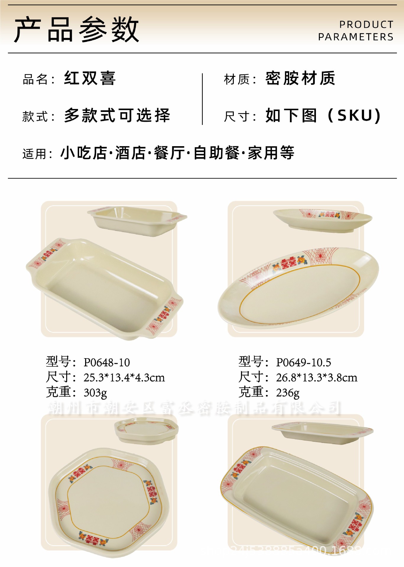 레드 더블 행복 멜라민 식기 접시 전골 식당 반찬 접시 차가운 접시 레트로 그리운 스타일 도자기 식기 공장 도매