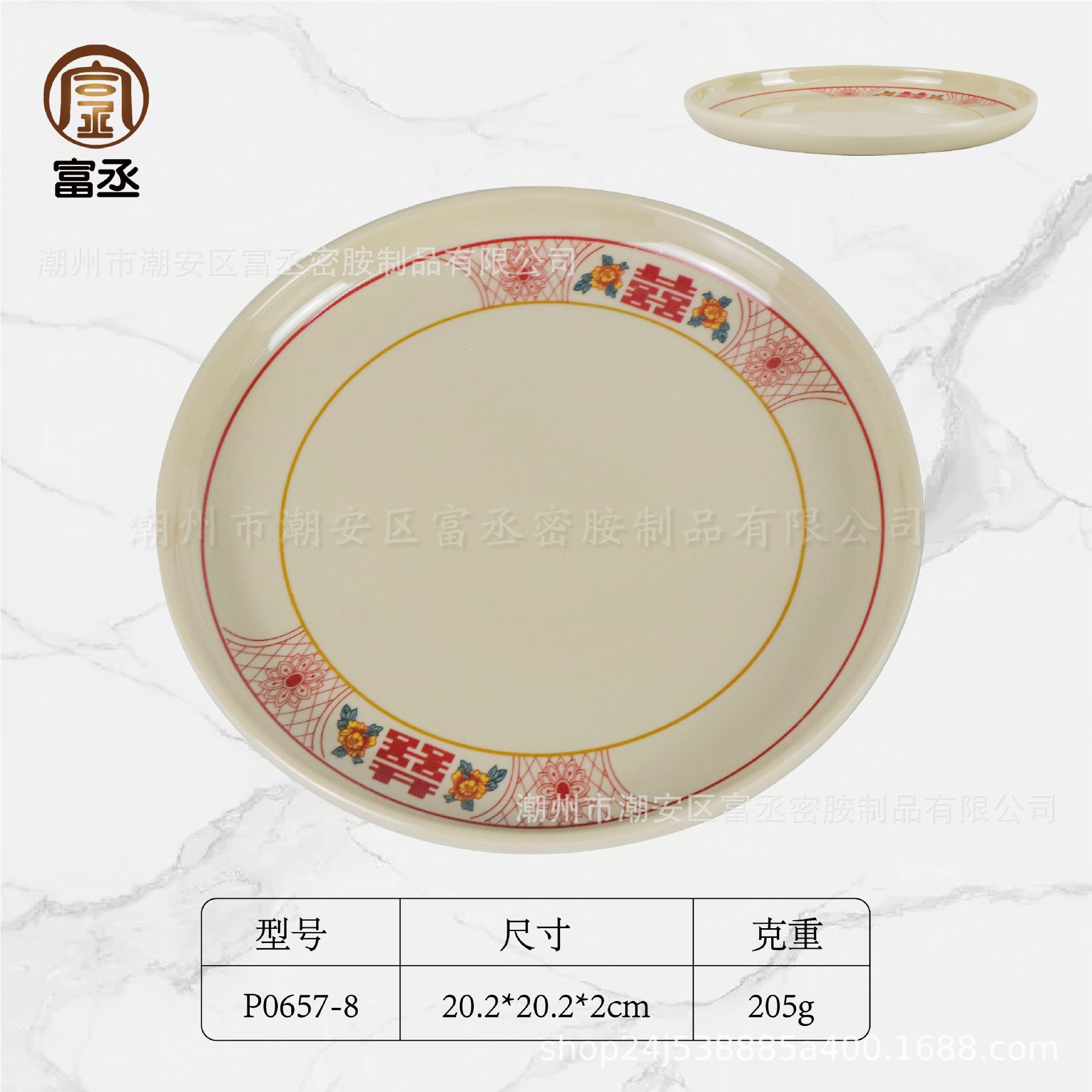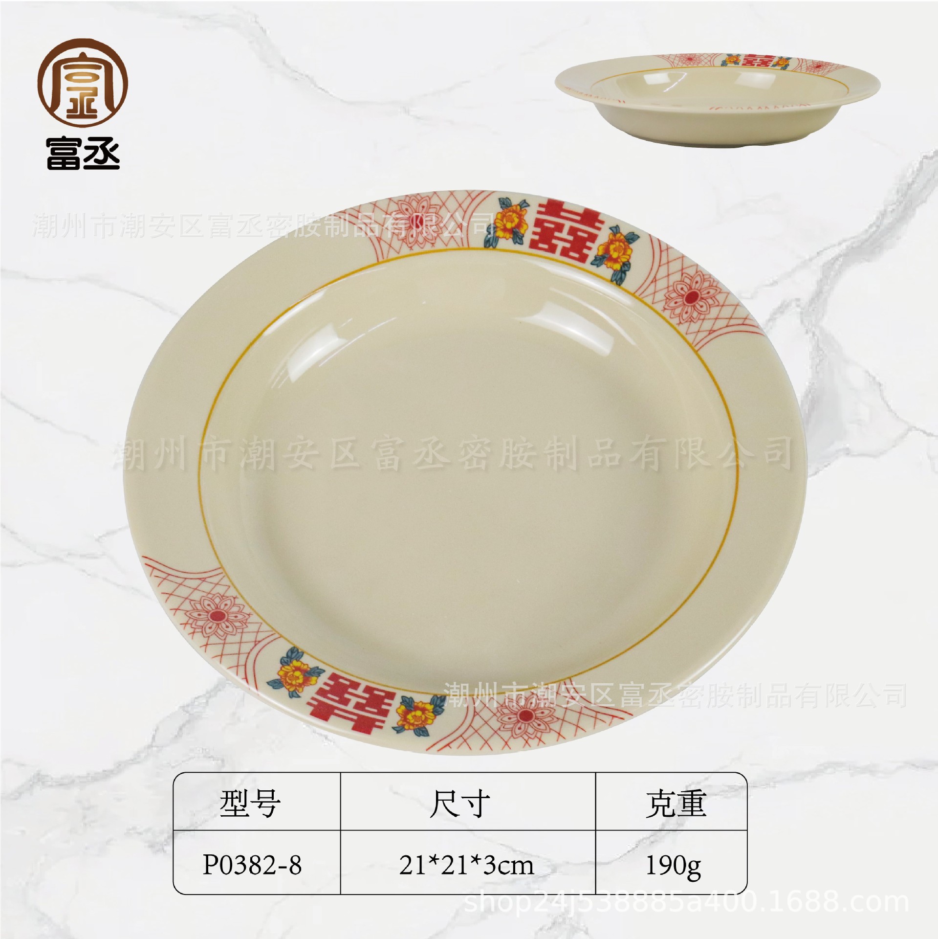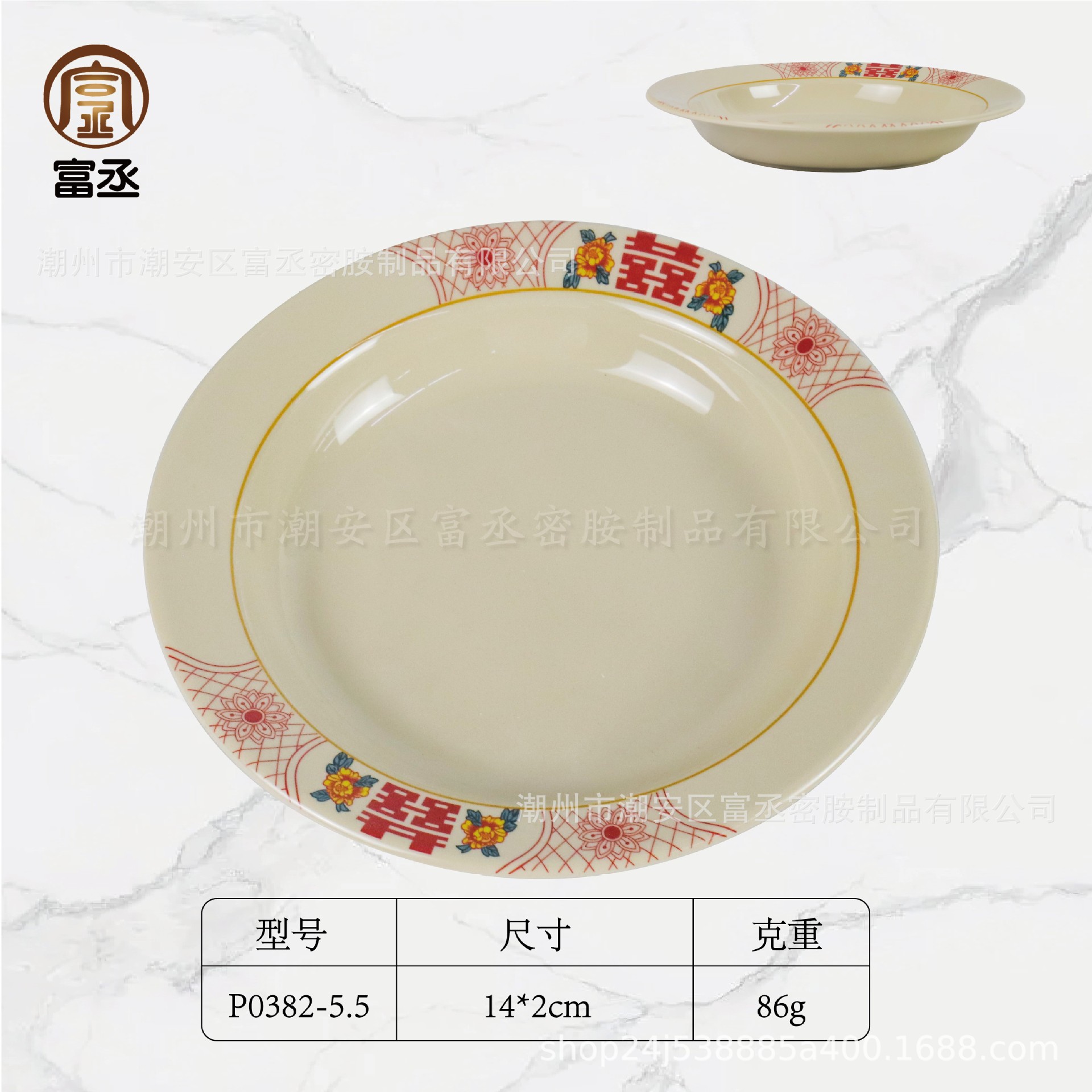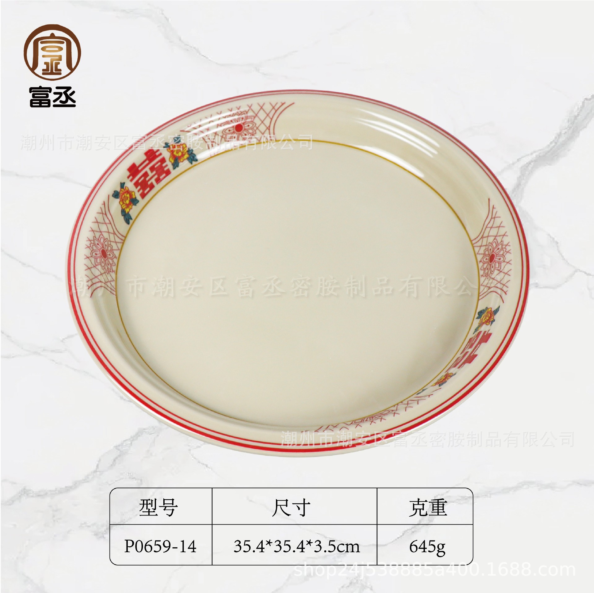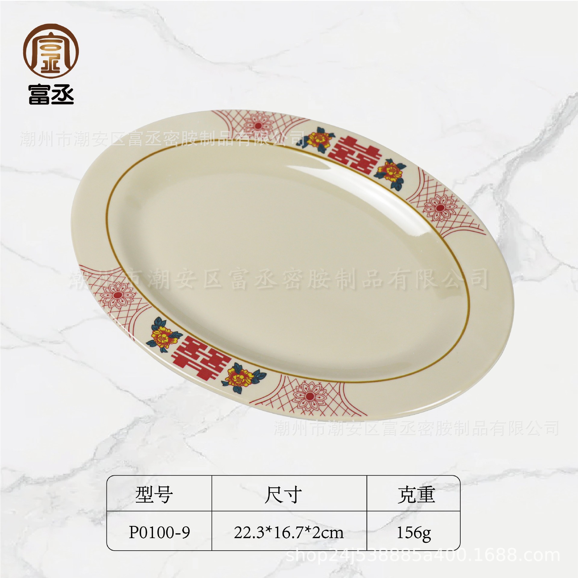 레드 더블 행복 멜라민 식기 접시 전골 식당 반찬 접시 차가운 접시 레트로 그리운 스타일 도자기 식기 공장 도매