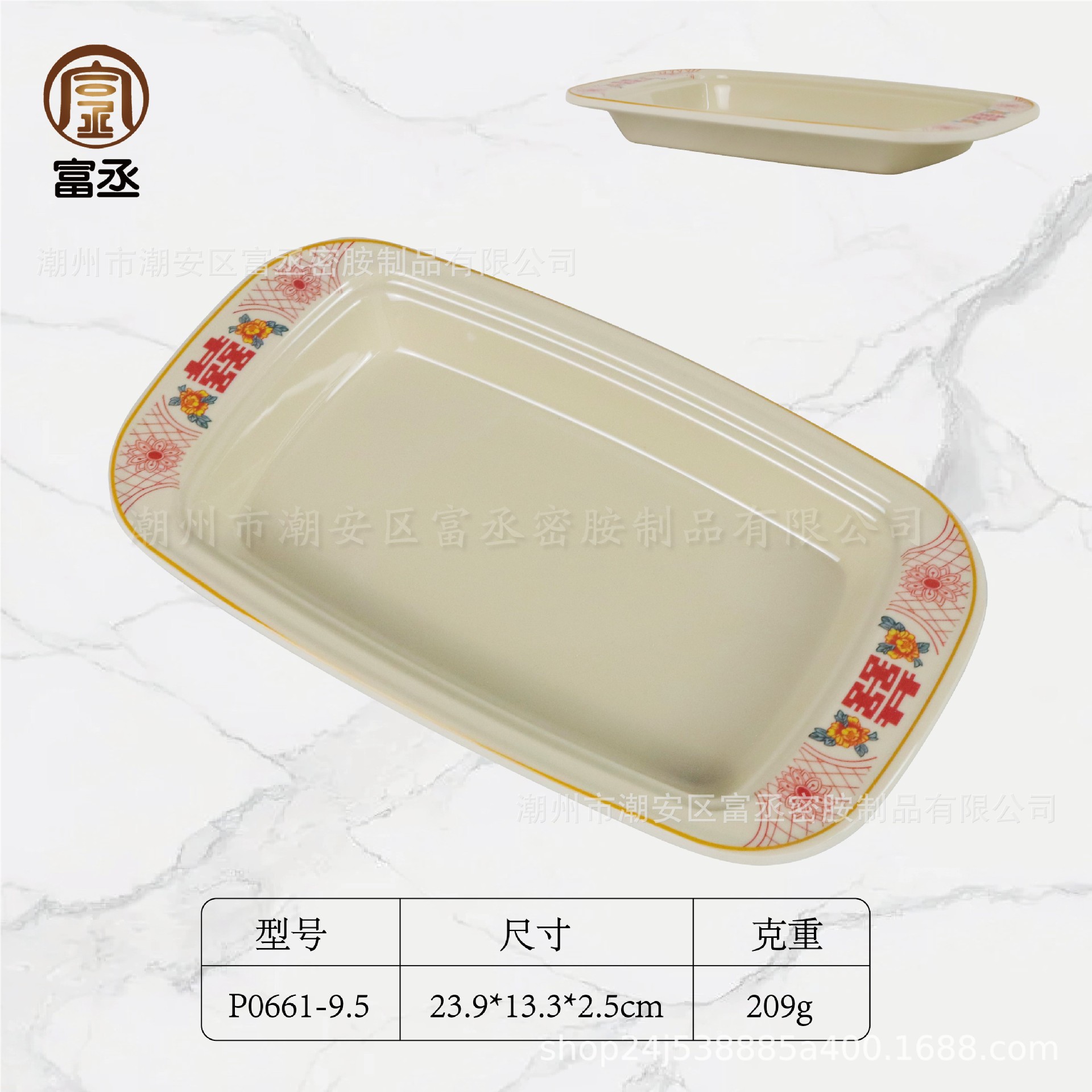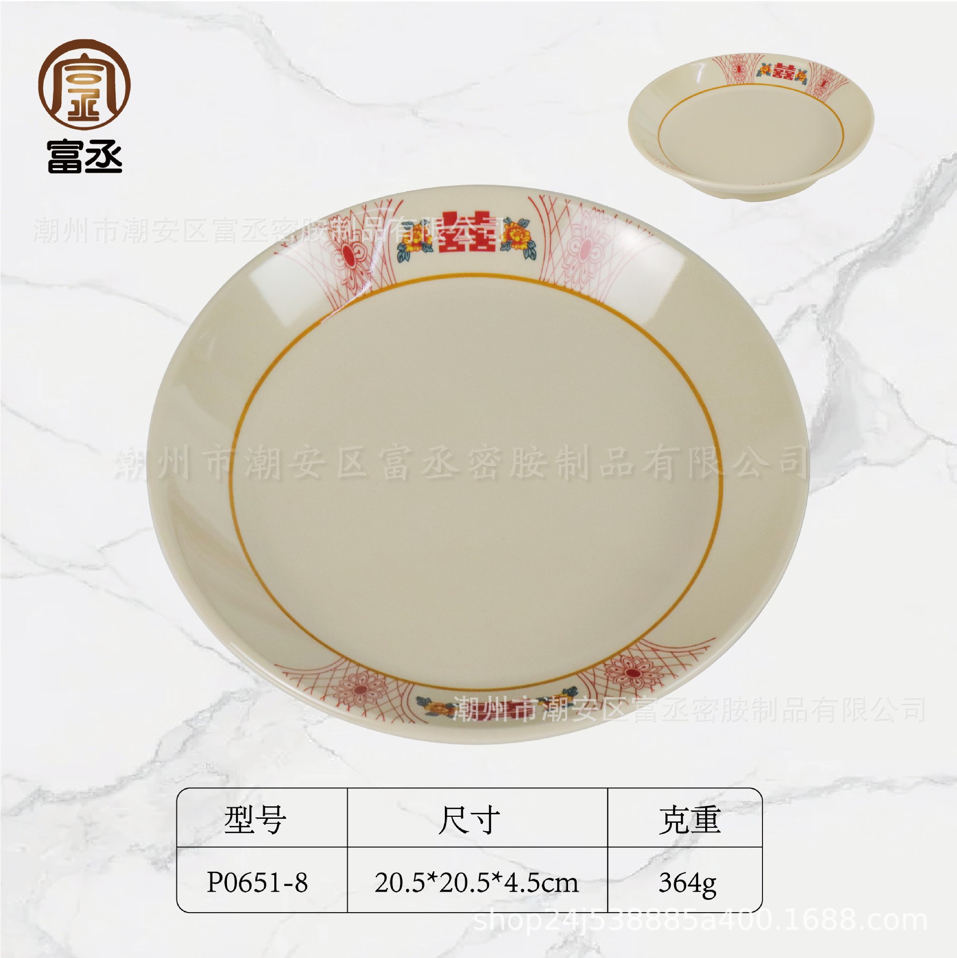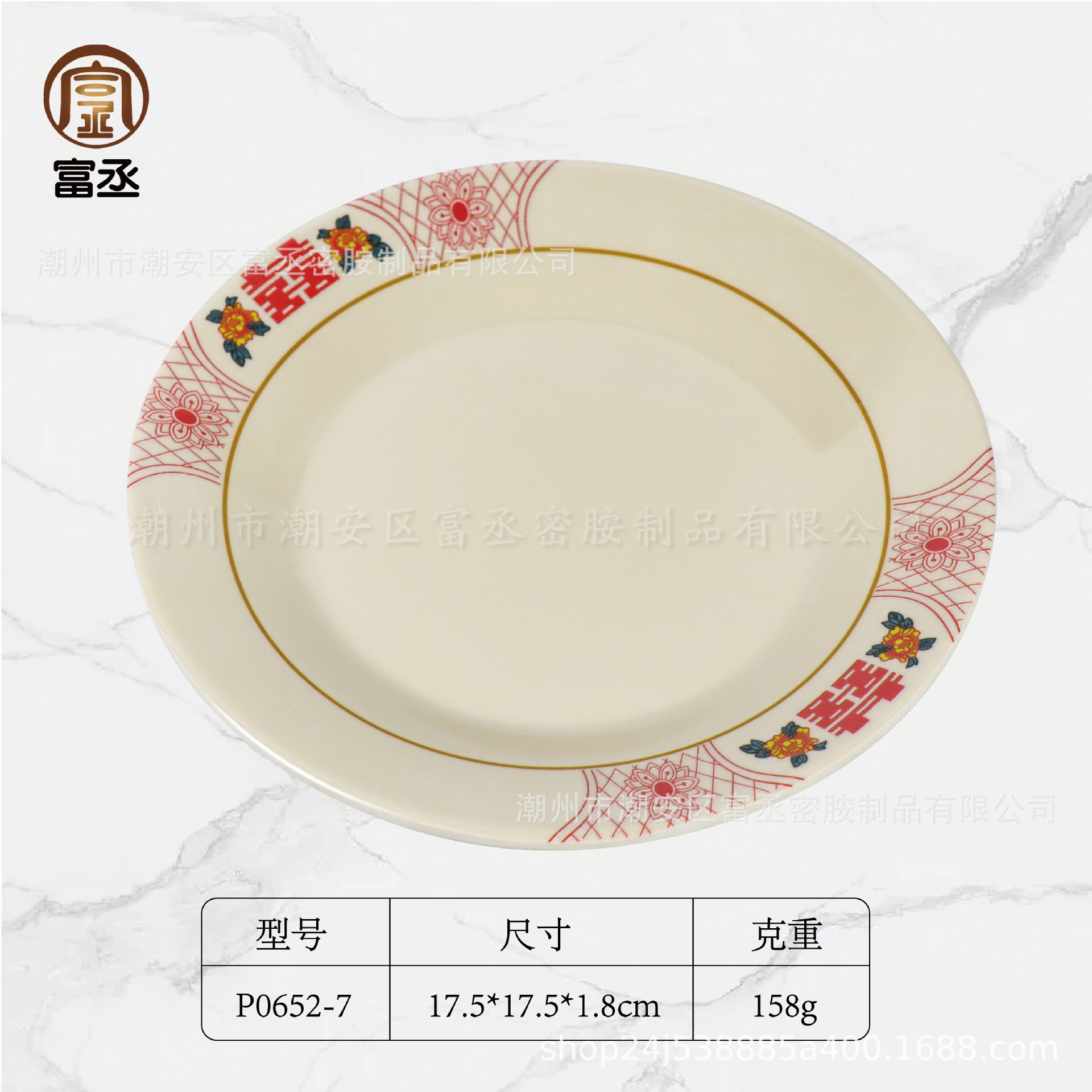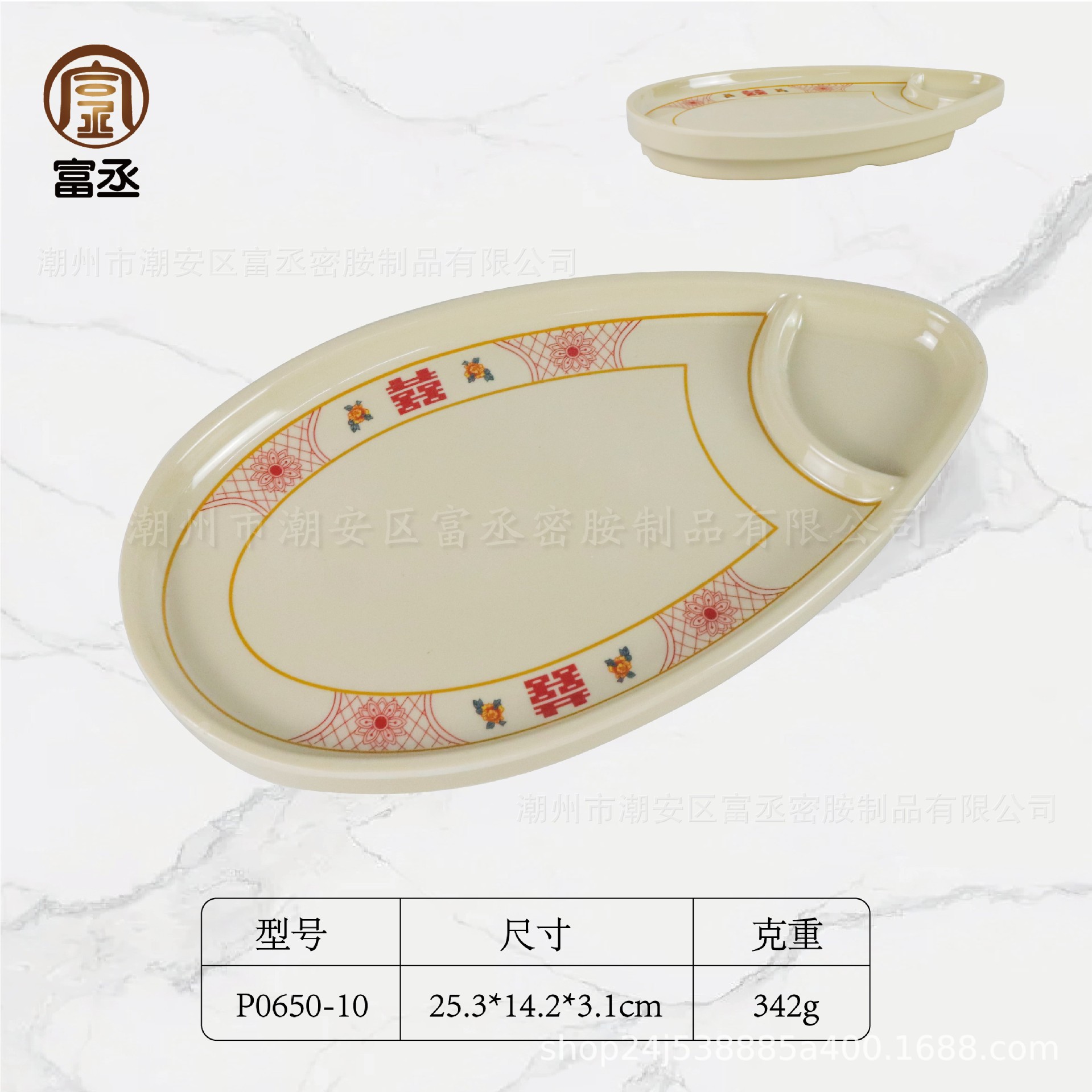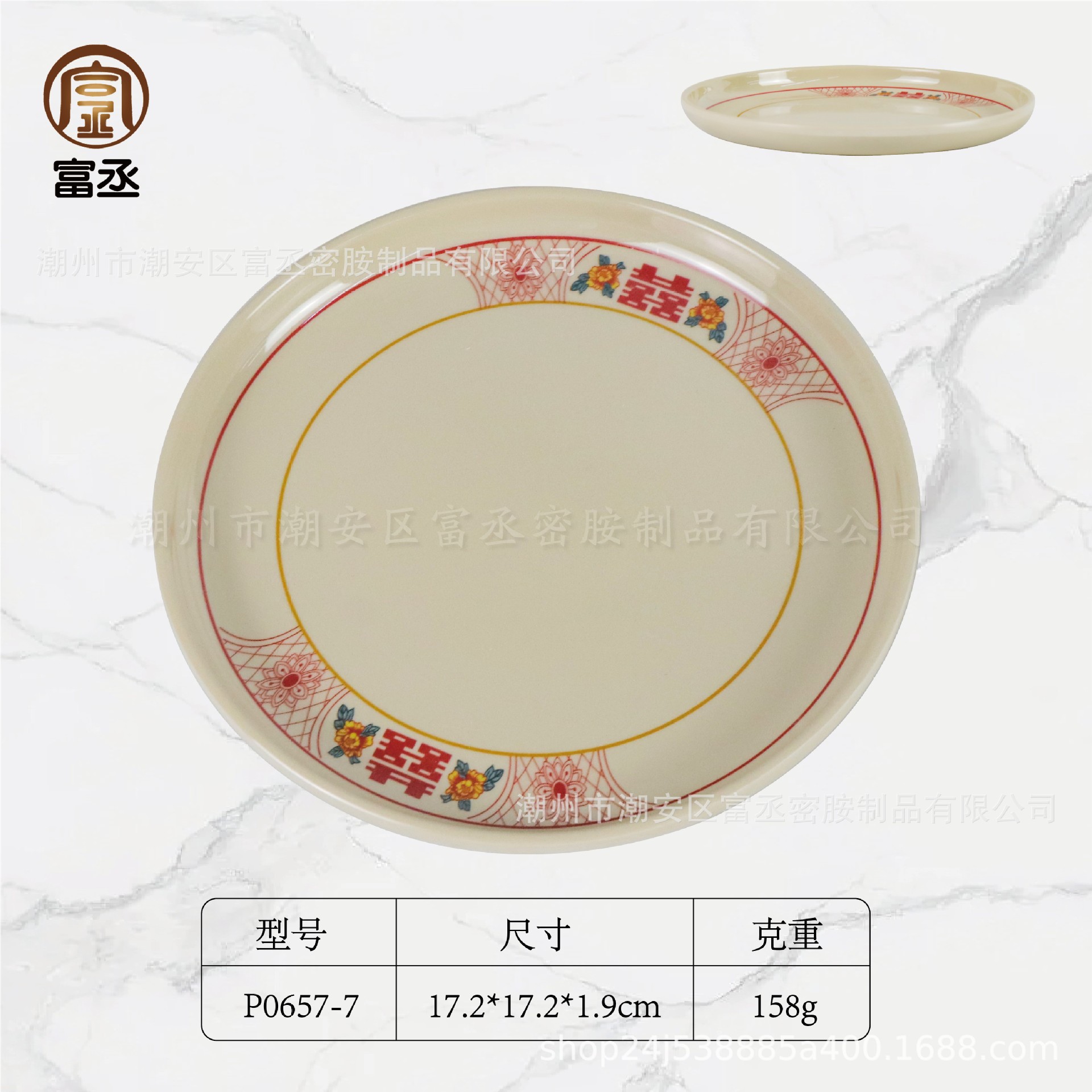 레드 더블 행복 멜라민 식기 접시 전골 식당 반찬 접시 차가운 접시 레트로 그리운 스타일 도자기 식기 공장 도매