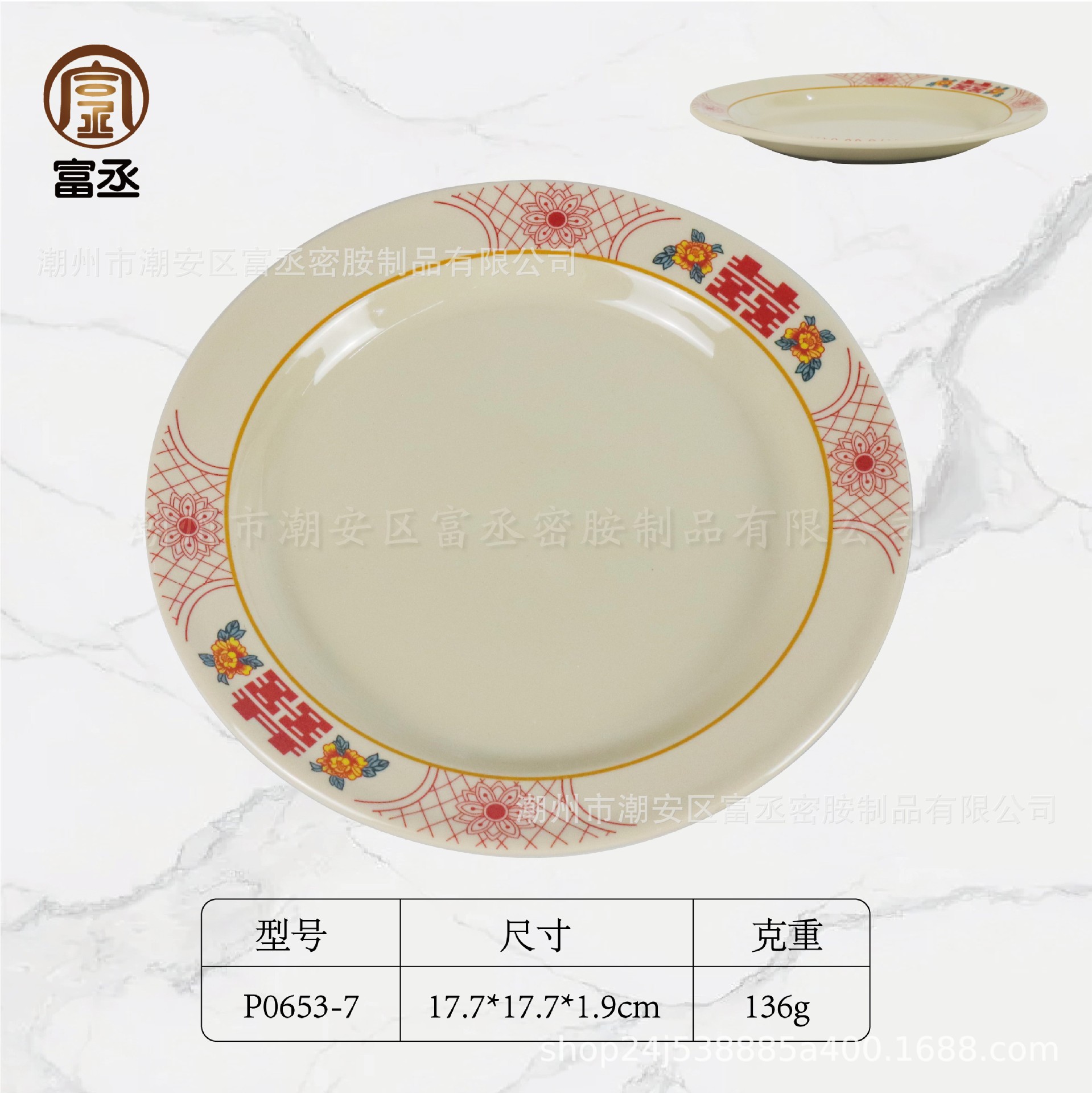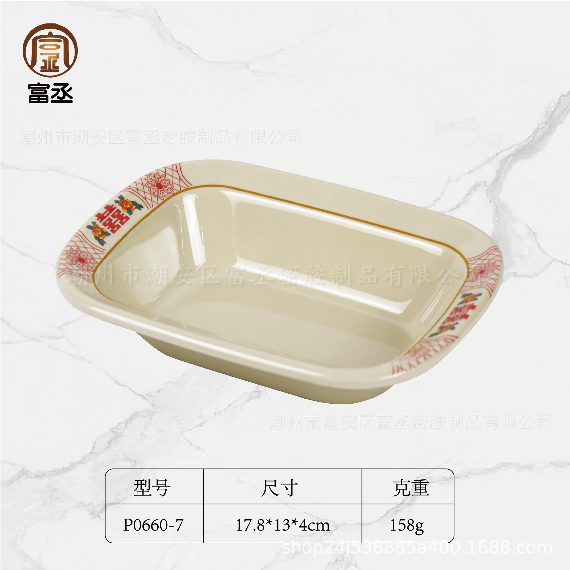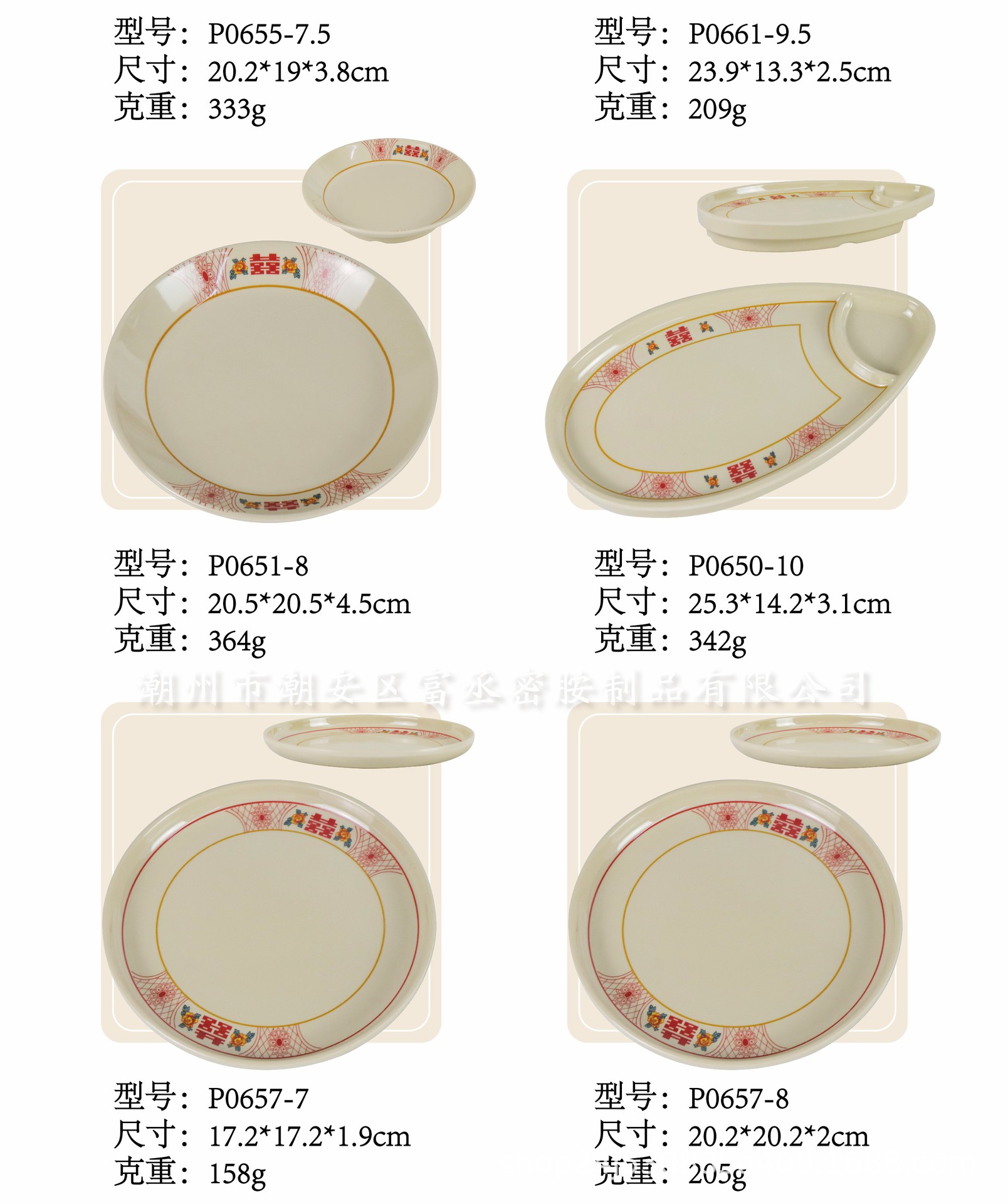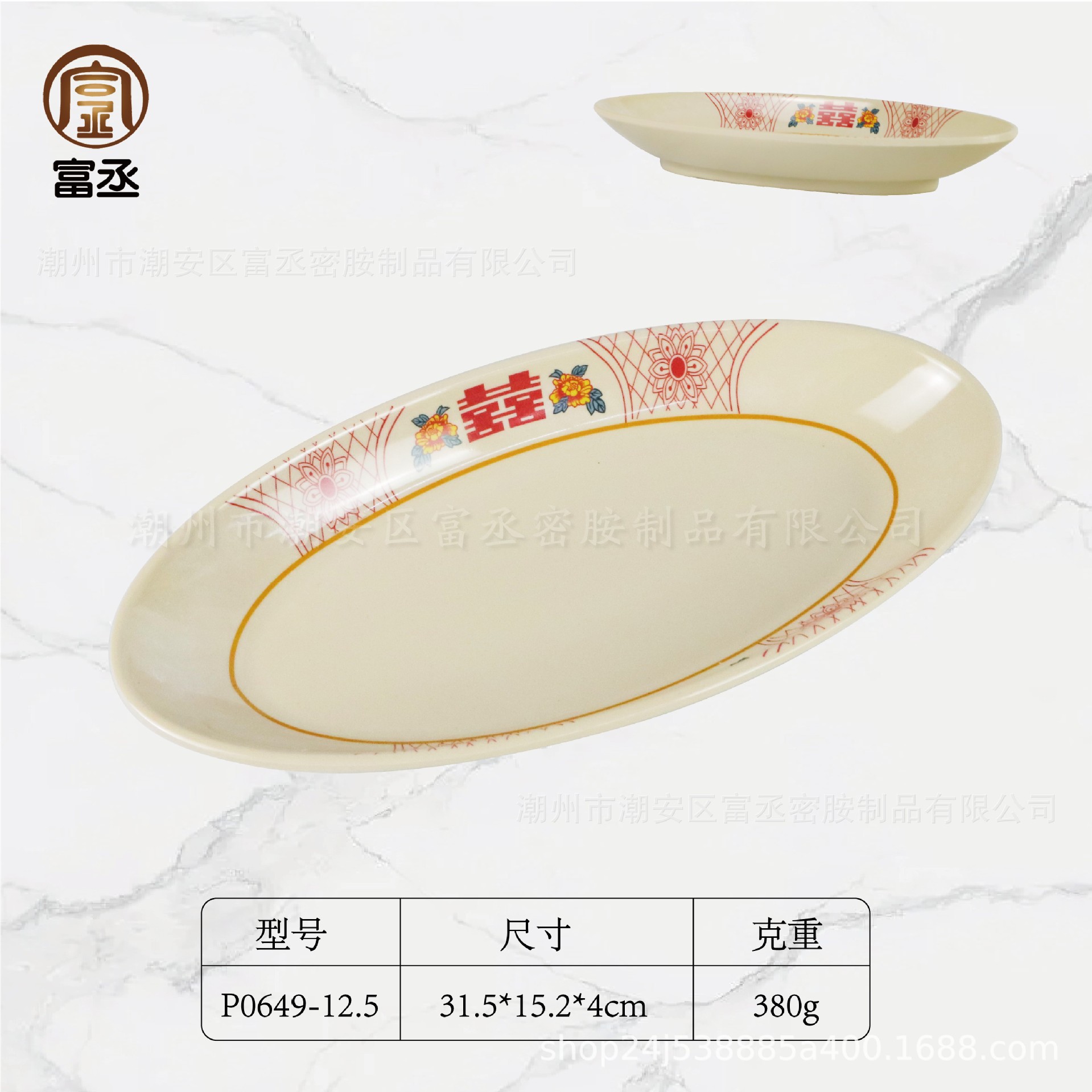 레드 더블 행복 멜라민 식기 접시 전골 식당 반찬 접시 차가운 접시 레트로 그리운 스타일 도자기 식기 공장 도매