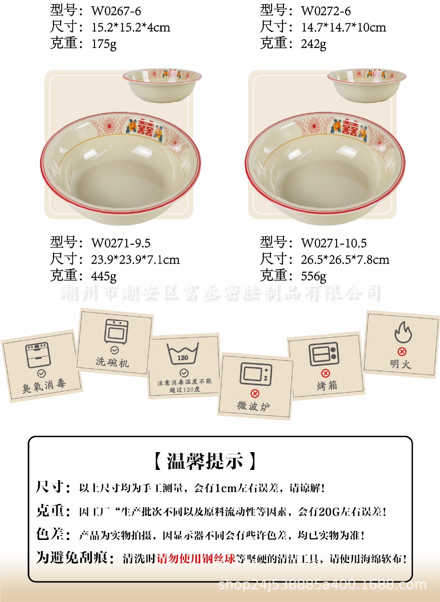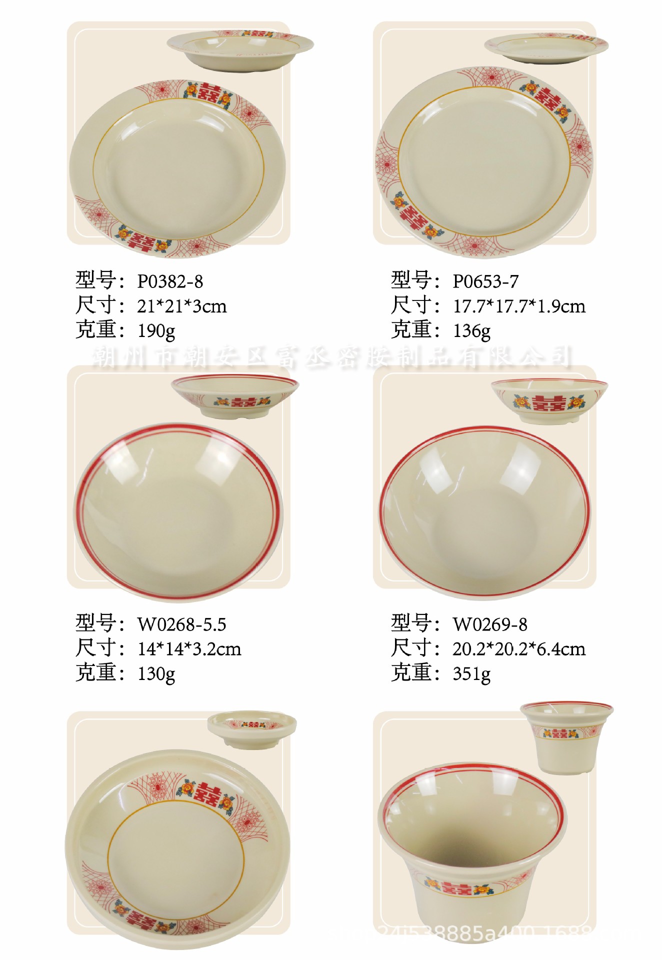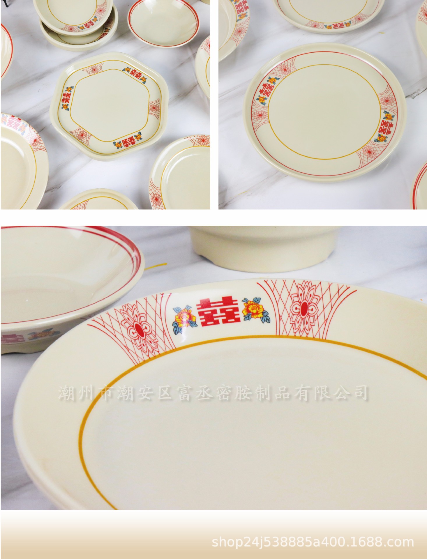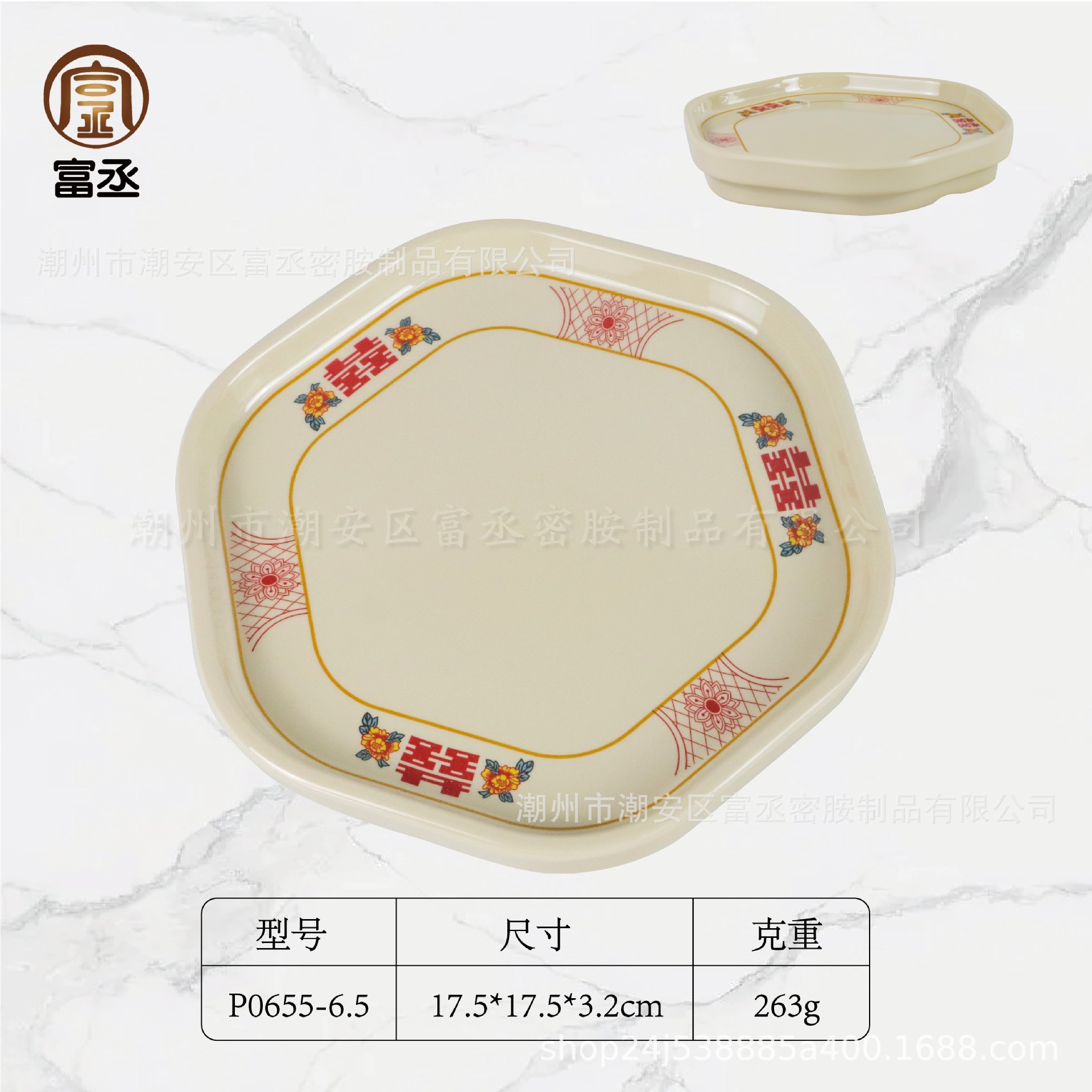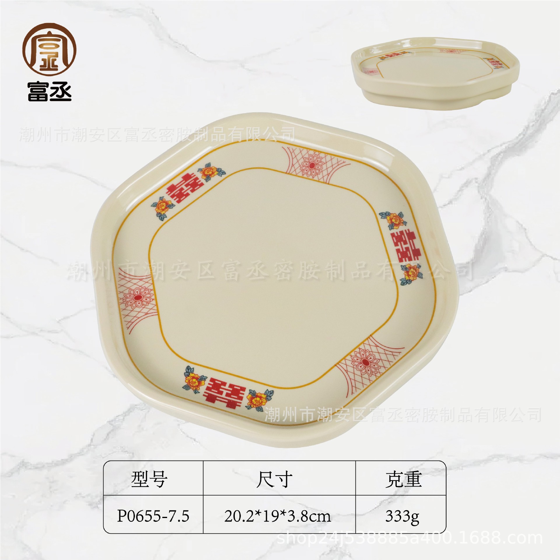레드 더블 행복 멜라민 식기 접시 전골 식당 반찬 접시 차가운 접시 레트로 그리운 스타일 도자기 식기 공장 도매