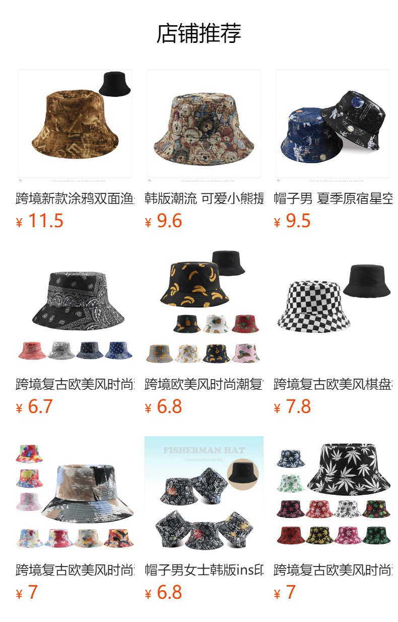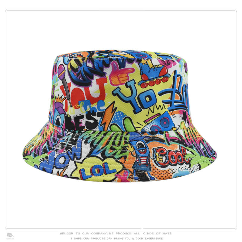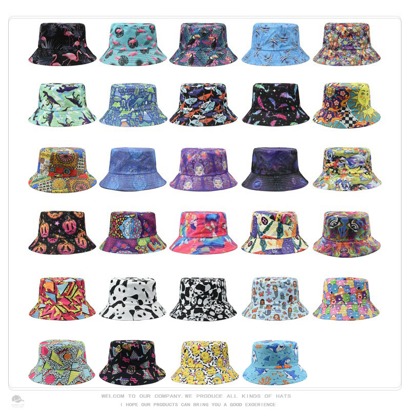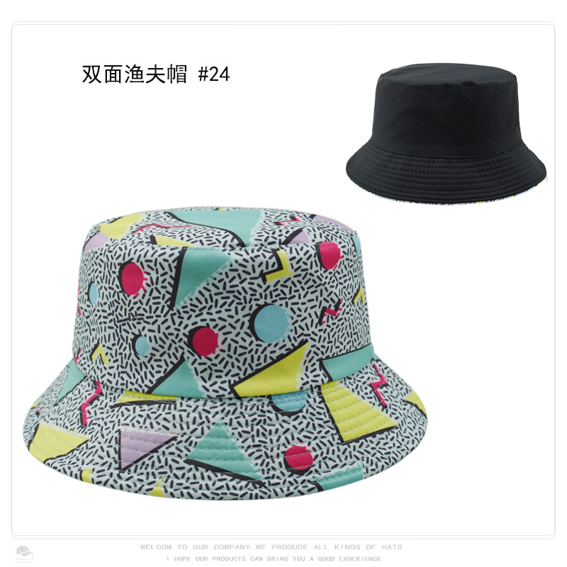 크로스 보더 레트로 패션 레트로 패턴 인쇄 어부 모자 여성의 야외 여행 태양 모자 양면 웨어러블 분지 모자스토어 가기