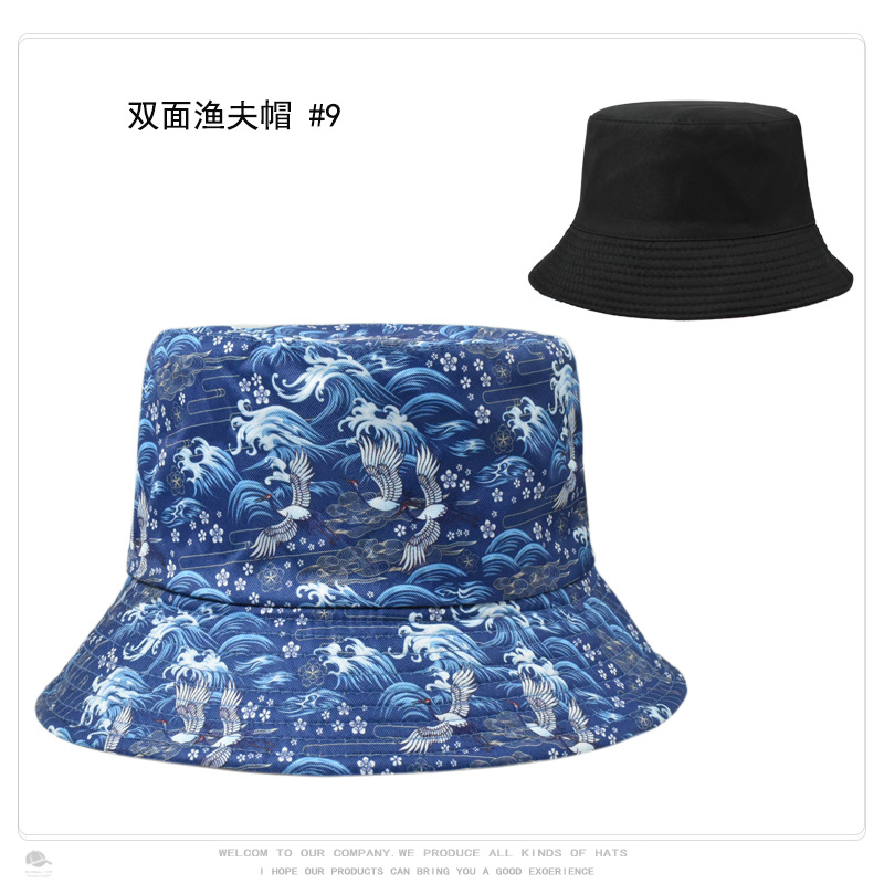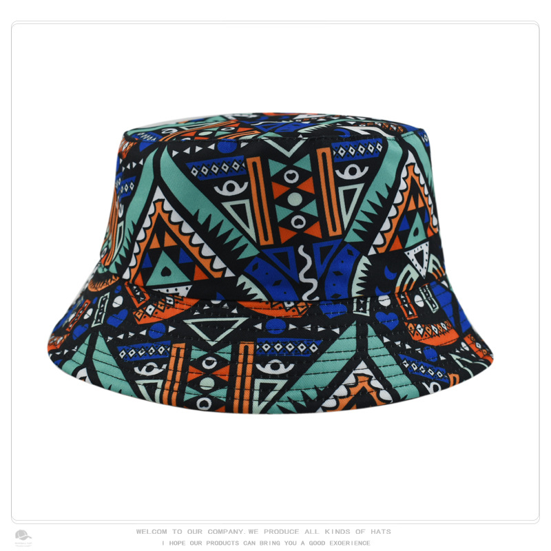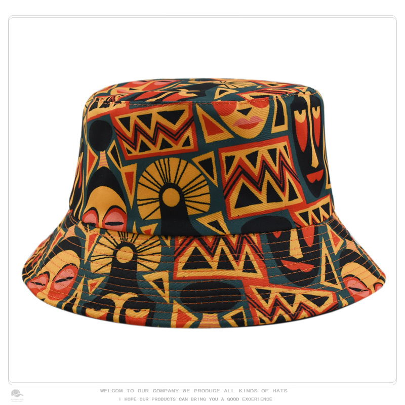 크로스 보더 레트로 패션 레트로 패턴 인쇄 어부 모자 여성의 야외 여행 태양 모자 양면 웨어러블 분지 모자