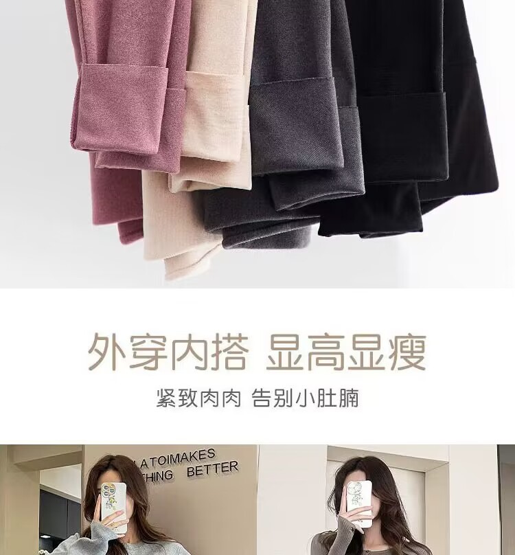 자체 발열 벨벳 레깅스 여성용 하이 웨이스트 기모 두꺼운 따뜻한 바지 원활한 복부 방한 따뜻한 여성의 가을 바지
