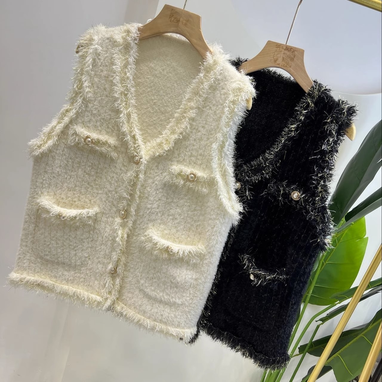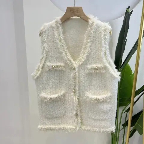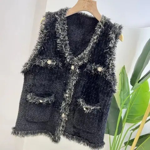 가을 2023 새로운 스타일 샤넬 스타일 조끼 여자의 웨스턴 스타일 민소매 느슨한 조끼 골드 숄더 탑 크로스 보더 조끼 재킷스토어 가기