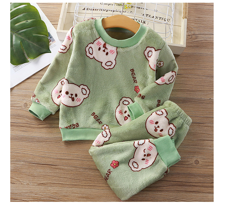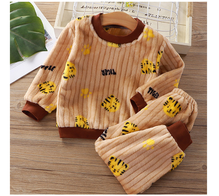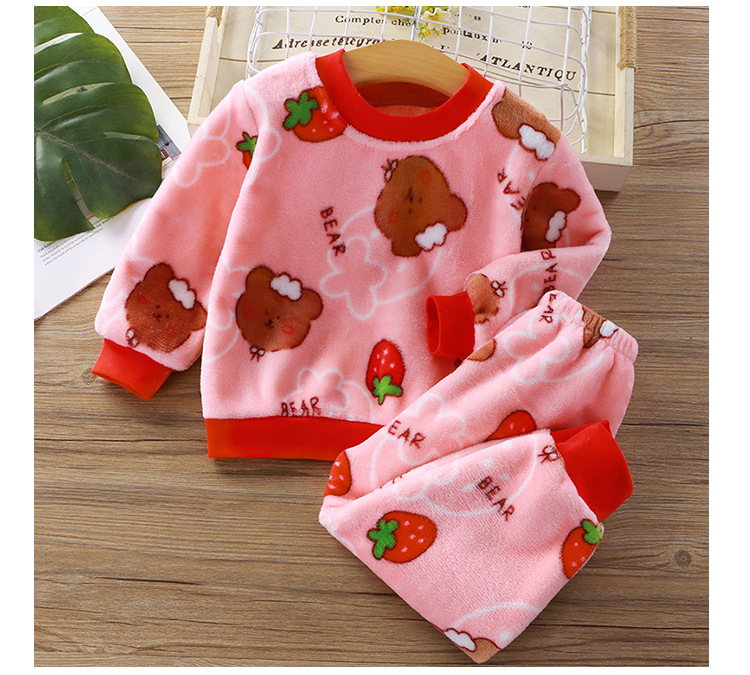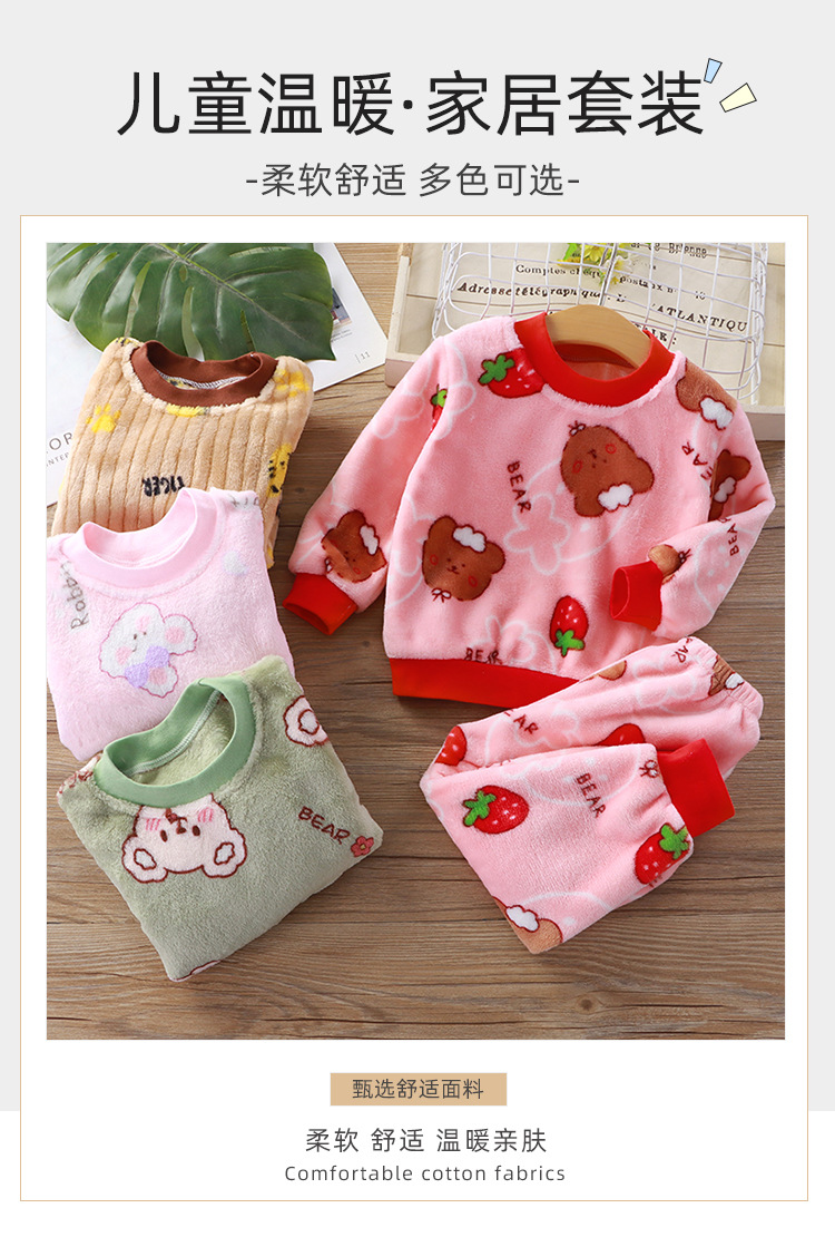 어린이 플란넬 잠옷 세트 소년과 소녀 한국 스타일 따뜻한 두꺼운 가정 옷 아기 기모 옷 세트스토어 가기