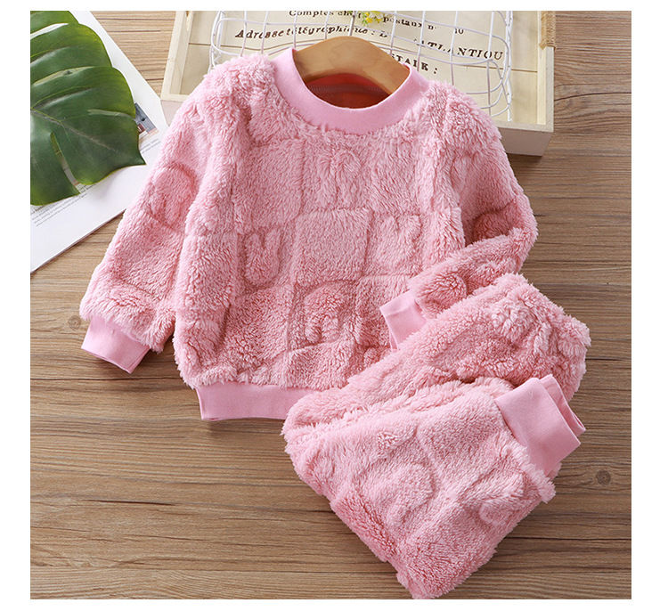 어린이 플란넬 잠옷 세트 소년과 소녀 한국 스타일 따뜻한 두꺼운 가정 옷 아기 기모 옷 세트