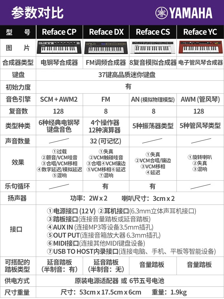 야마하 신디사이저 리페이스 YC/CS/DX/CP 휴대용 미니 37 키 배열기 미디 키보드 FM