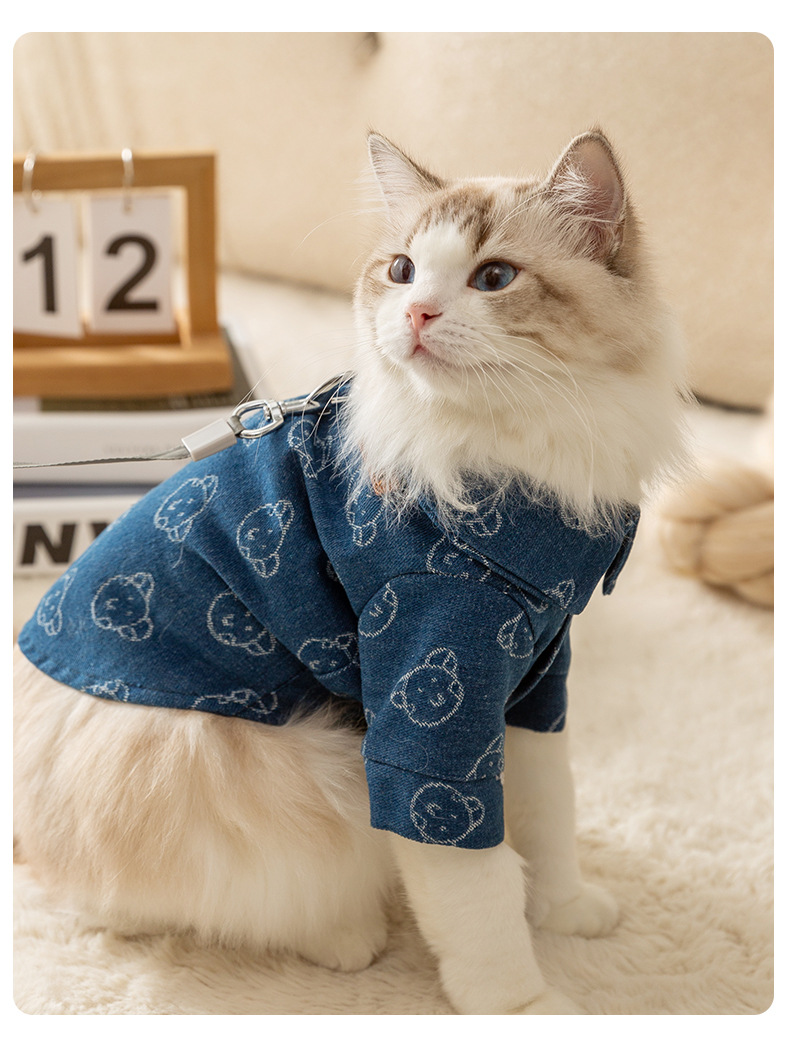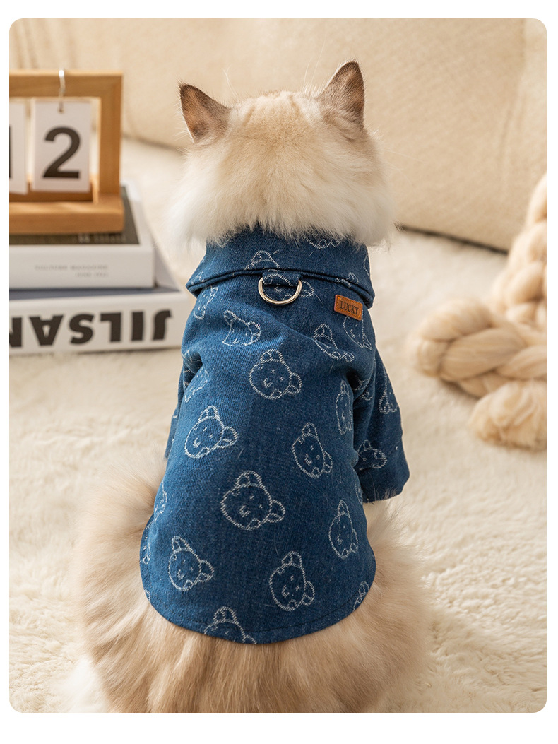 가을과 겨울 고양이 옷 견인 데님 옷 고양이 고양이 테디 가을 코트 작은 개 애완 동물 옷