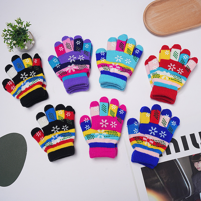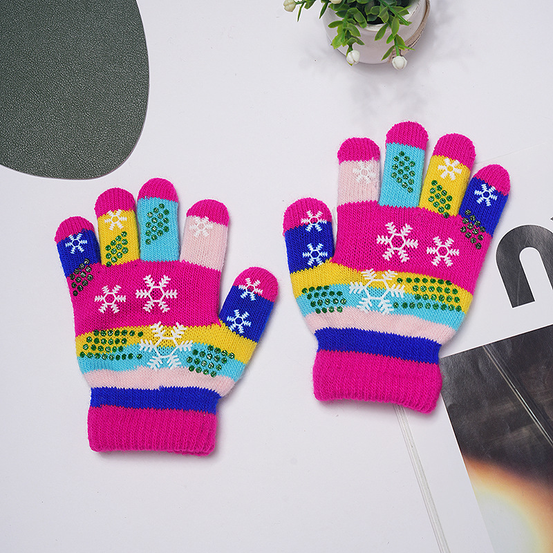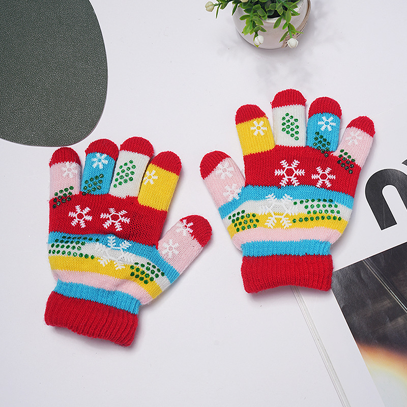 공장 겨울 더블 두껍게 기모 감기 따뜻한 어린이 학생 귀여운 만화 눈송이 여러 가지 빛깔의 장갑스토어 가기