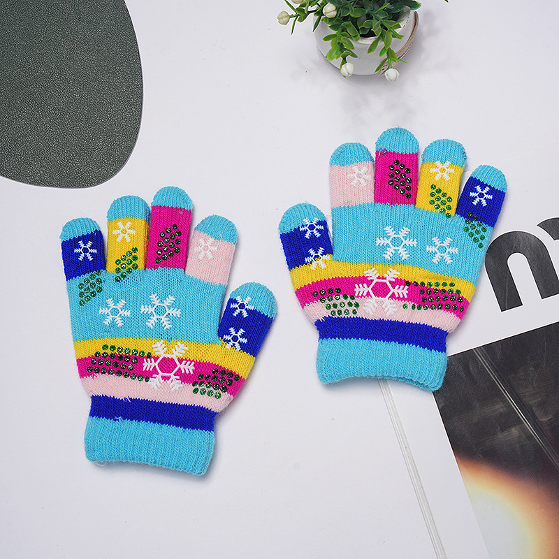 공장 겨울 더블 두껍게 기모 감기 따뜻한 어린이 학생 귀여운 만화 눈송이 여러 가지 빛깔의 장갑