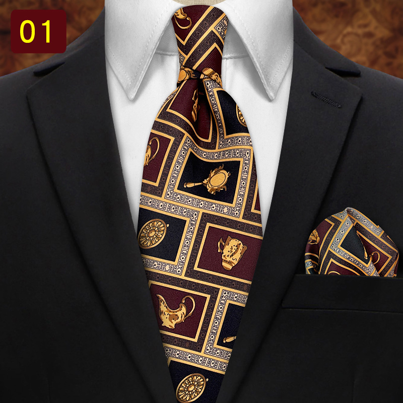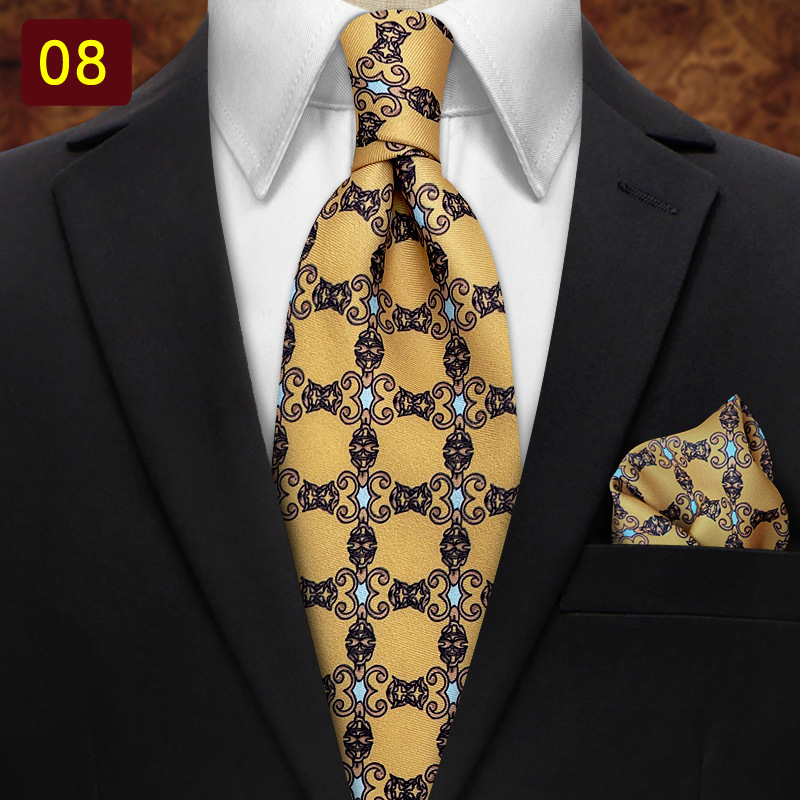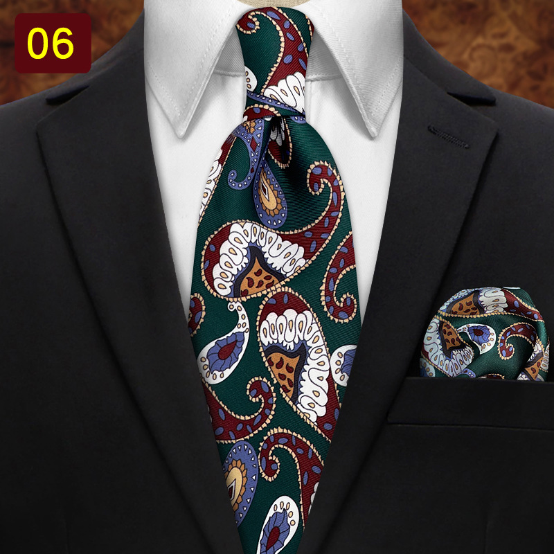 트렌디한 남성 유럽과 미국의 정장 비즈니스 연회 정장 페이즐리 복고풍 패턴 9CM 와이드 타이 포켓 스카프 슈트스토어 가기