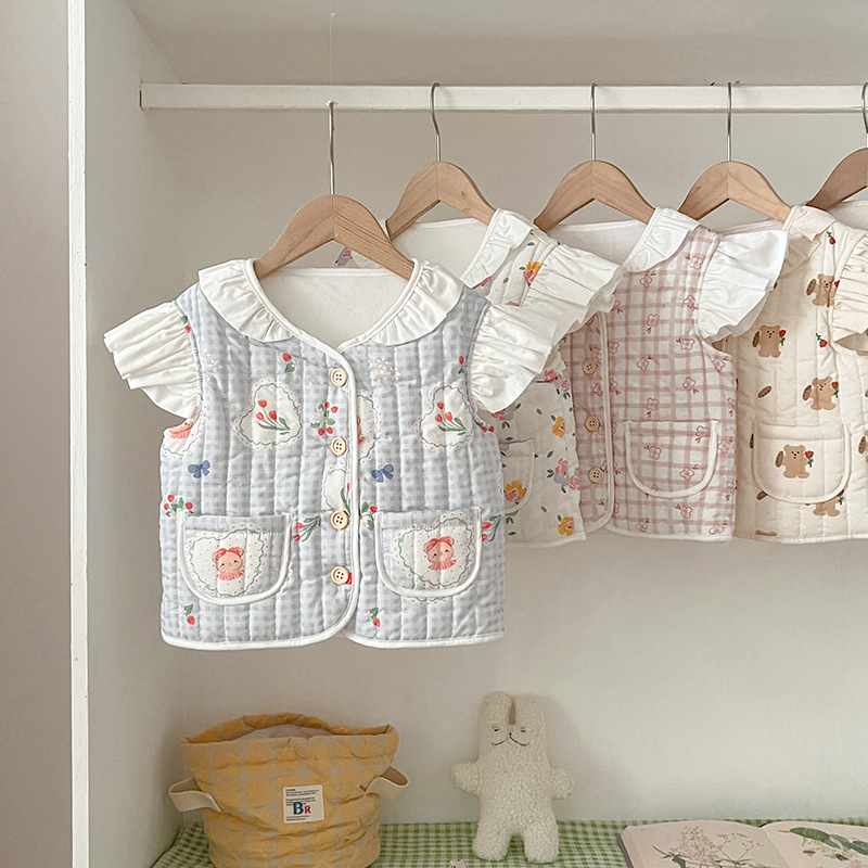 2025 아기 가을 퀼트 따뜻한 조끼 아기 조끼 소녀 양복 조끼 겉옷 유아 조끼 가을, 겨울 스타일