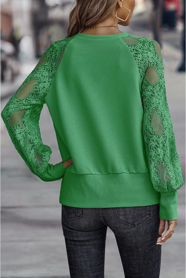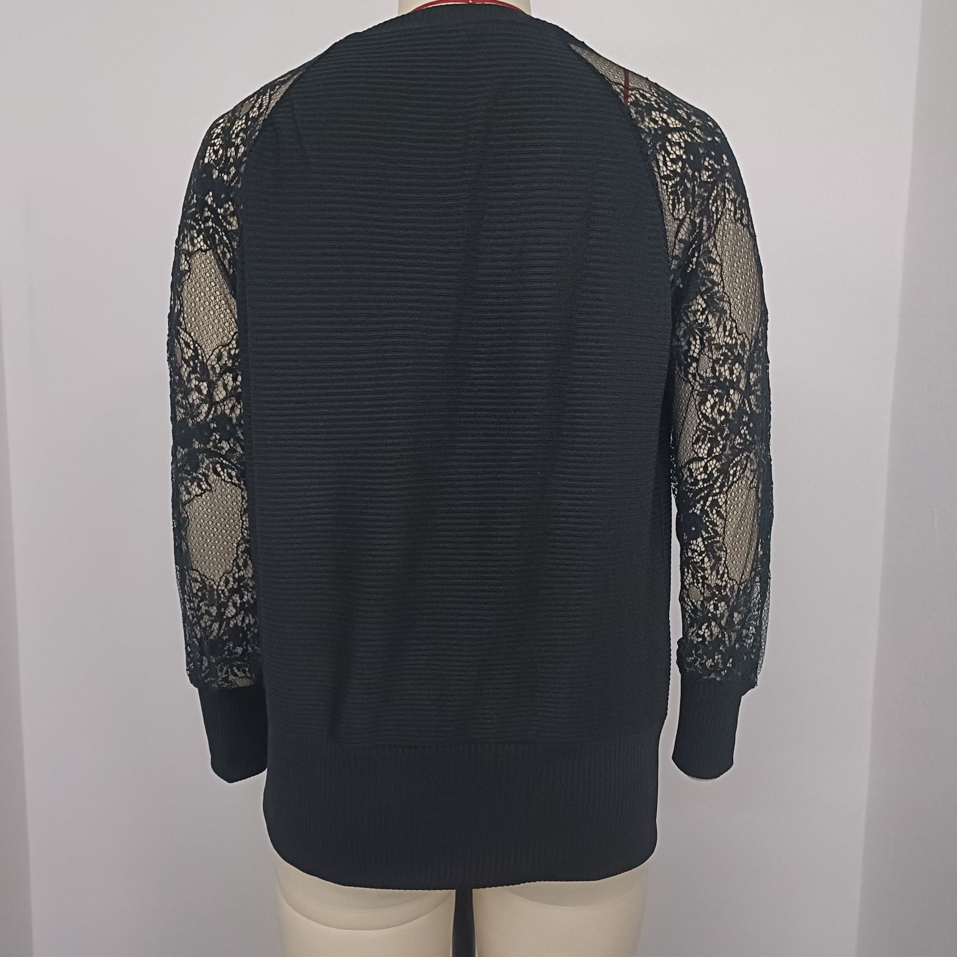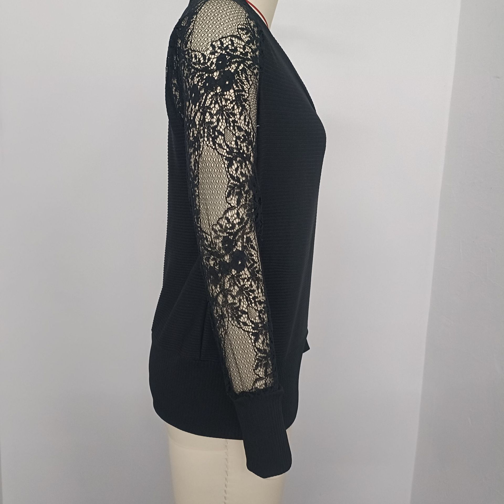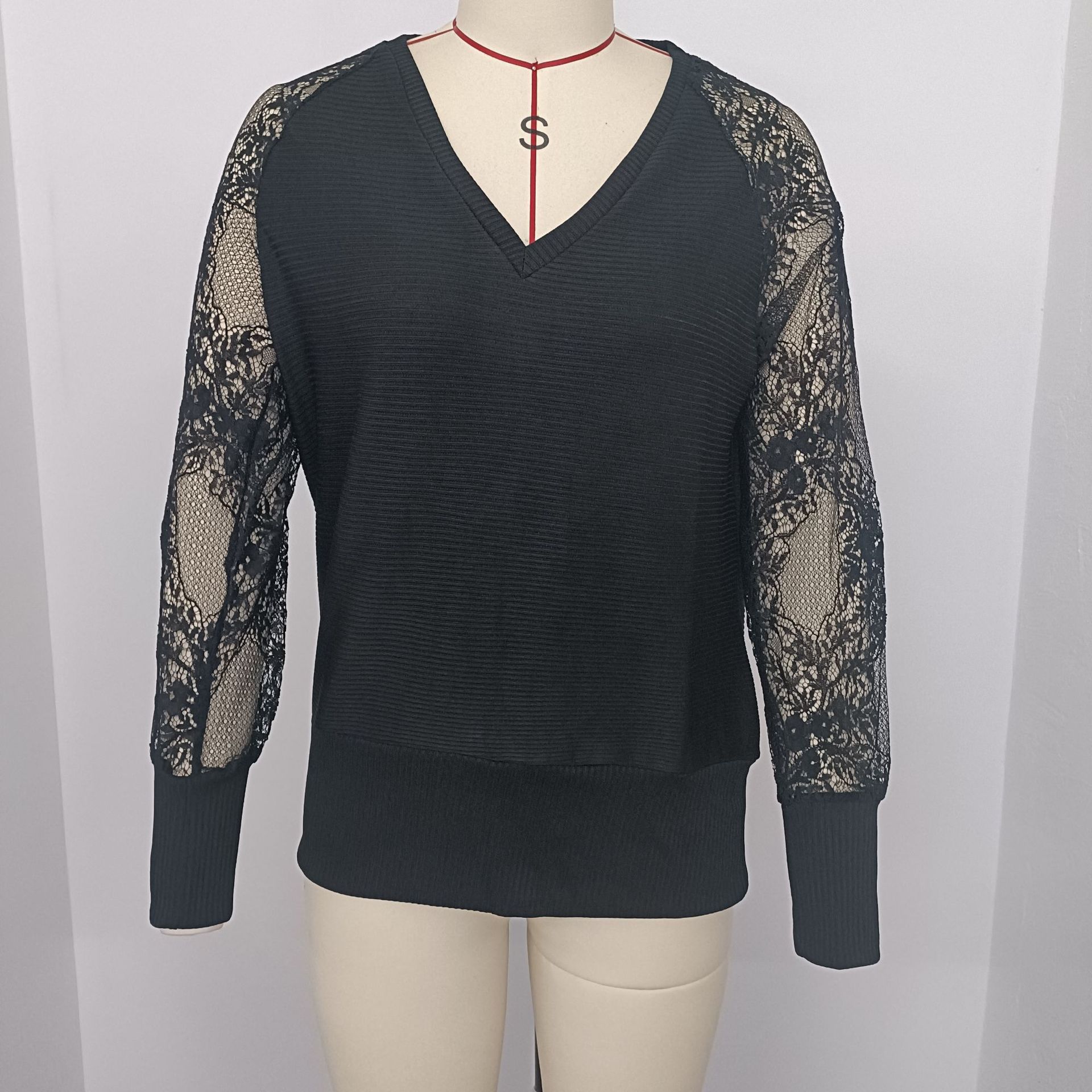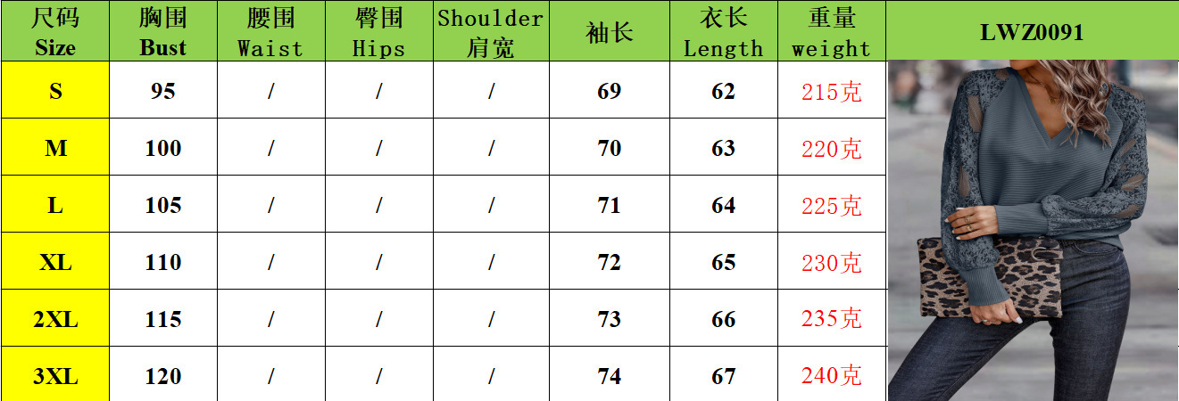 유럽과 미국의 국경 간 가을과 겨울 새로운 여성 의류 2023 단색 V 넥 긴 소매 스티칭 레이스 패션 니트 블라우스스토어 가기