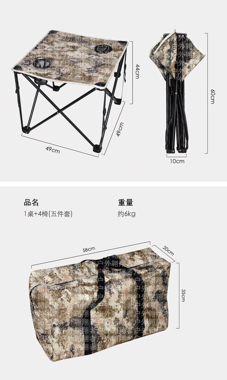 플라잉 아웃도어 휴대용 위장 5 피스 폴딩 뽕나무 테이블과 의자 캠핑 레저 트렁크 자율주행 투어 공장 도매스토어 가기