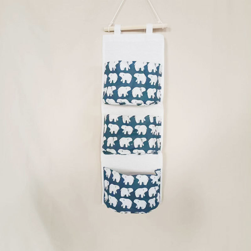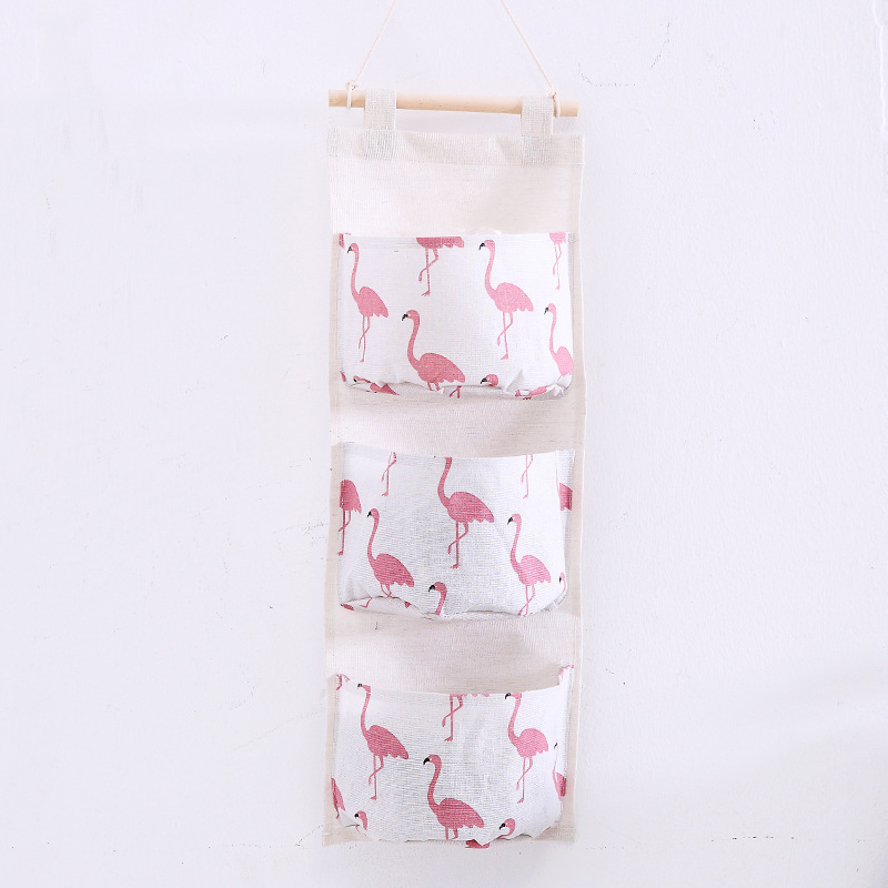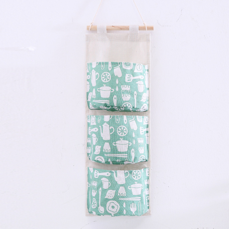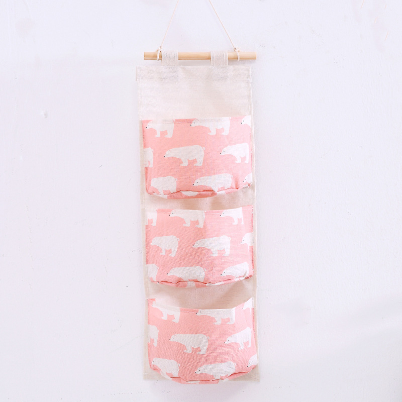 • ins风门后挂壁式收纳兜三兜收纳袋收纳盒棉麻收纳挂壁式储物挂袋