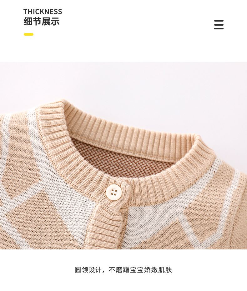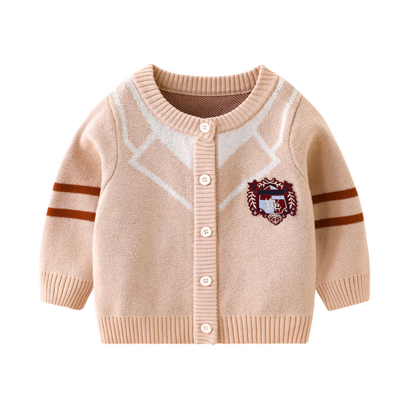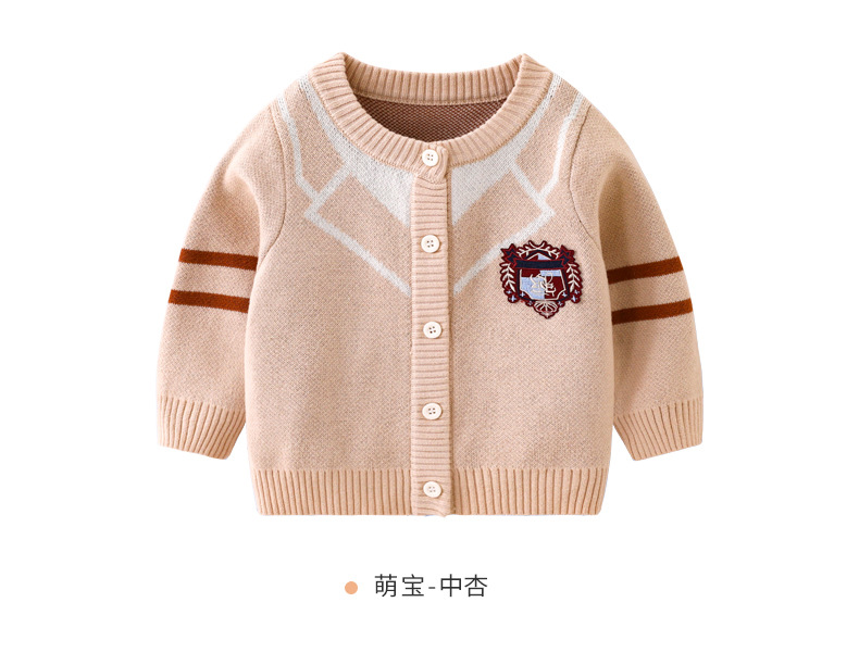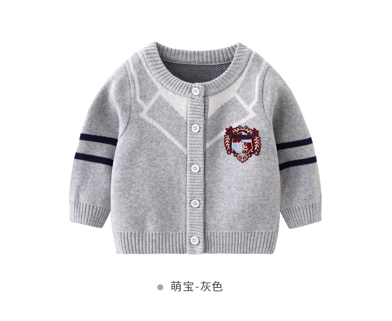 봄과 가을 새로운 아기 순수 코튼 더블 레이어 코튼 니트 탑 도매 아기 소년 라운드 넥 카디건 간단한 재킷스토어 가기