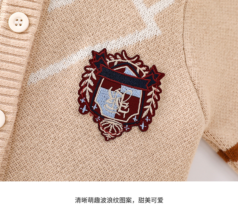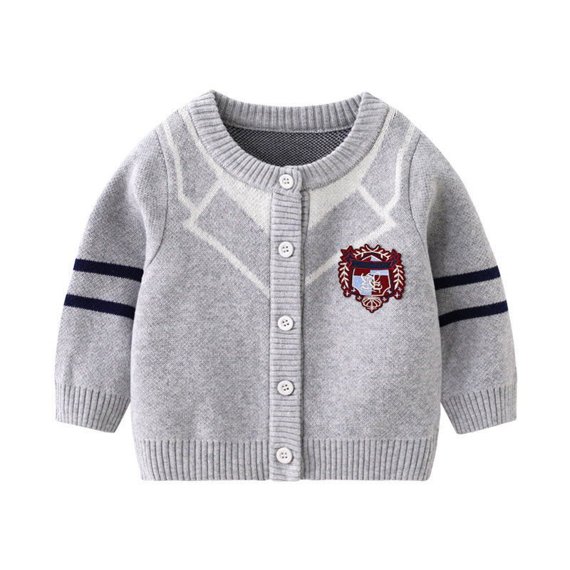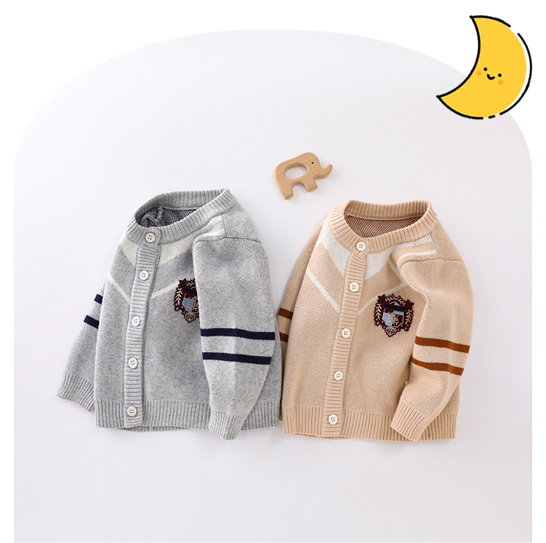 봄과 가을 새로운 아기 순수 코튼 더블 레이어 코튼 니트 탑 도매 아기 소년 라운드 넥 카디건 간단한 재킷