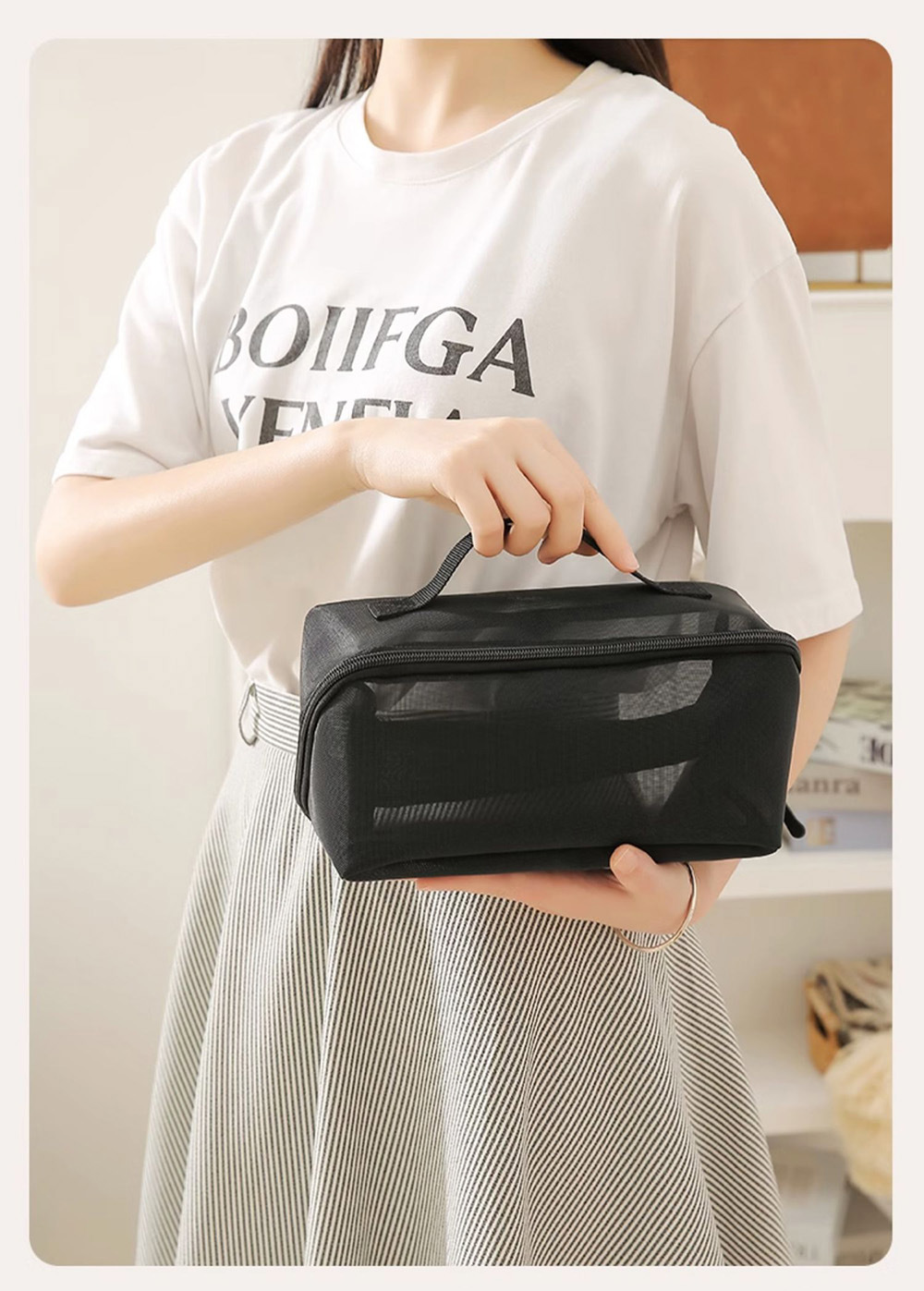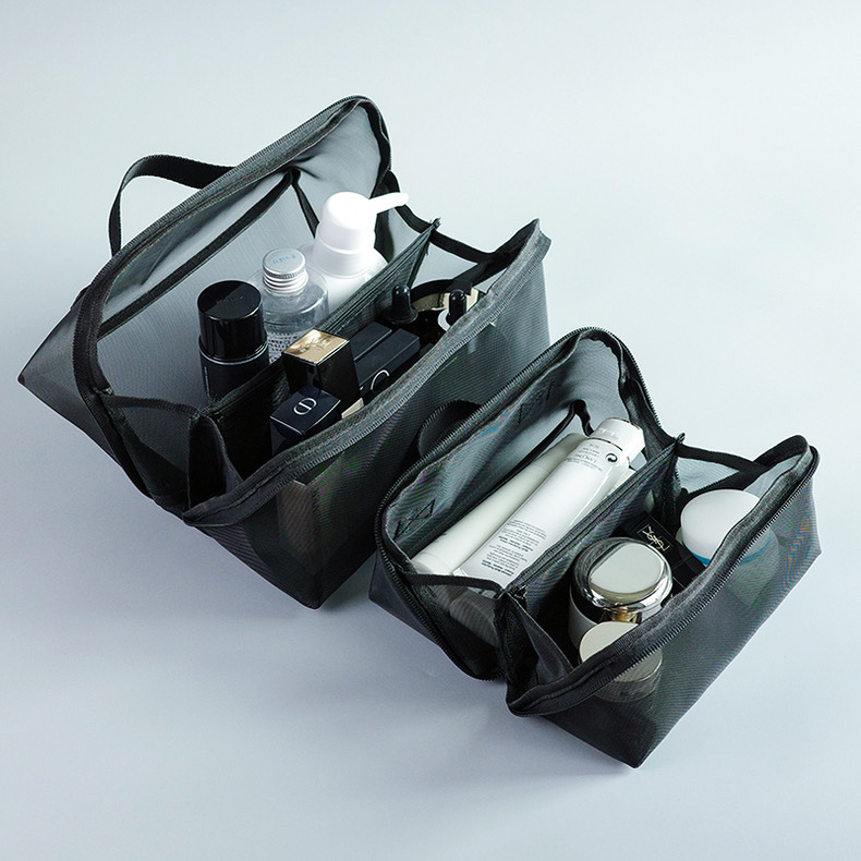대용량 휴대용 여성용 화장품 가방, 인기 여행용 화장품 수납 가방, 투명 메쉬 세면도구 가방스토어 가기
