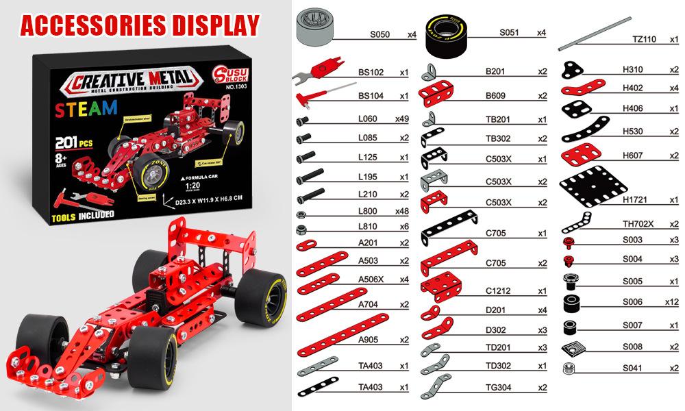 • 금속 조립 빌딩 블록 F1 포뮬러 레이싱 카 [전자상거래 상자]