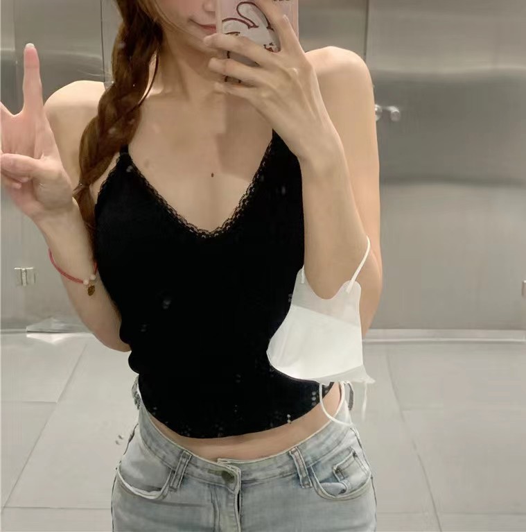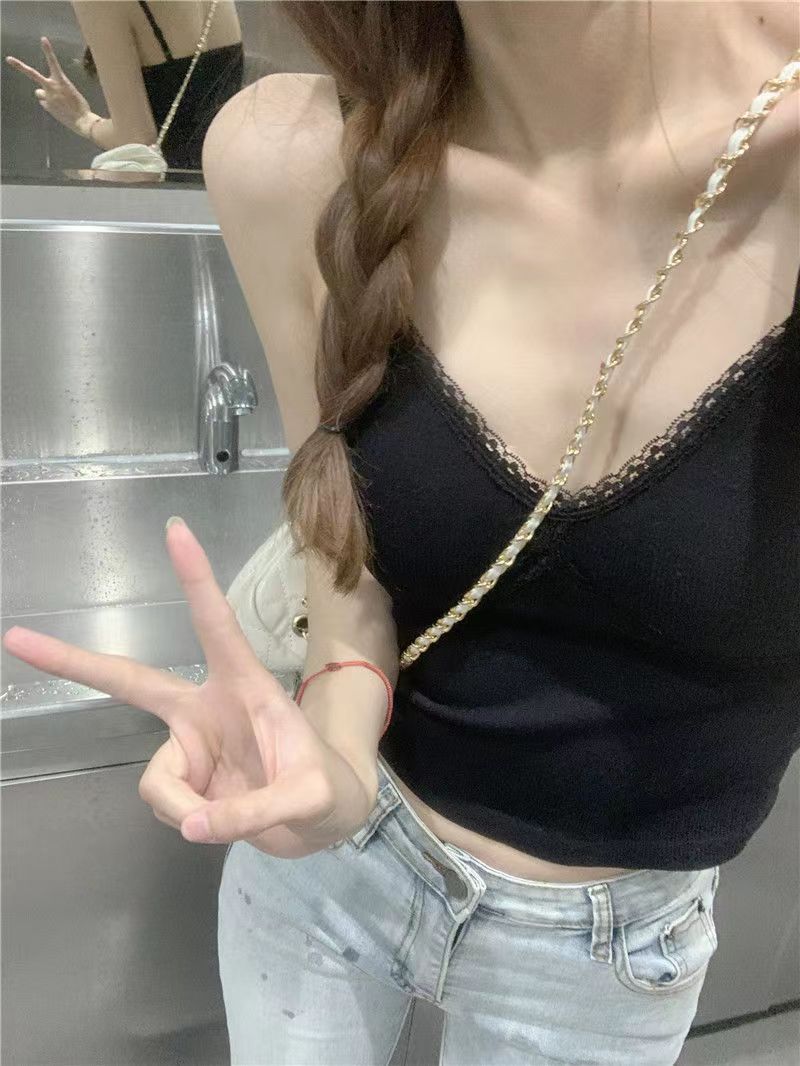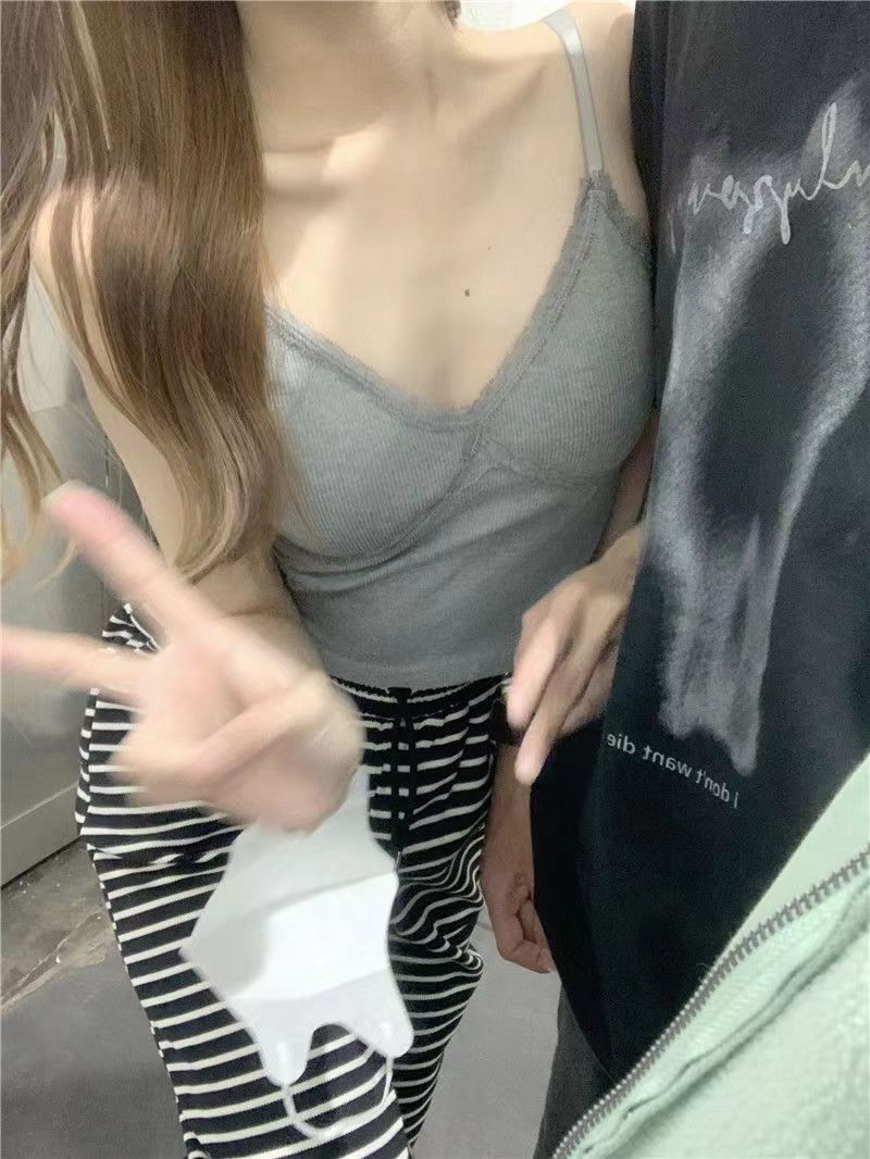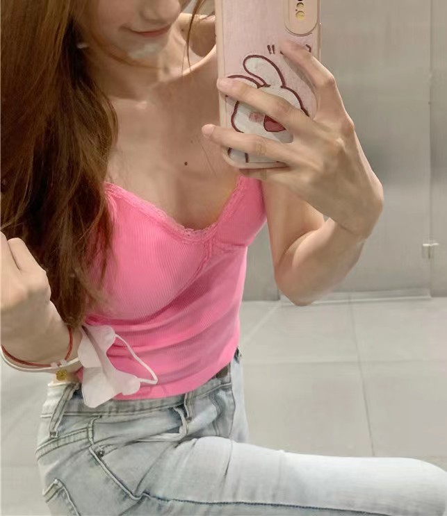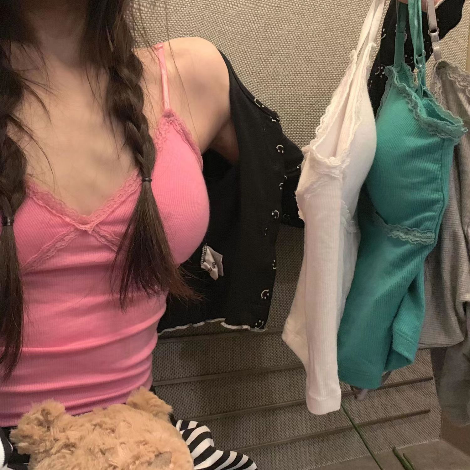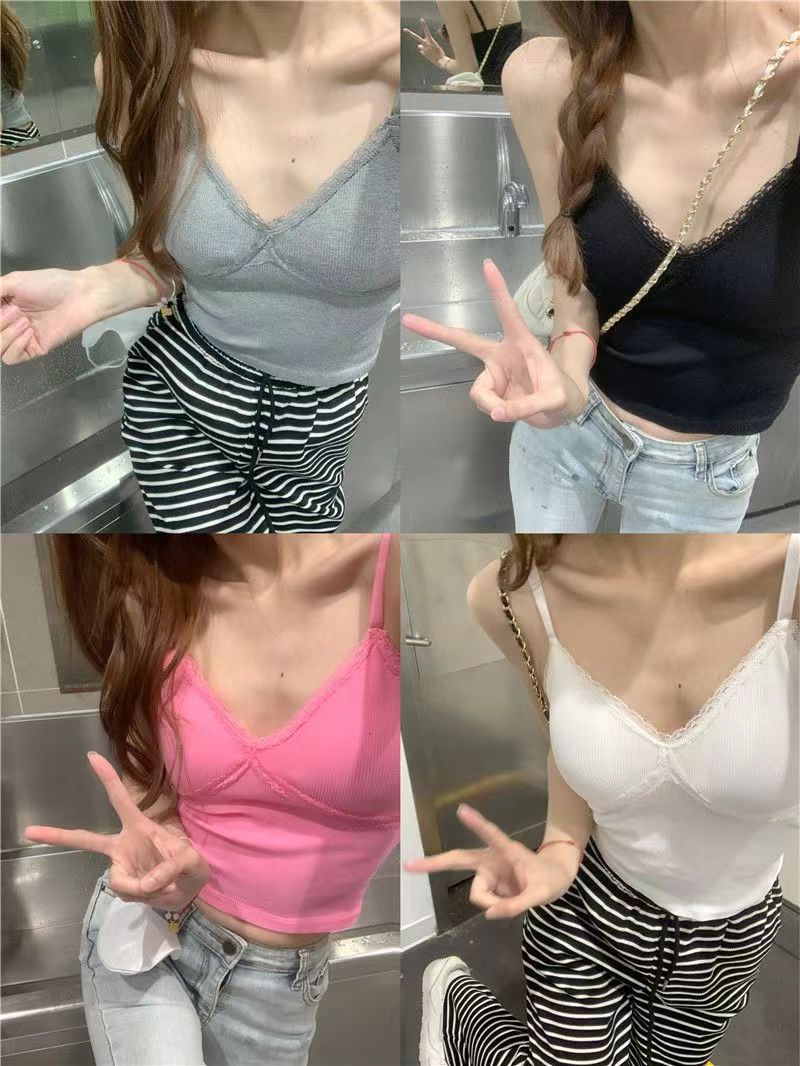 순수하고 바람직한 캐미솔 겉옷 조끼 가슴 패드 섹시한 뜨거운 소녀 짧은 모든 매치 아름다운 조끼 기계 여성용 탑