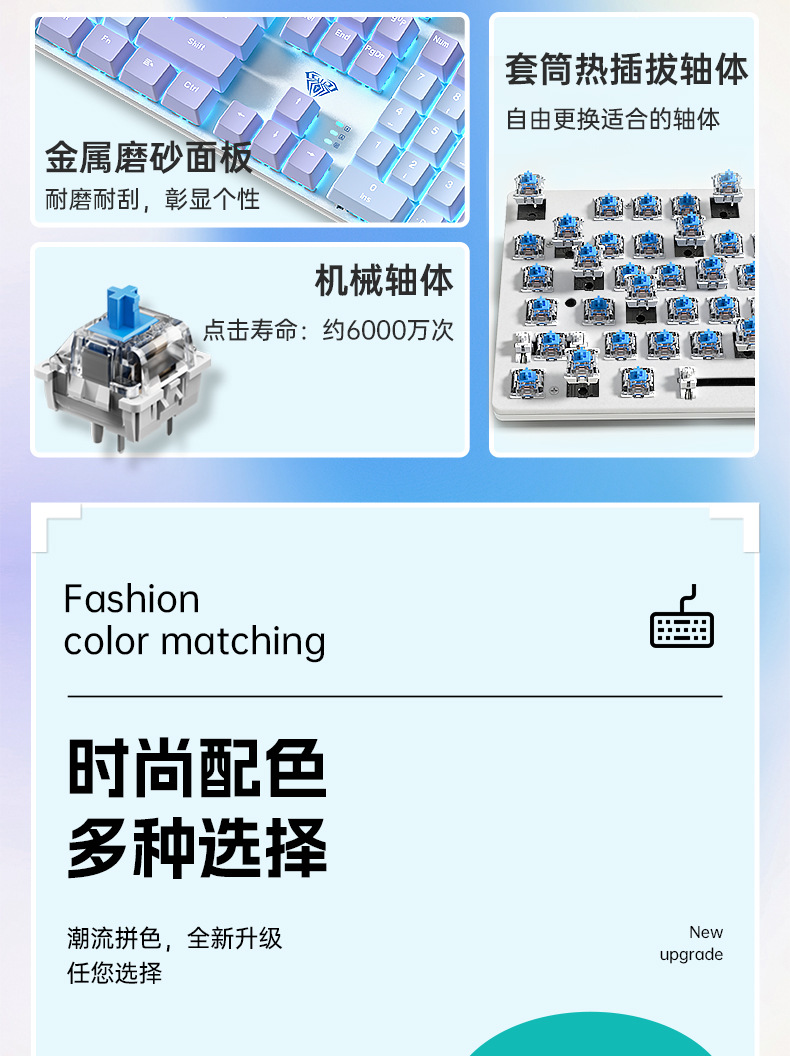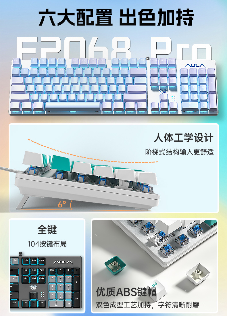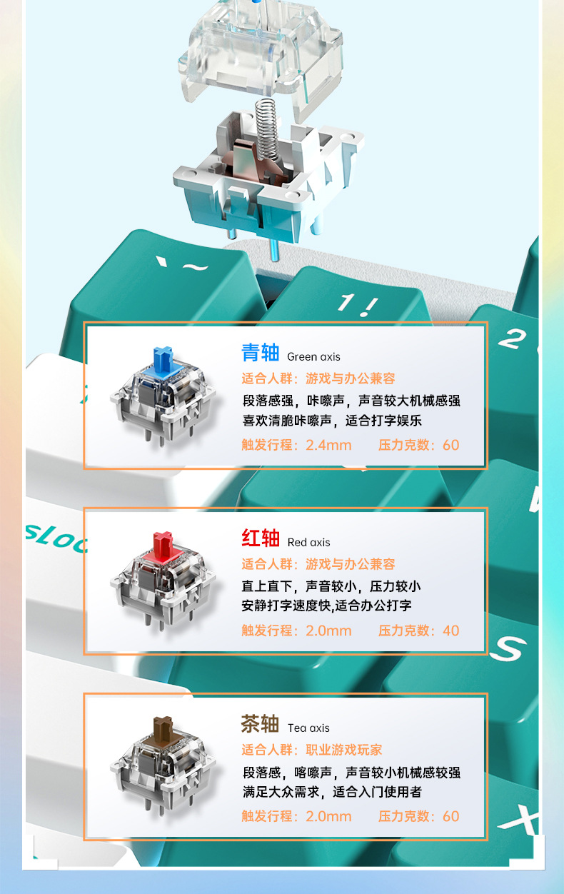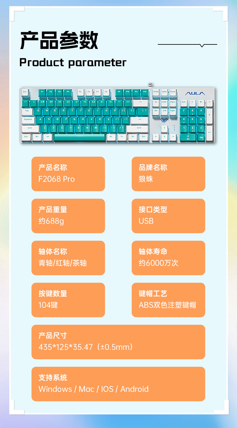 AULA 타란툴라 기계식 키보드 유선 핫 플러그 eSports 게임 데스크탑 노트북 녹차 샤프트