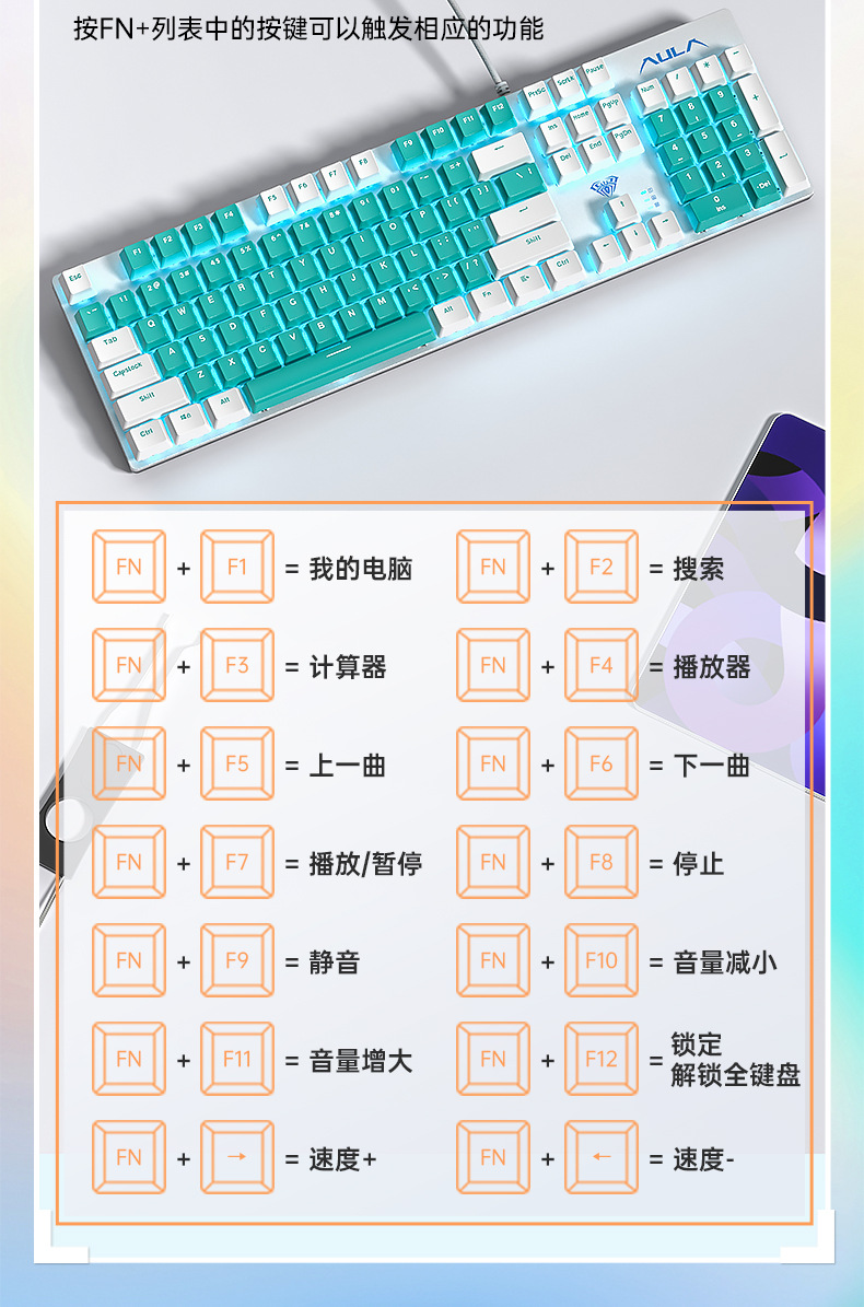 AULA 타란툴라 기계식 키보드 유선 핫 플러그 eSports 게임 데스크탑 노트북 녹차 샤프트스토어 가기