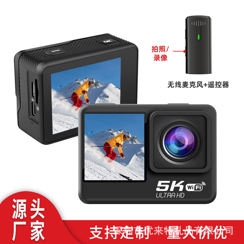 무선 마이크 스포츠 카메라 야외 흔들림 방지 라이딩 카메라 미니 방수 레코더 5K 스포츠 카메라