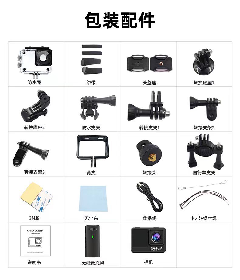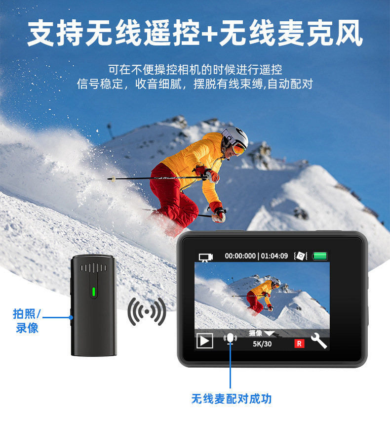 무선 마이크 스포츠 카메라 야외 흔들림 방지 라이딩 카메라 미니 방수 레코더 5K 스포츠 카메라스토어 가기