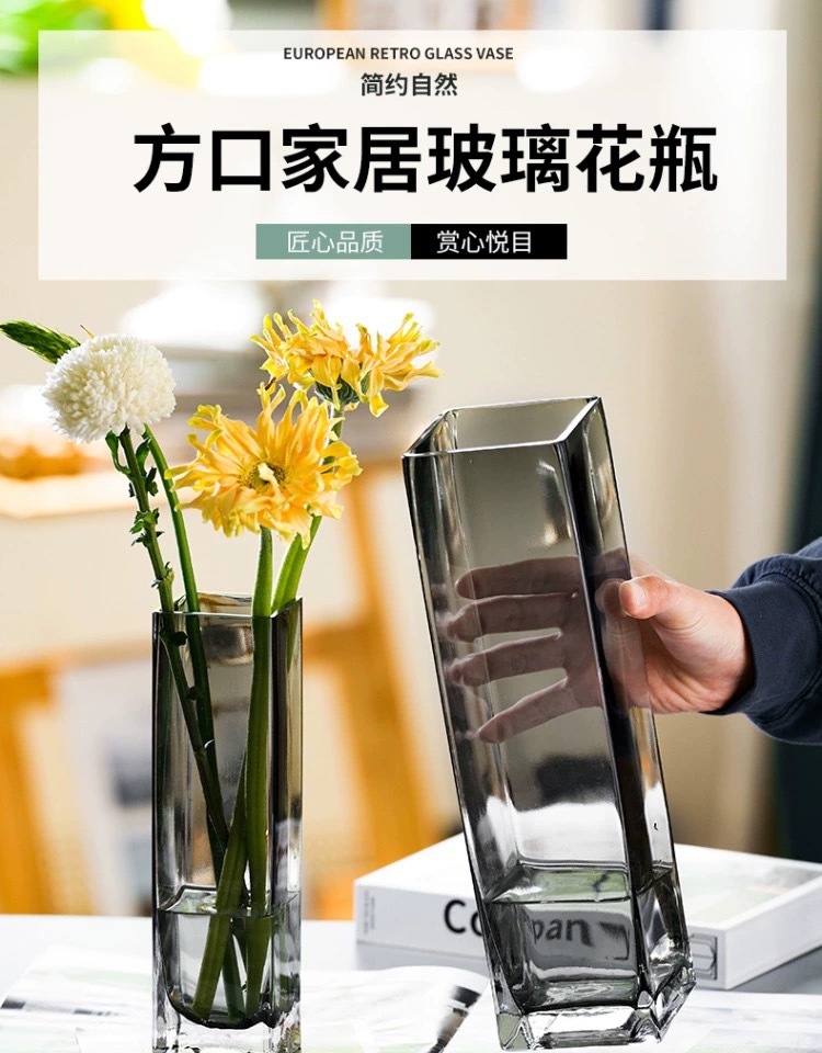 가벼운 고급 창조적 인 고급 1 색 유리 투명한 꽃병 거실 부드러운 장식 수경 꽃 꽃 장식품스토어 가기
