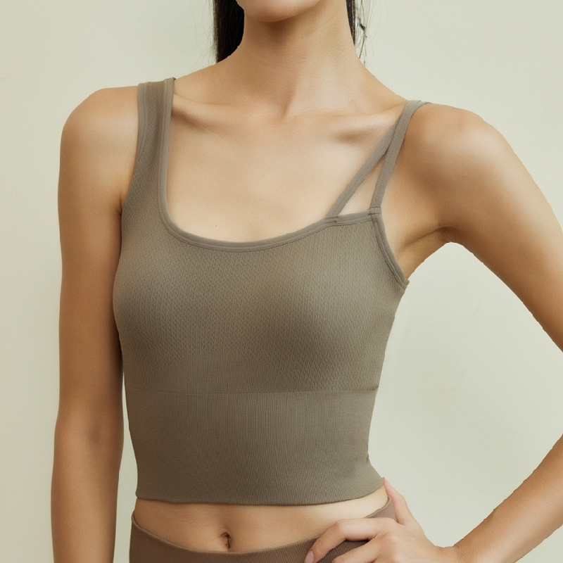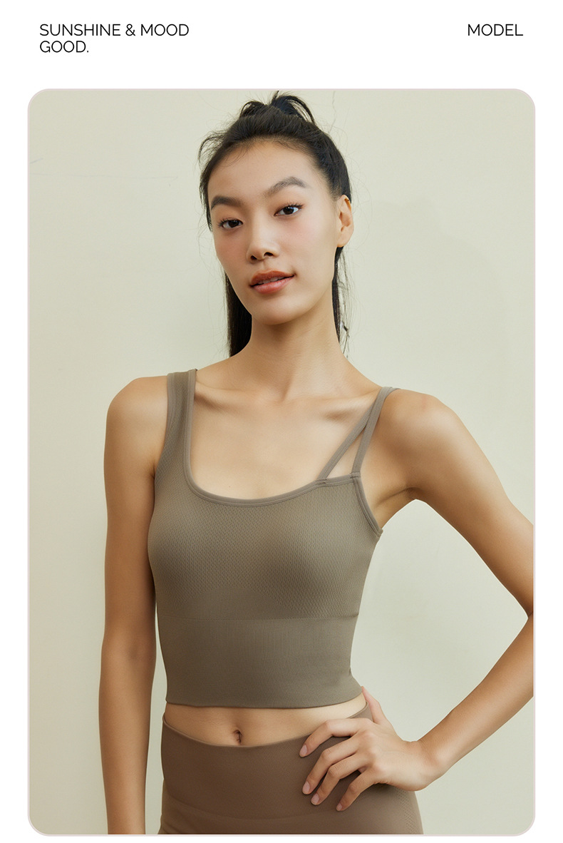새로운 요가복 조끼 스타일 스포츠 탑, 가슴 패드 내장, 이너웨어 또는 아우터웨어로 착용 가능, 러닝 스포츠 브라스토어 가기