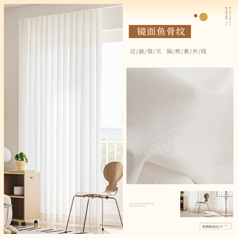 2026년 신형 물고기뼈 무늬 프라이버시 거즈 커튼, 빛은 투과하지만 사람을 보이지 않게 하는 거울창 거즈, 북유럽풍 라이트 럭셔리 거실 발코니 거즈