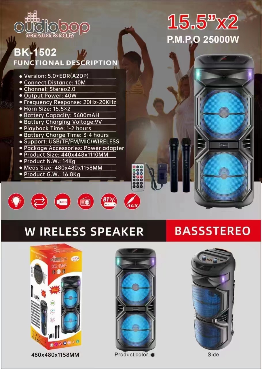 BK-1502 블루투스 스피커, 야외 스퀘어 댄스 공연용 서브우퍼, 무선 마이크 포함, 스퀘어 댄스 오디오 시스템