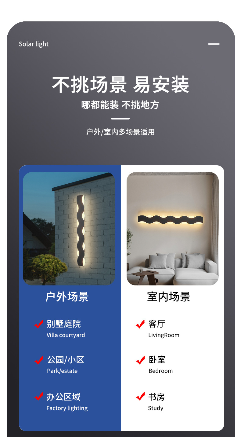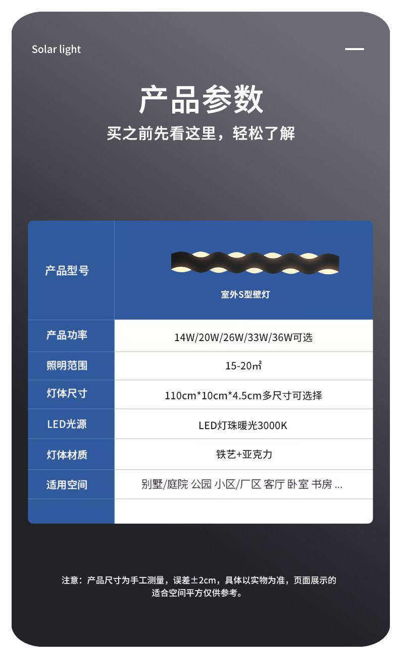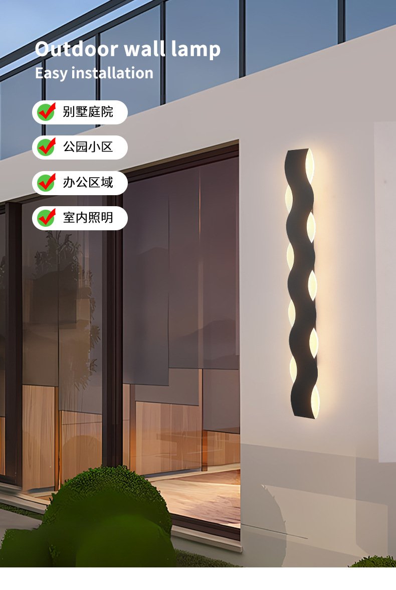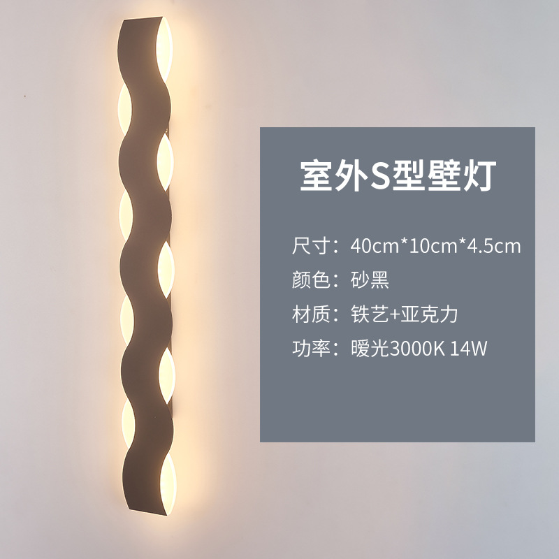 S 자형 벽 램프 야외 방수 현대 미니멀 빌라 게이트 기둥 발코니 야외 안뜰 스트립 외부 벽 램프