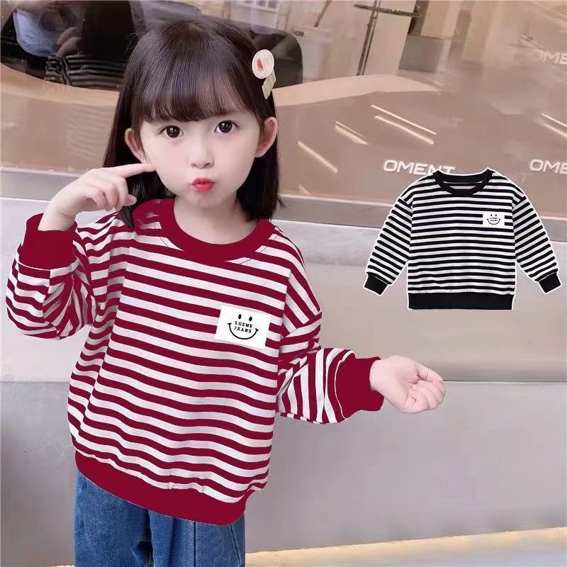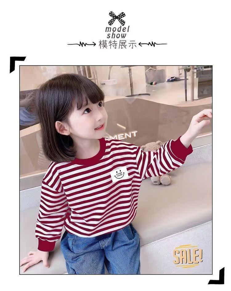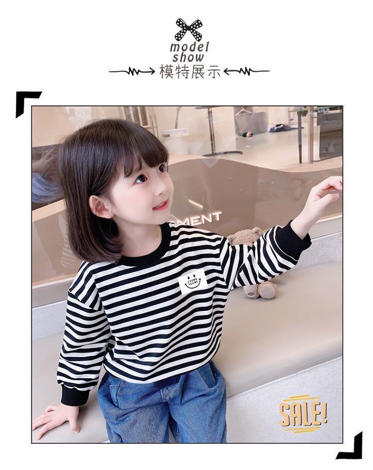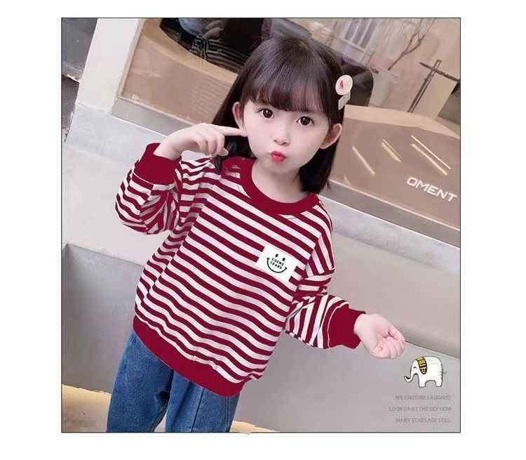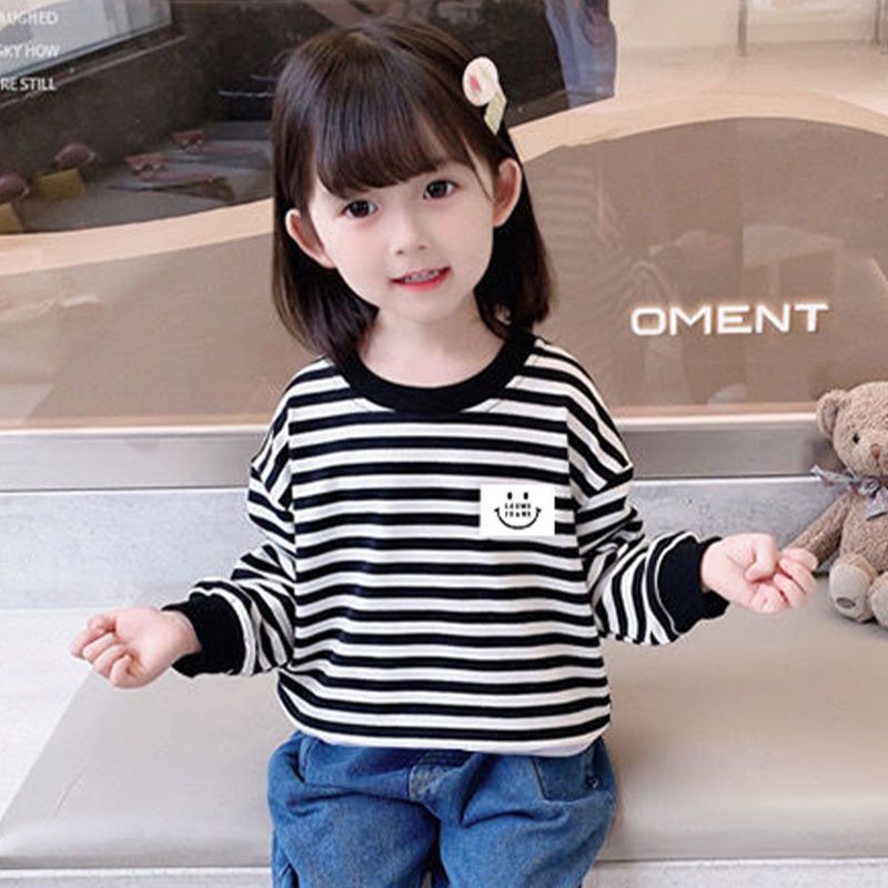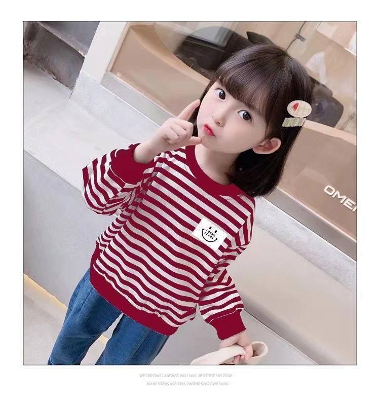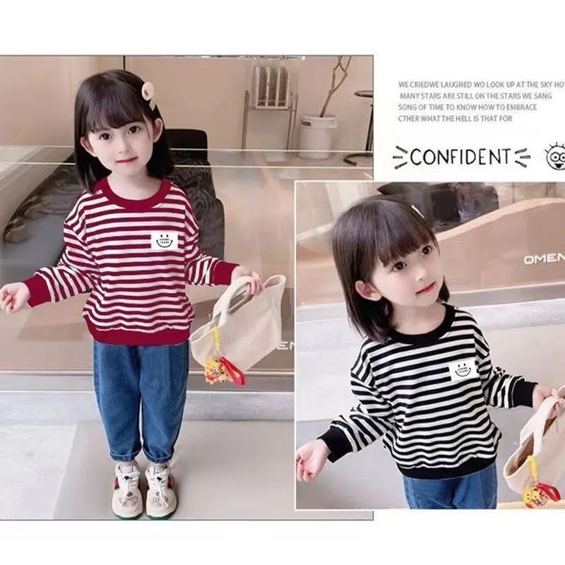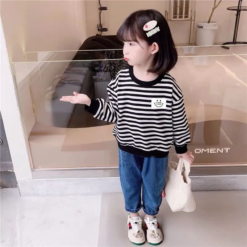 새로운 아동복 2023 여아용 봄 가을 스트라이프 스웨터 한국 긴팔 올매치 중소형 아동용 트렌디 소녀의 새로운 상의스토어 가기