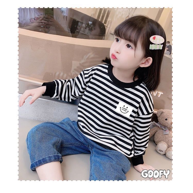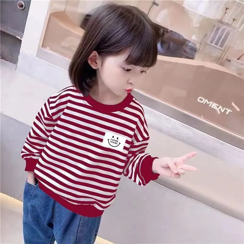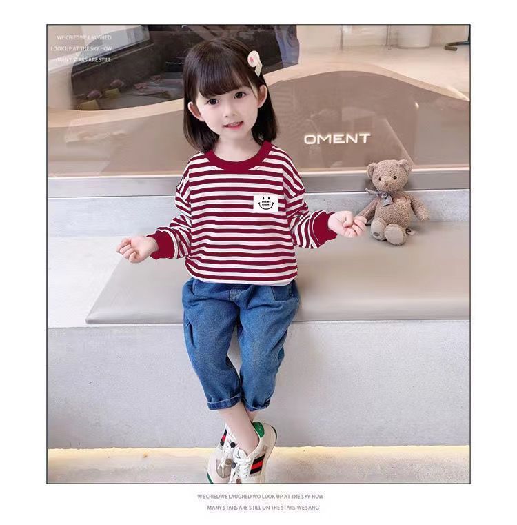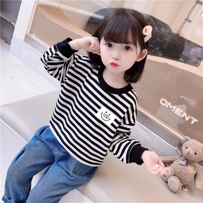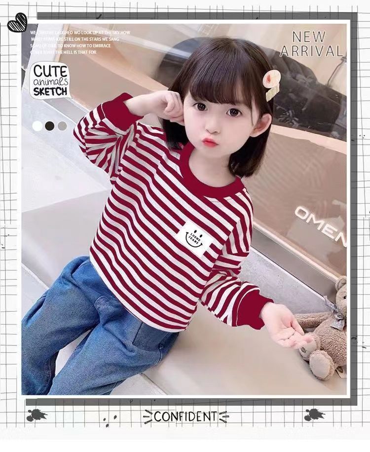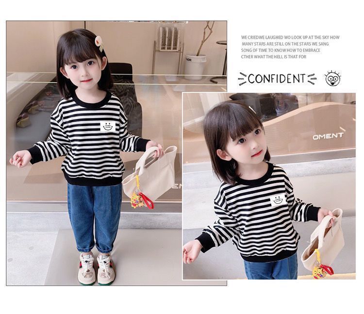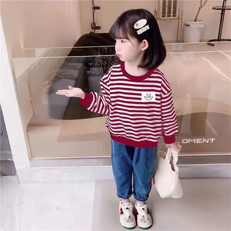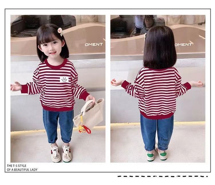 새로운 아동복 2023 여아용 봄 가을 스트라이프 스웨터 한국 긴팔 올매치 중소형 아동용 트렌디 소녀의 새로운 상의스토어 가기
