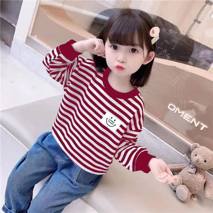 새로운 아동복 2023 여아용 봄 가을 스트라이프 스웨터 한국 긴팔 올매치 중소형 아동용 트렌디 소녀의 새로운 상의