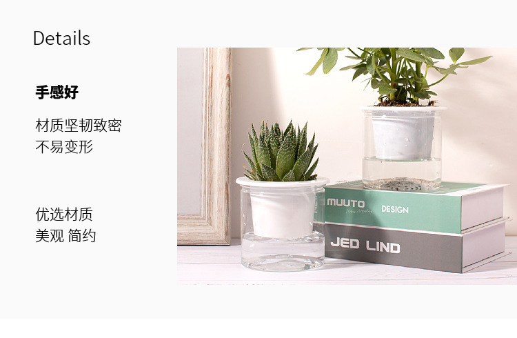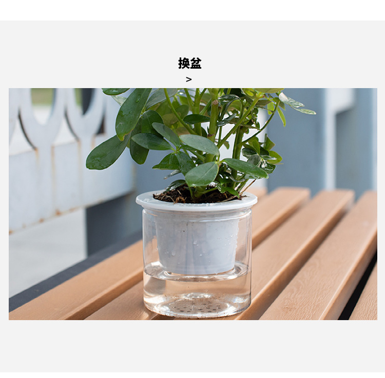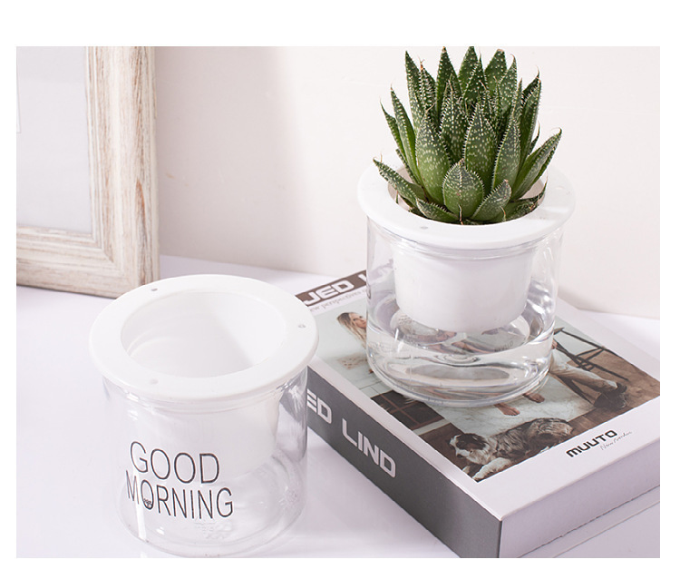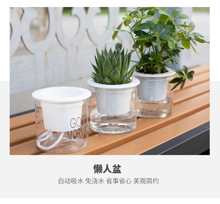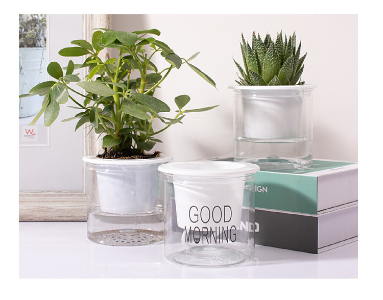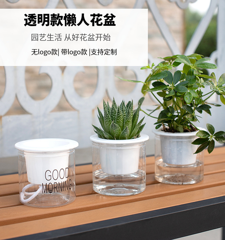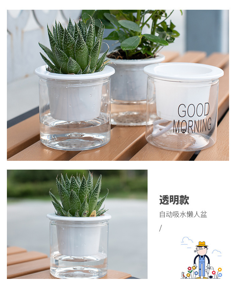 자동 물흡수 기능이 있는 투명한 게으름뱅이 화분, 창의적인 원형 사무실 책상용 녹색 식물 수경재배 플라스틱 화분