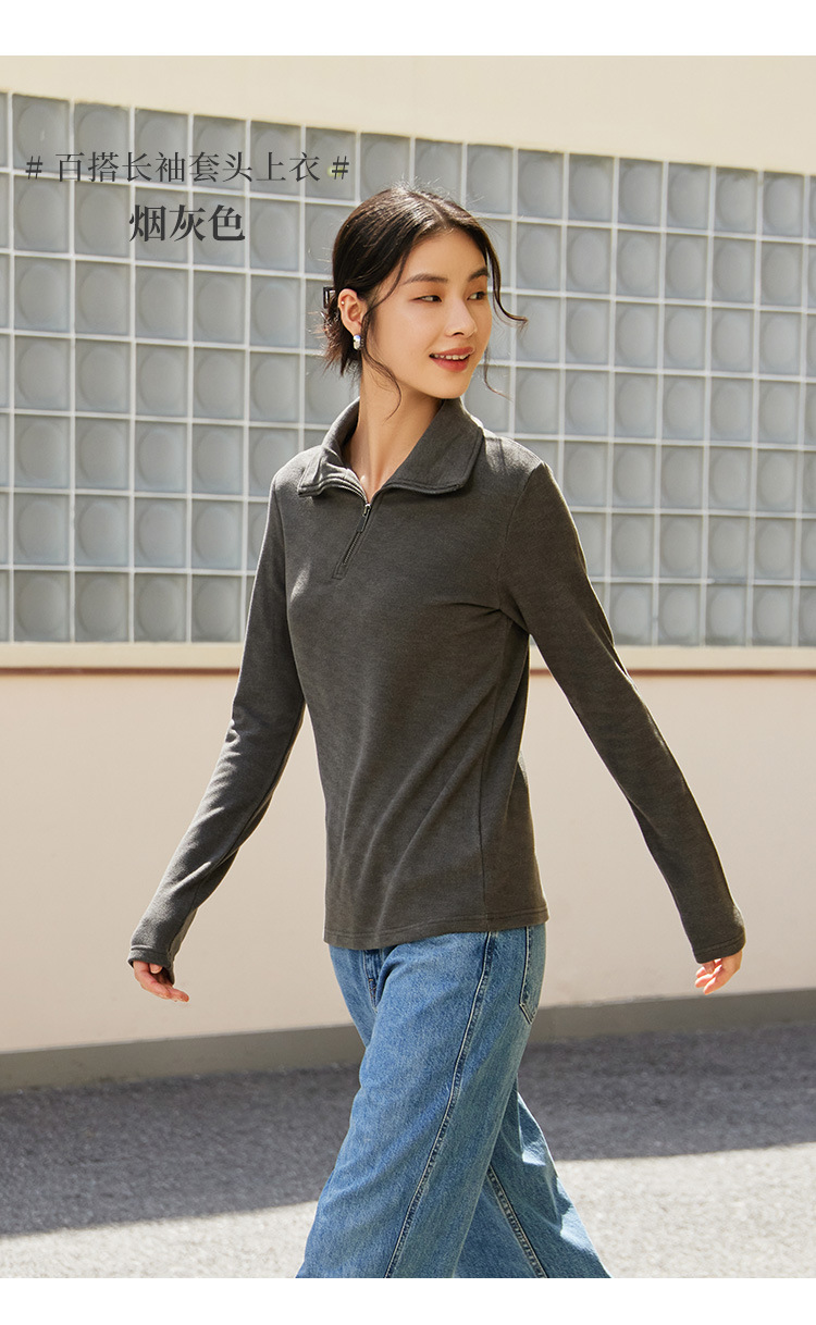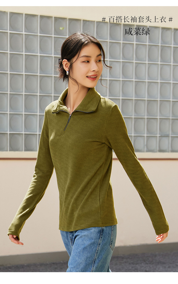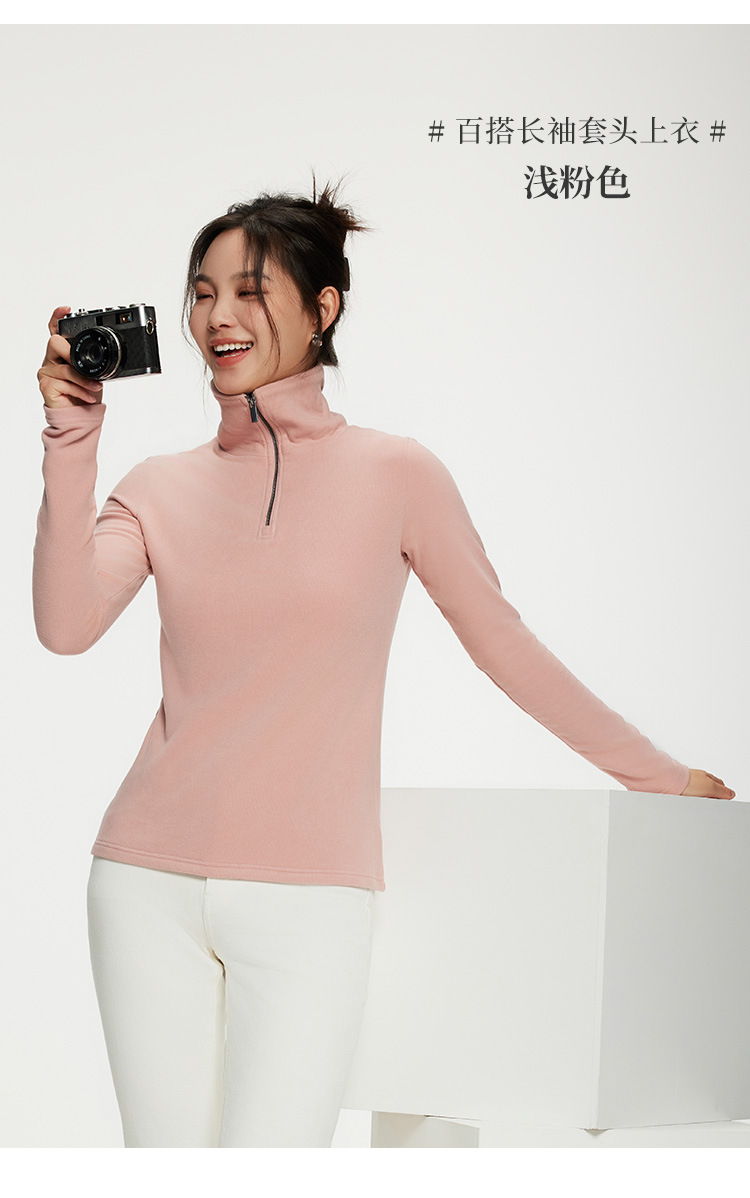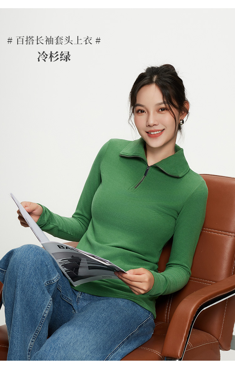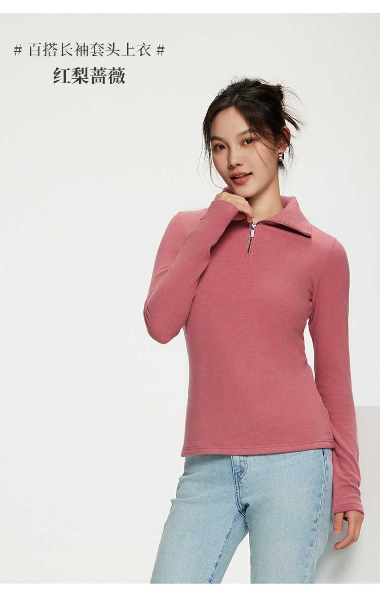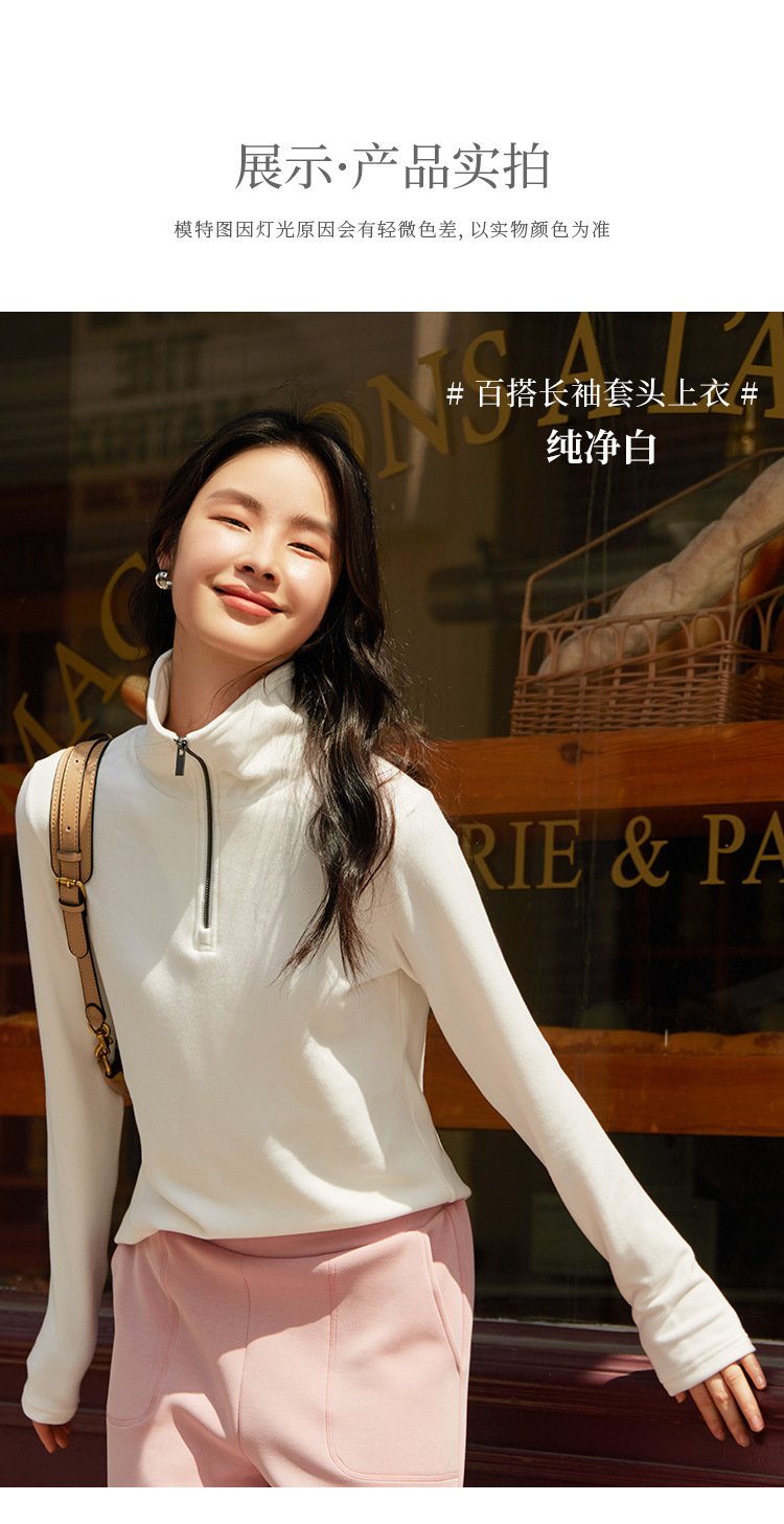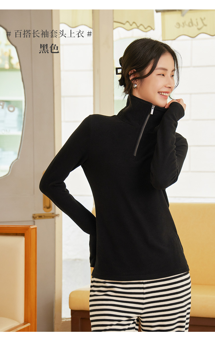 여성용 벨벳 스웨터 가을과 겨울 새로운 하프 터틀넥 지퍼 따뜻한 슬림핏 긴팔 양면 벨벳 탑스토어 가기