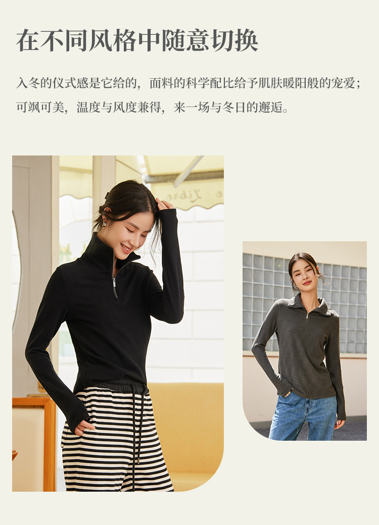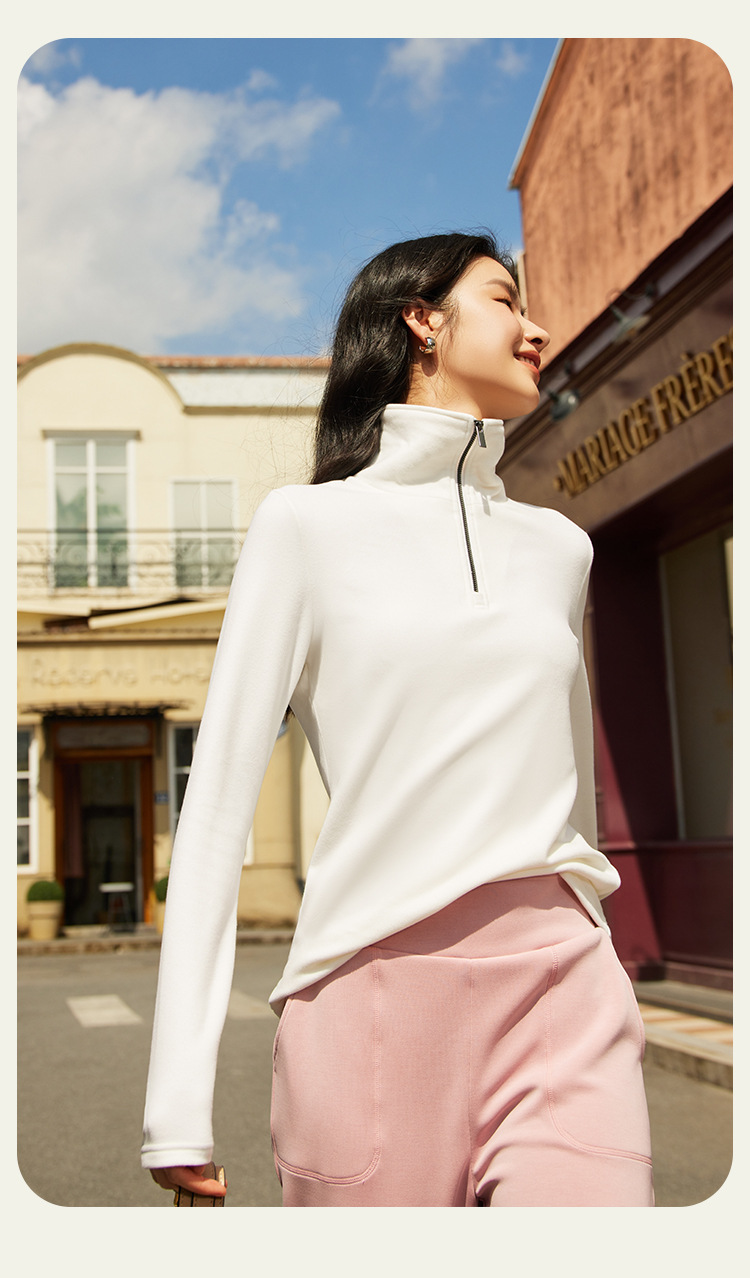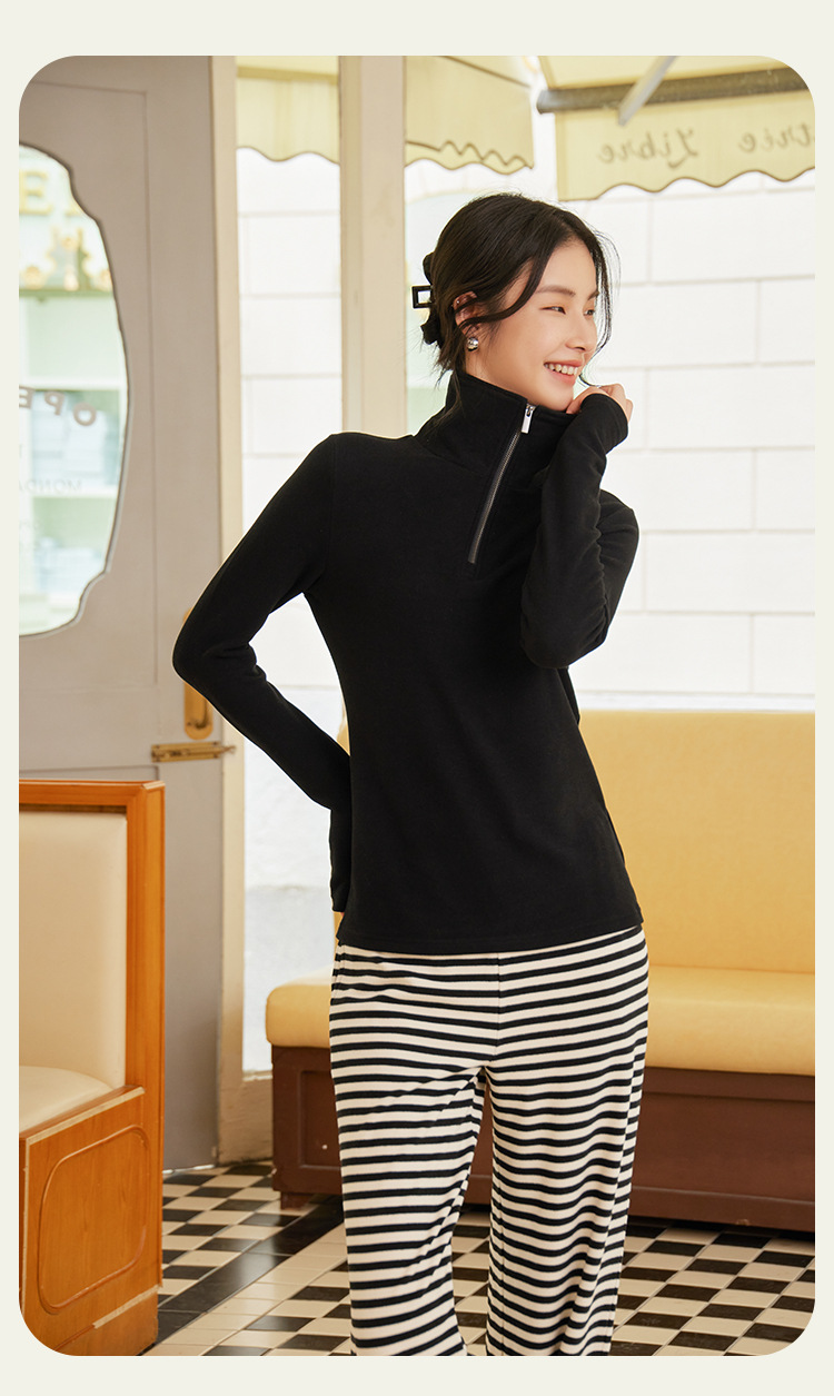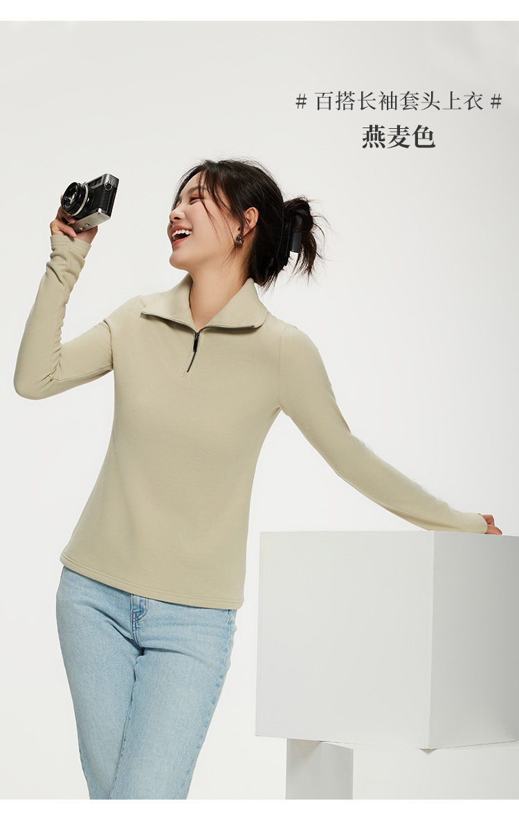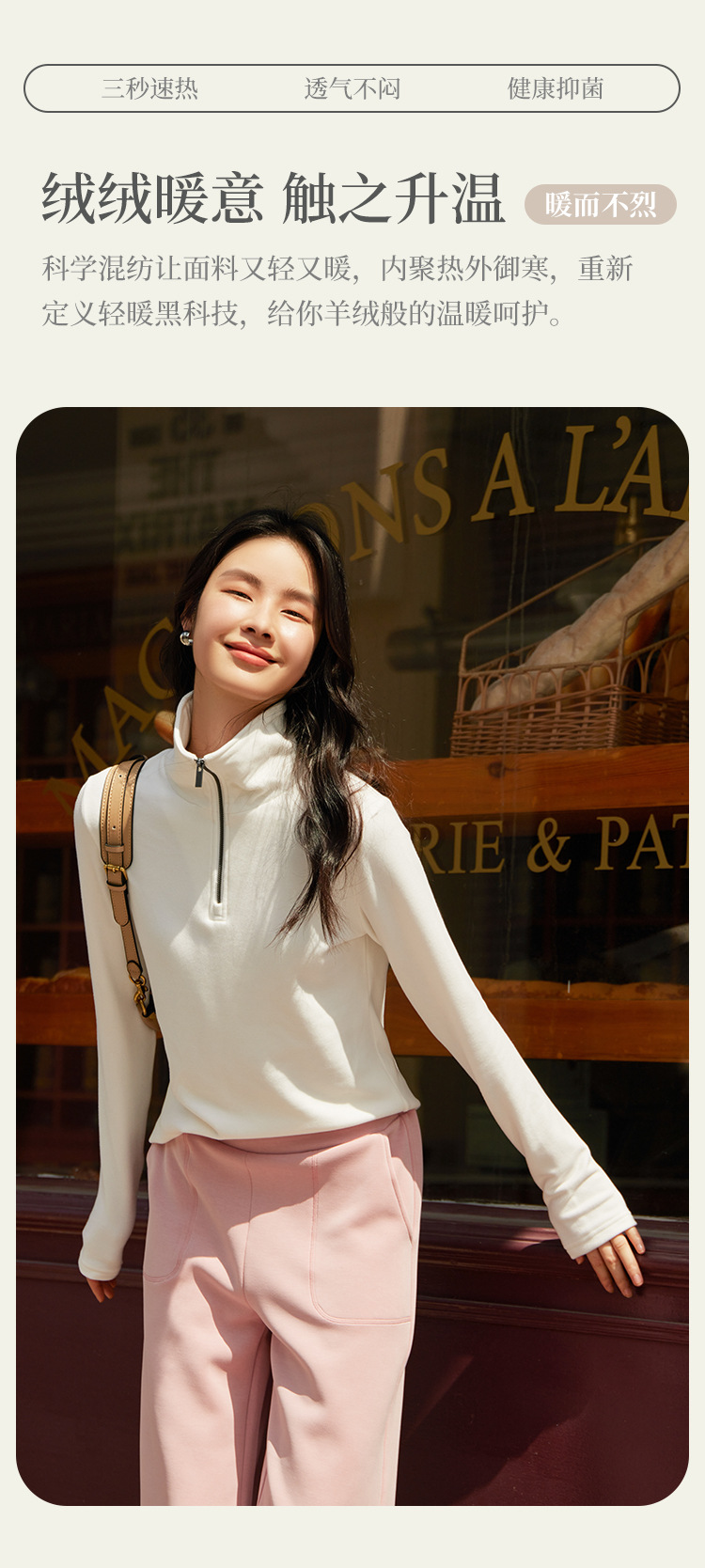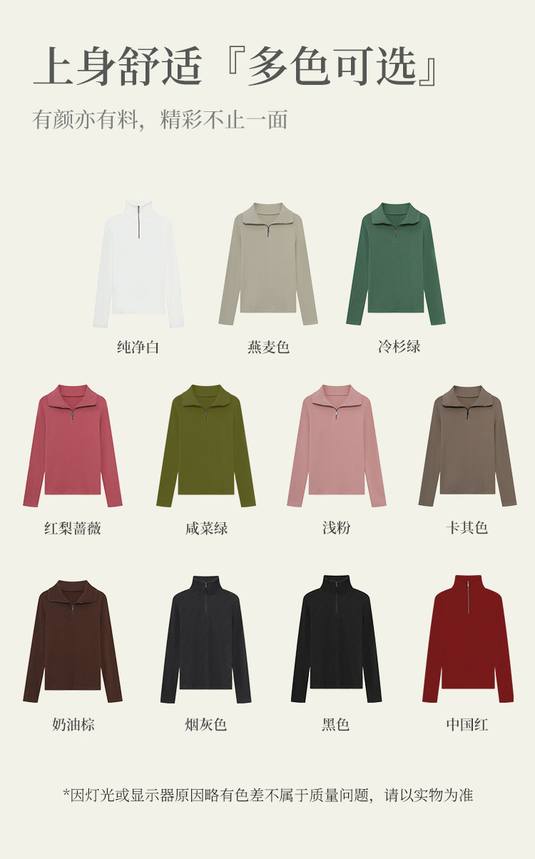 여성용 벨벳 스웨터 가을과 겨울 새로운 하프 터틀넥 지퍼 따뜻한 슬림핏 긴팔 양면 벨벳 탑스토어 가기