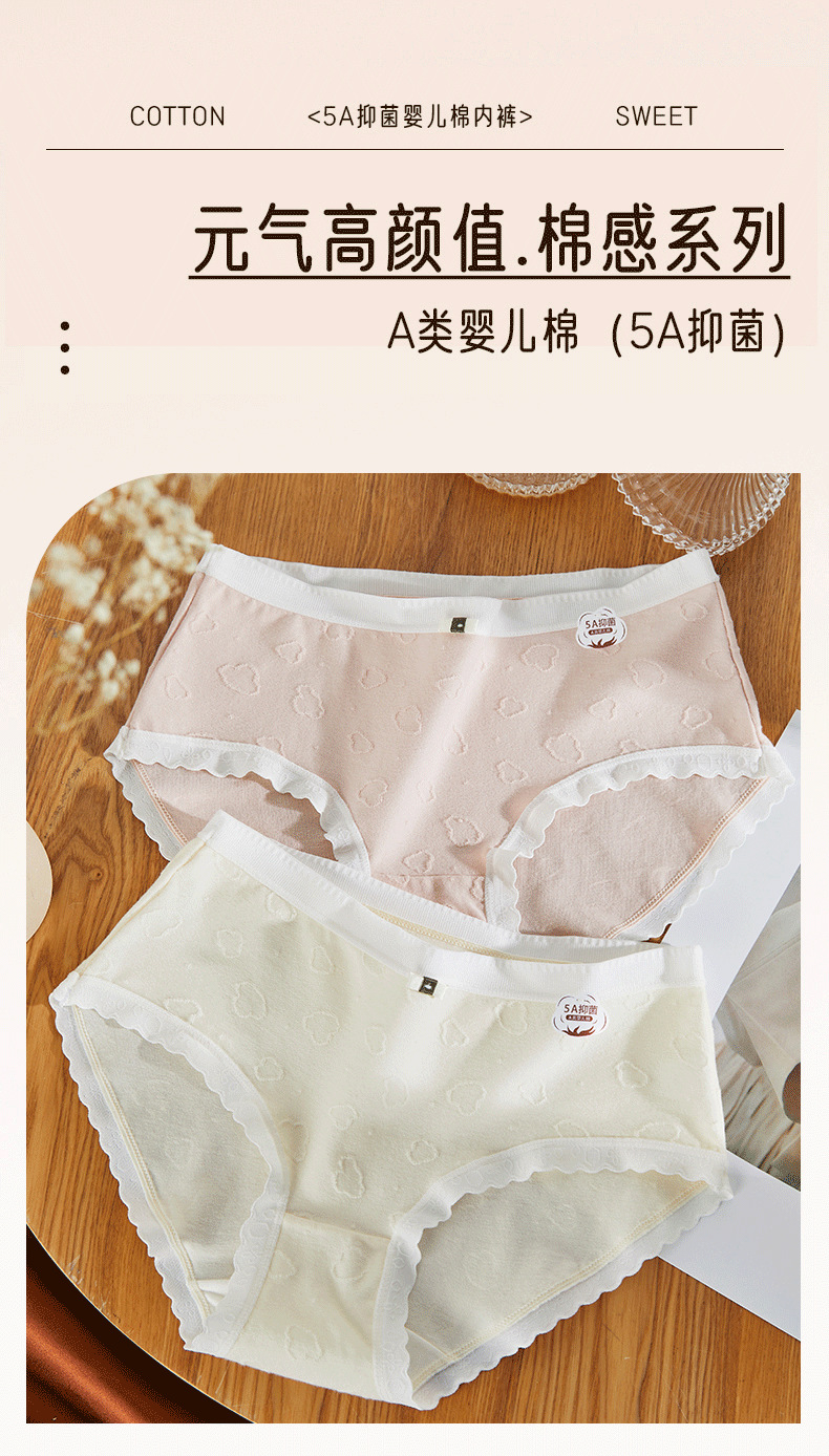 아기 면 속옷 여성용 순면 정균 가랑이 순면 중간 허리 추적 없는 소녀의 달콤한 추적 없는 가방 힙 브리프스토어 가기