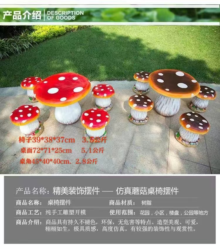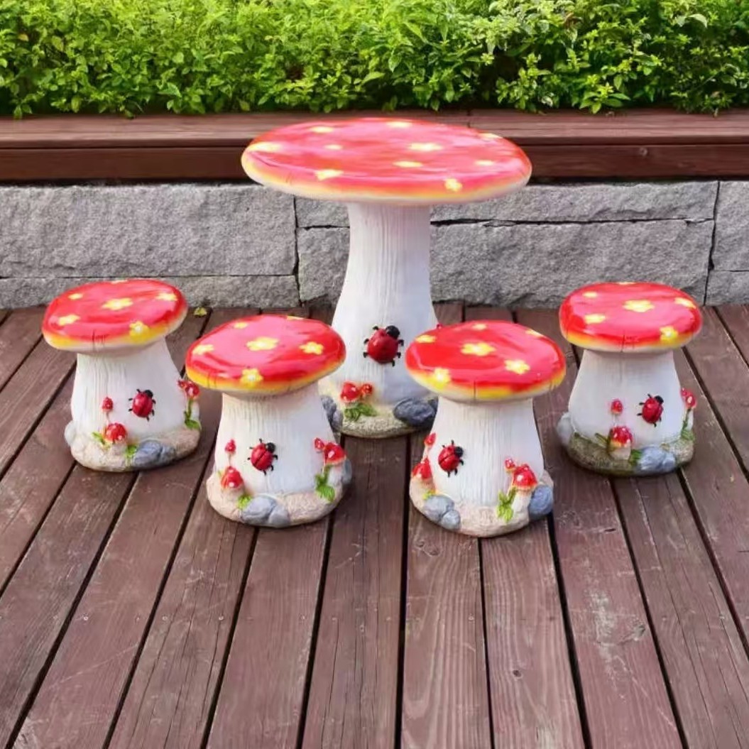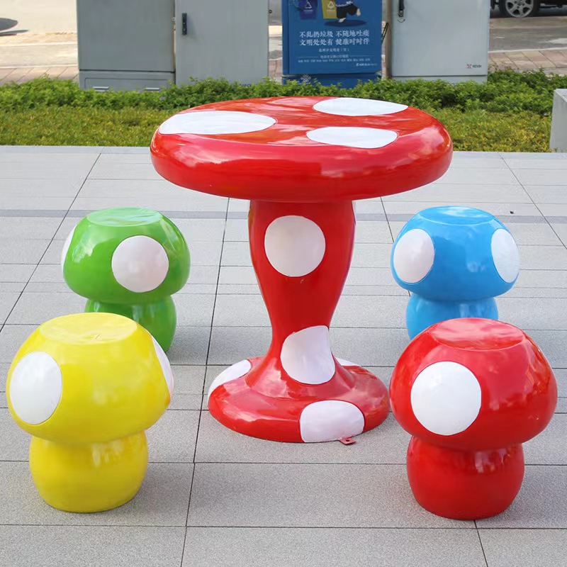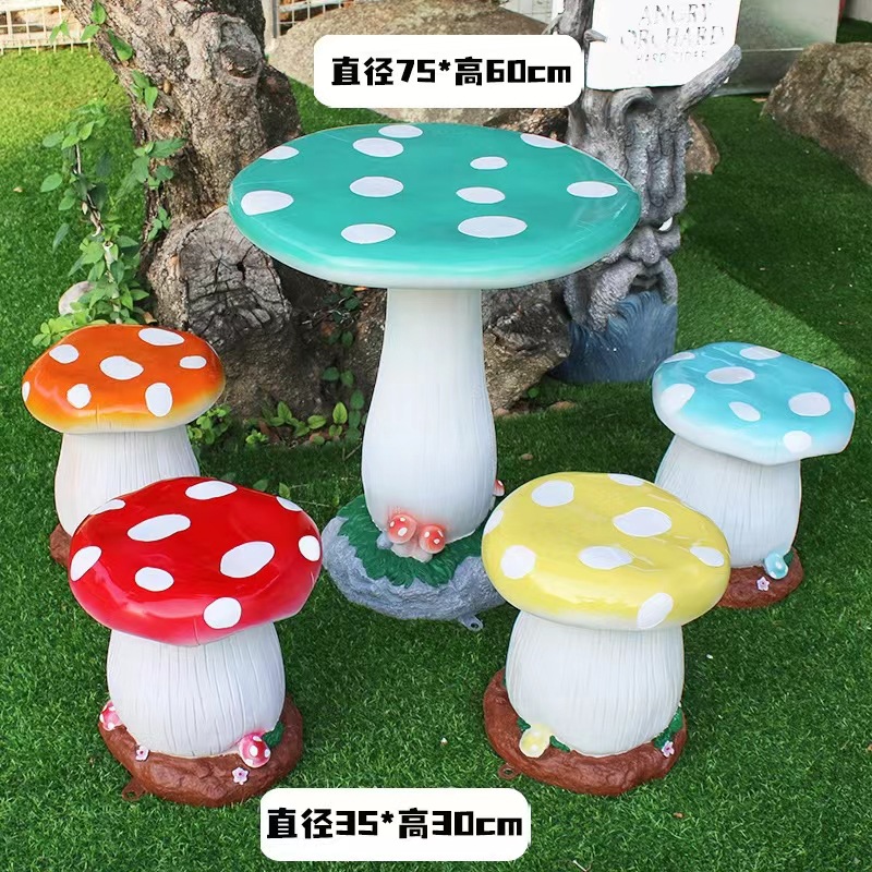 야외 FRP 버섯 테이블과 의자 장식품 마당 테이블 안뜰 정원 유치원 정원 풍경 조각 장식품