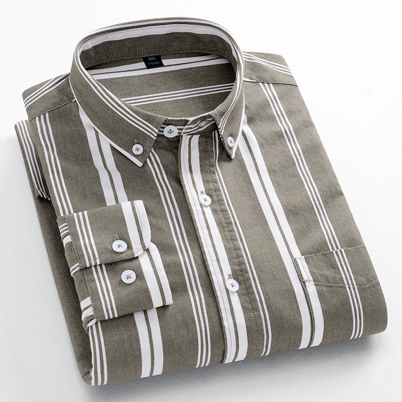 새로운 가을과 겨울 빈티지 면 남성용 셔츠 스트라이프 느슨한 한국 스타일 우아한 재킷 남성용 게으른 통기성 셔츠
