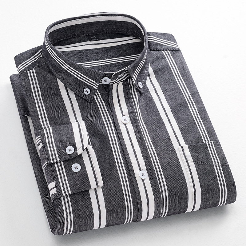 새로운 가을과 겨울 빈티지 면 남성용 셔츠 스트라이프 느슨한 한국 스타일 우아한 재킷 남성용 게으른 통기성 셔츠스토어 가기