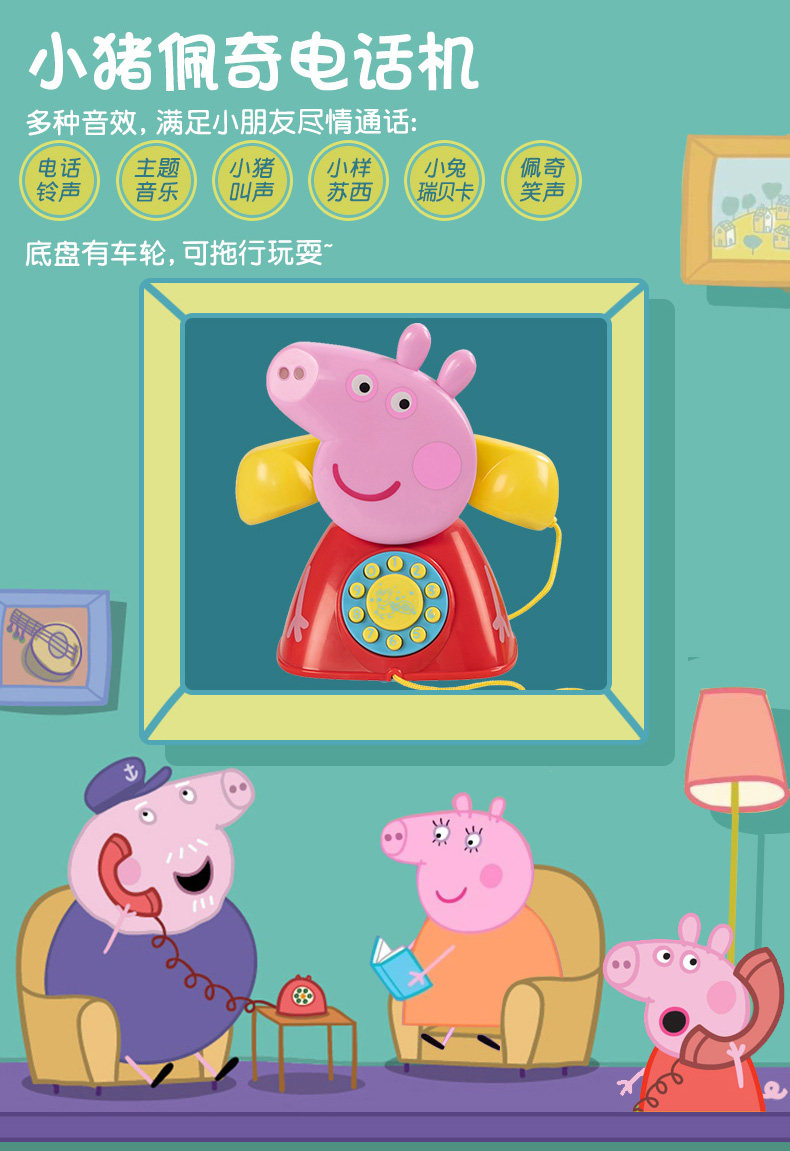 페이지 돼지 조지 전화 핸들 멀티 사운드 효과 어린이 놀이 집 장난감 세트 생일 선물스토어 가기