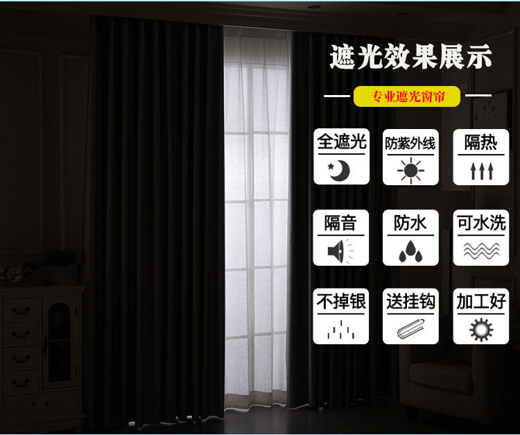 전체 음영 커튼 완성 두꺼운 그늘 천 침실 베이 창 발코니 태양 보호 단열 천공되지 않은 후크 및 루프 제조업체